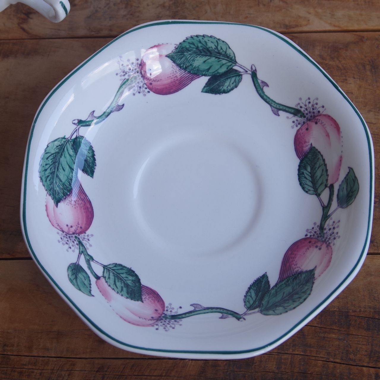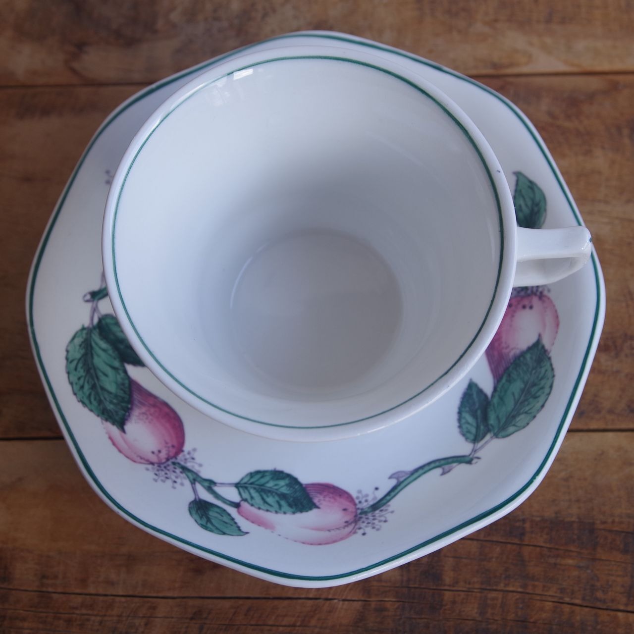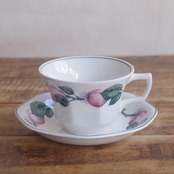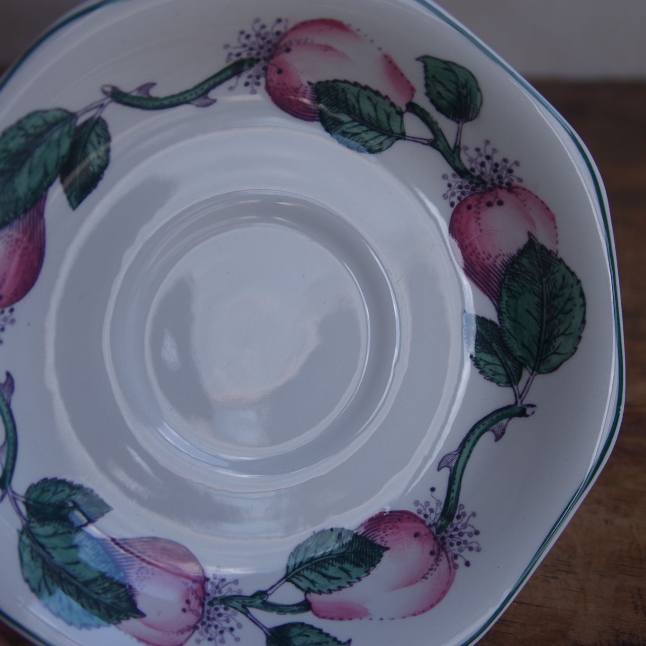 アダムス バーモント ティーカップ ソーサー イギリス ヴィンテージ 食器 陶器 Adams Micratex Vermont #251106-3 レトロ フルーツ柄 ピンク グリーン カップ&ソーサー コーヒーカップ 英国 キッチン 雑貨