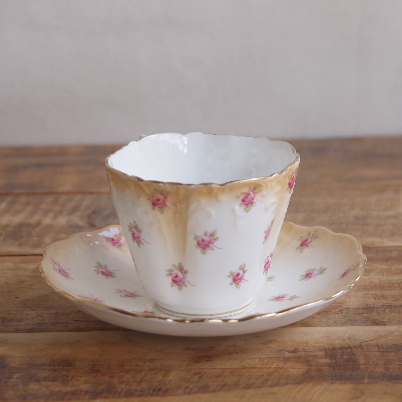 エインズレイ ピンク ローズバッド コーヒーカップ&ソーサー Aynsley #251106-2 オレンジ ヴィンテージ 食器アンティーク 陶器 イギリス製 レトロ 薔薇 花柄 ティーカップ バラ