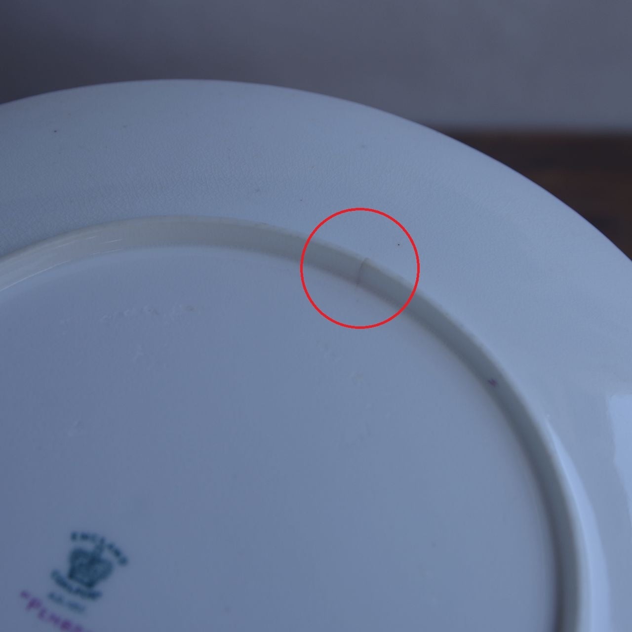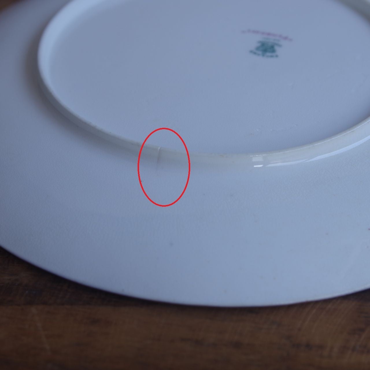 裏側の高台部分に一か所、高台をまたぐような形で一本ヒビ(焼かれる前にできたシワ)があります。