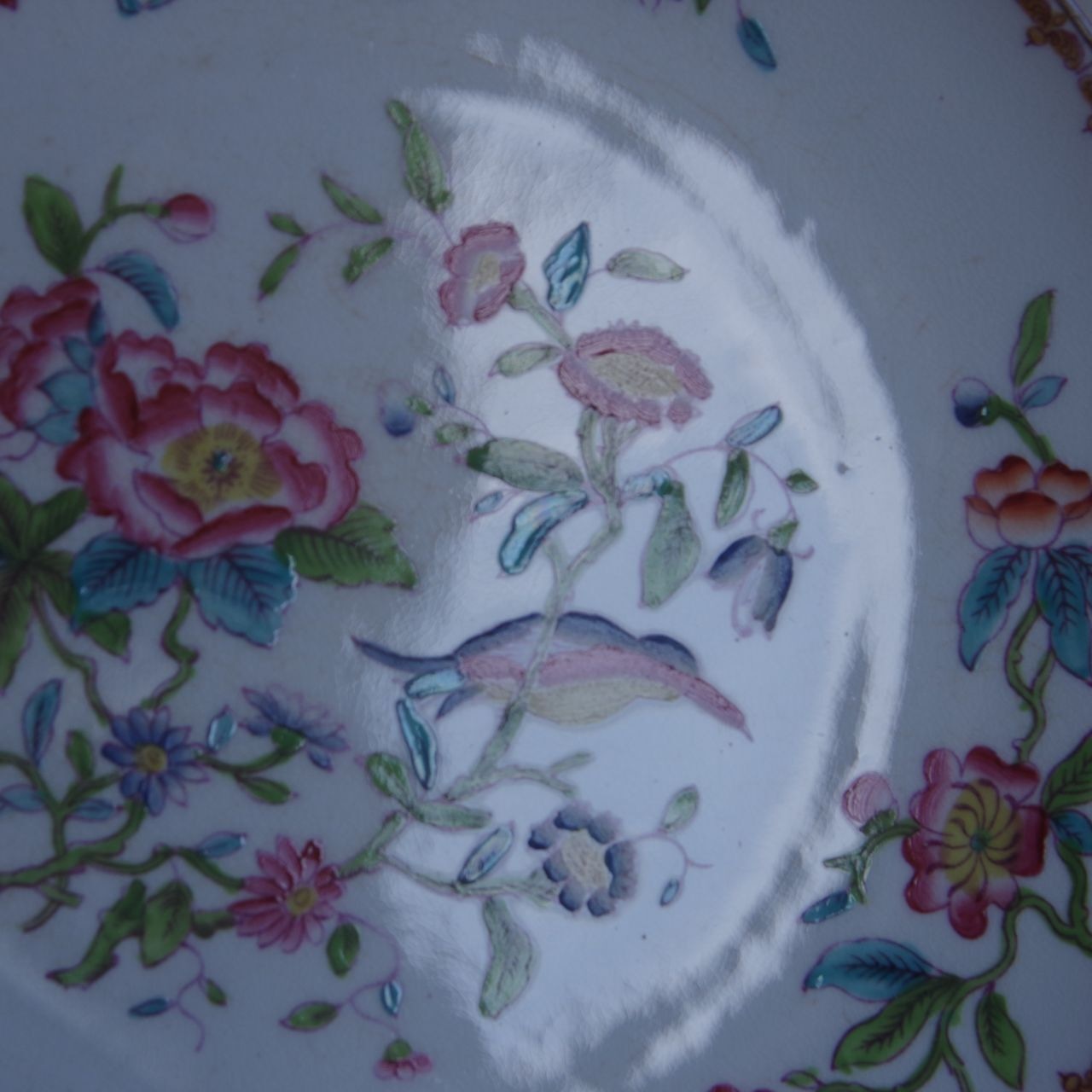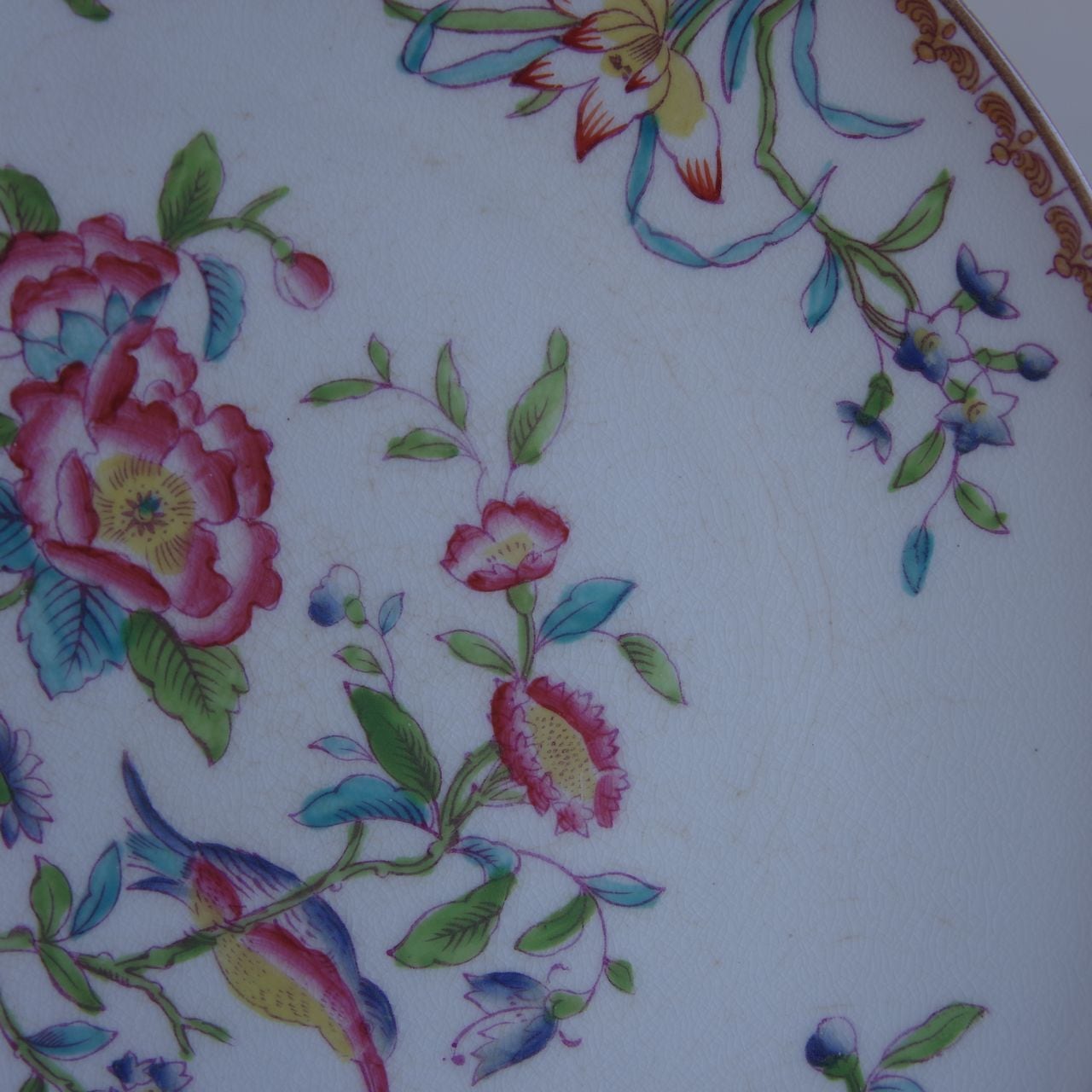 色合いが美しく、アンティークらしい華やかさのあるお皿です。