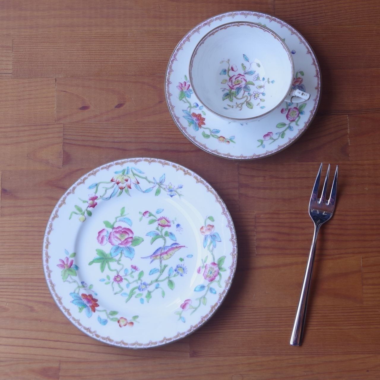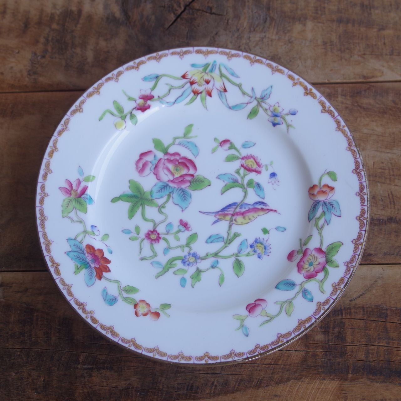 コールポート ペンブローク デザートプレート ケーキ皿 17cm 鳥 花 #251115-3 イギリス製 アンティーク食器 レトロ Coalport Pembroke オリエンタル 陶器 ペムブローク 英国 雑貨