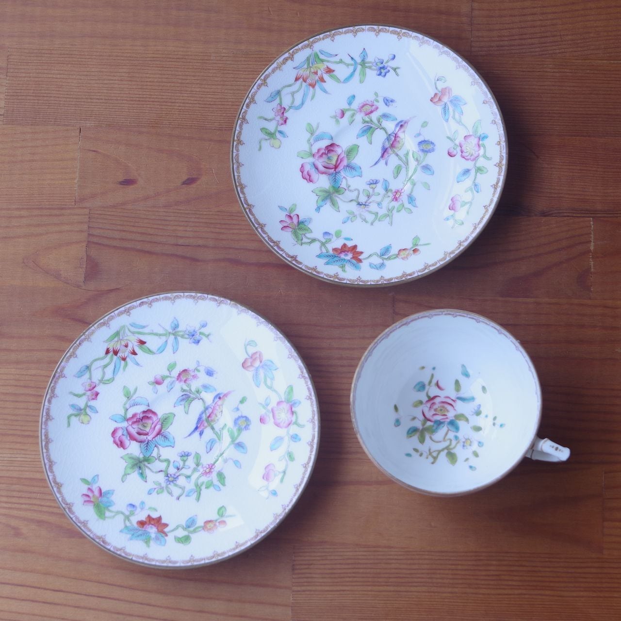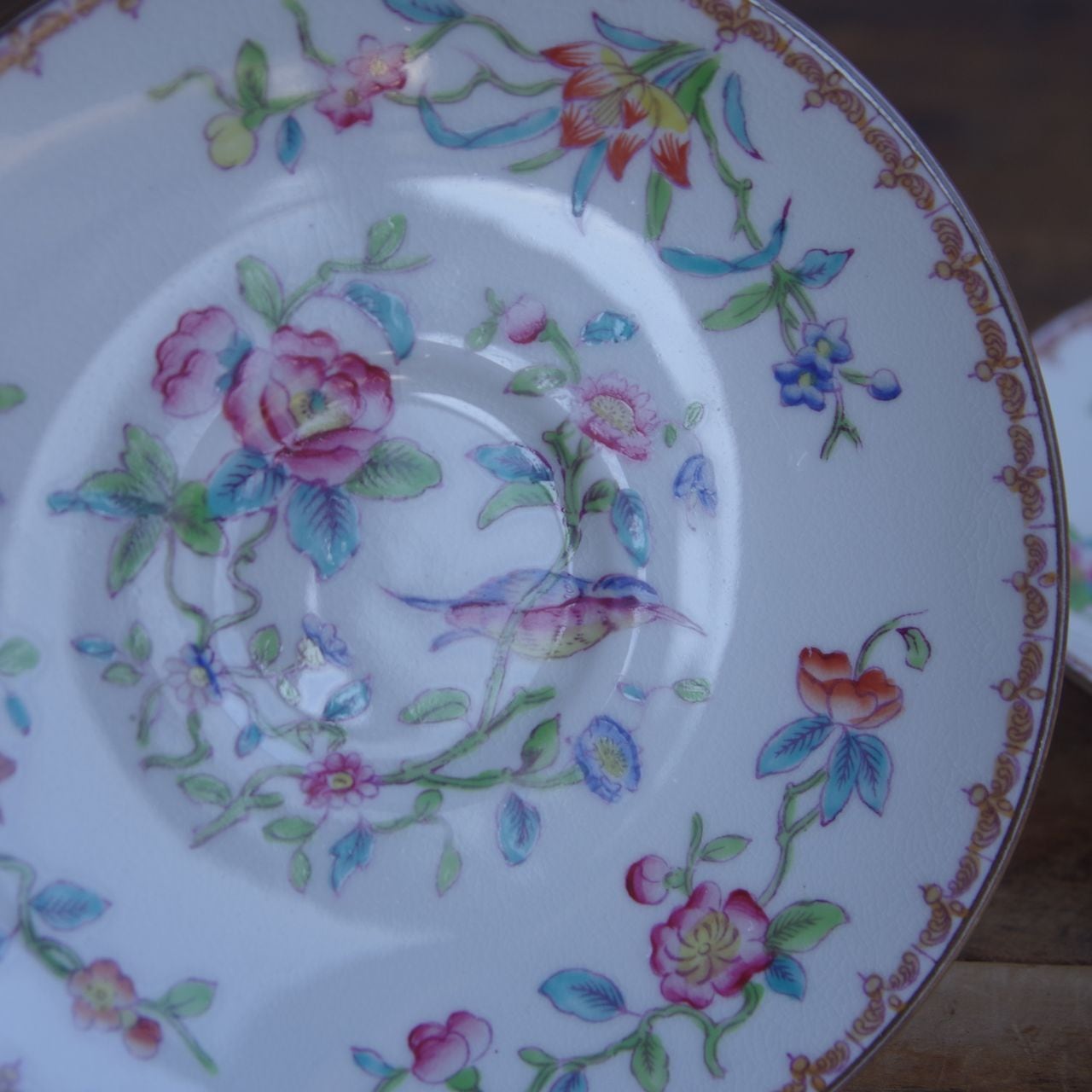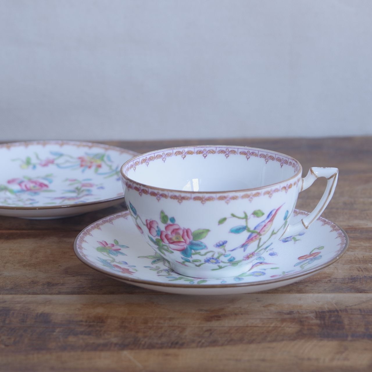 コールポート ペンブローク カップ&ソーサー 鳥 花 おまけ付き #251115-2 イギリス製 アンティーク食器 レトロ Coalport Pembroke オリエンタル 陶器 ペムブローク 英国 雑貨 コーヒーカップ ティーカップ