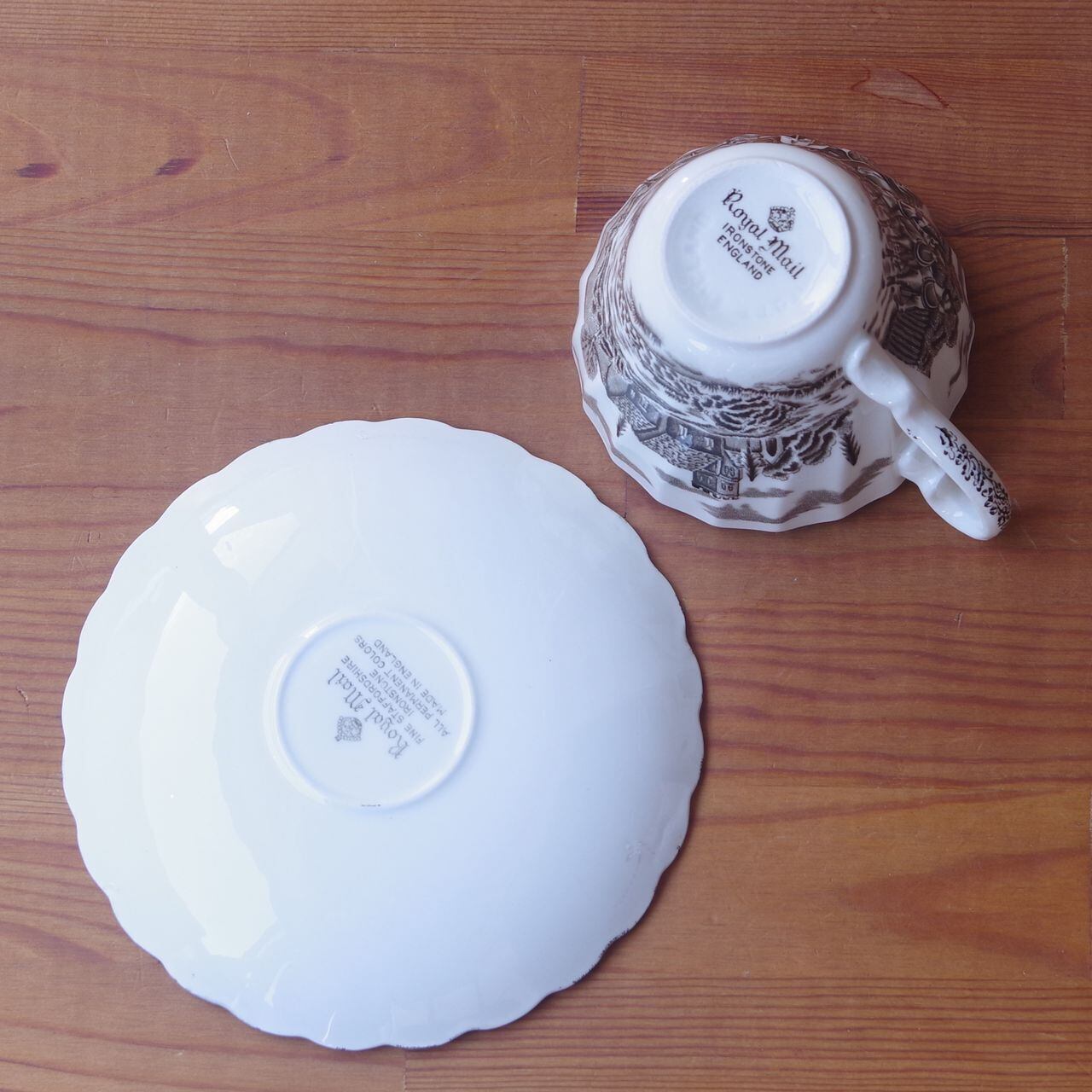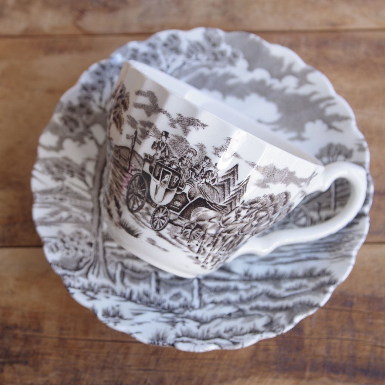 ミヨット ロイヤルメール ブラウン コーヒーカップ&ソーサー イギリス ヴィンテージ 食器 陶器 #251116-4 Myott Royal Mail 馬車 レトロ アンティーク ティーカップ マイヨット マイコット