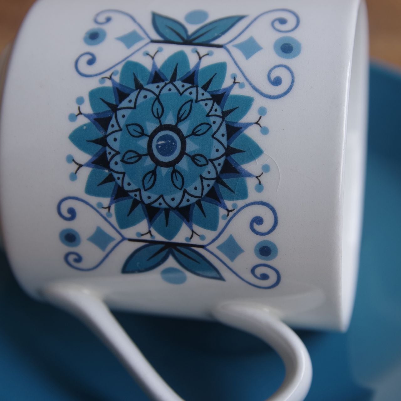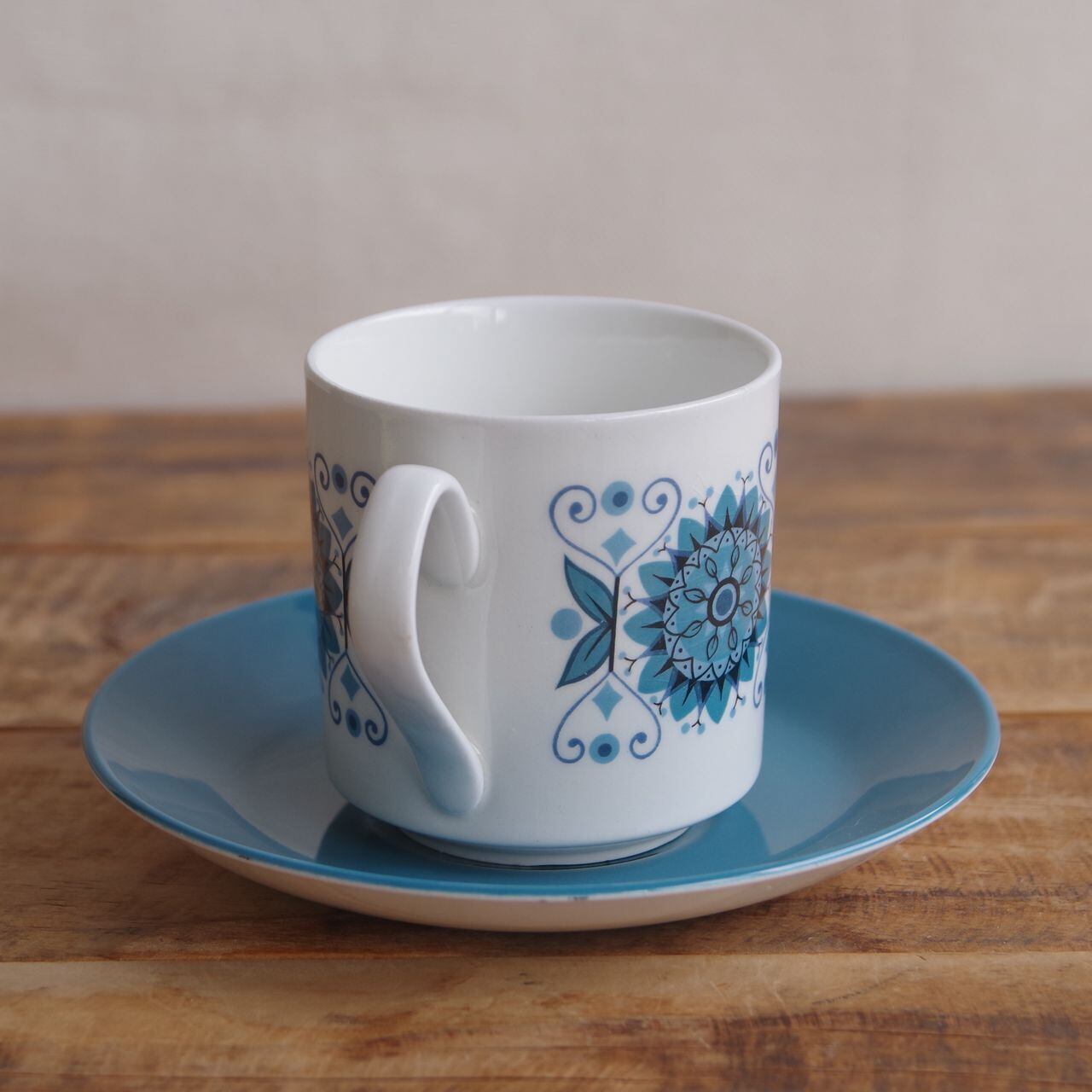ジョンソンブラザーズ エンガディン ターコイズブルー 幾何学 花柄 コーヒーカップ&ソーサー イギリス レトロ ヴィンテージ食器 陶磁器 #251126-3 Cup Saucer Duo