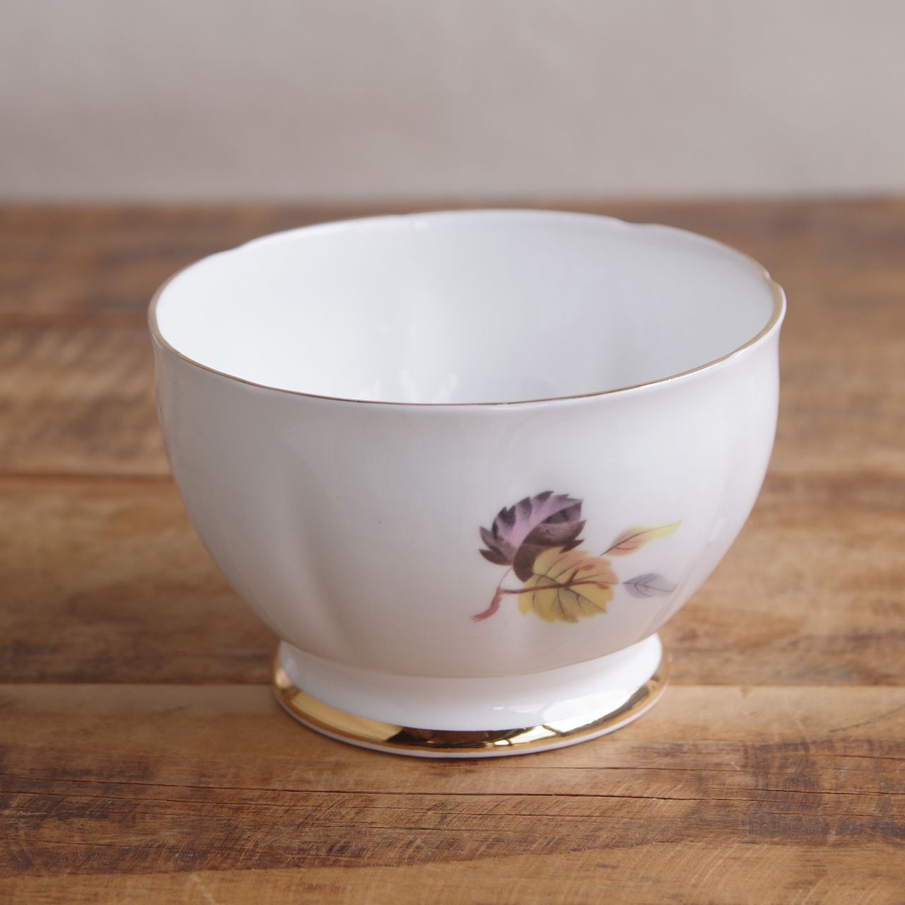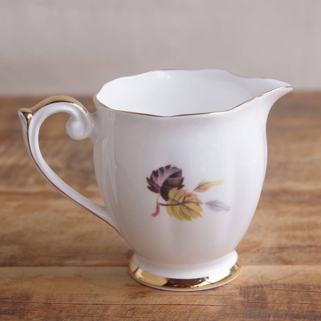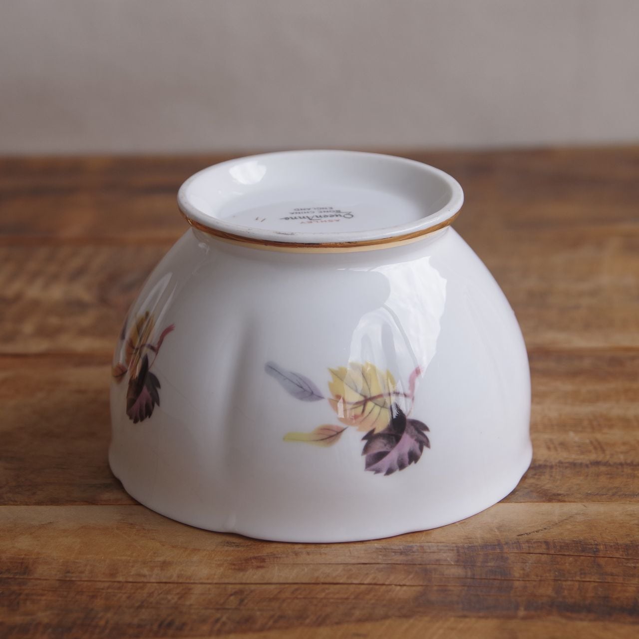クィーンアン アシュリー シュガーボウル クリーマー Queen Anne Ashley #251126 イギリス ヴィンテージ 食器 陶器 レトロ ゴールド 落ち葉 秋 ボタニカル柄 小鉢 ピッチャー ジャグ アンティーク