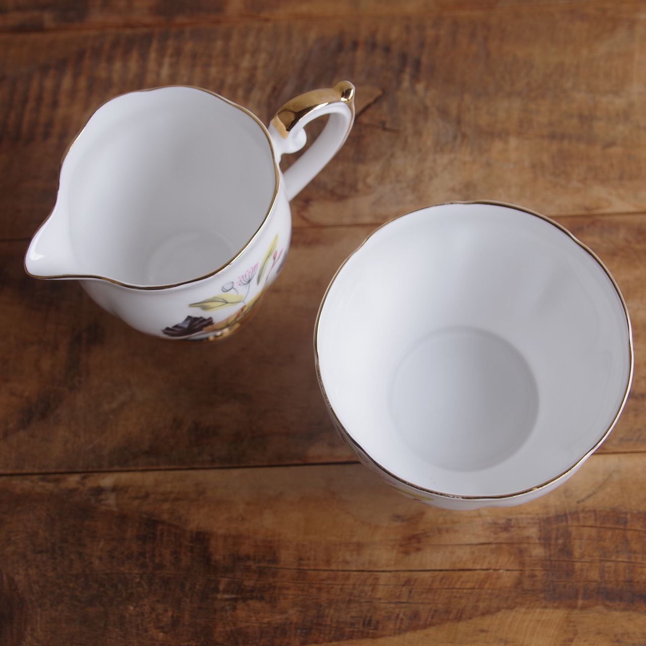 イギリスの陶器メーカー Queen Anne のシュガーボウルとクリーマーのセットです。