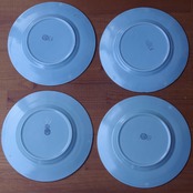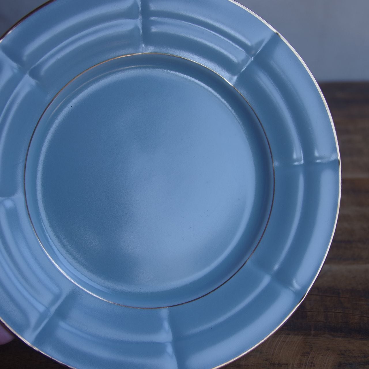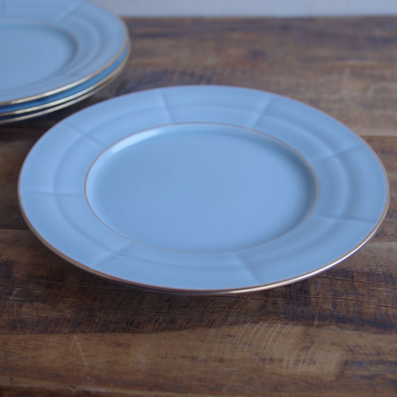 淡いブルーでリム部分に溝が入り、ゴールドのふちどりが入ったシンプルなデザインです。