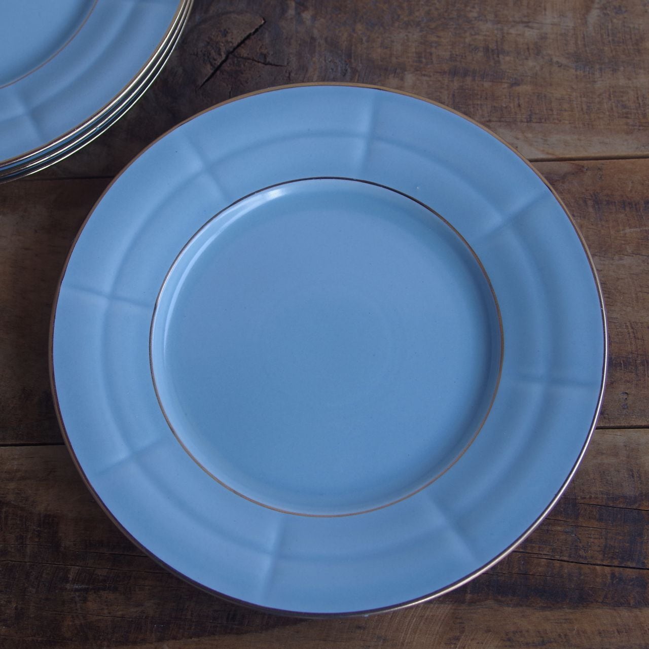 ウプサラエクビー ゲフレ グランド ブルー Upsala Ekeby Gefle Grand Blue デザートプレート ケーキ皿 19cm #251129-1~4 北欧 スウェーデン製 ヴィンテージ アンティーク 食器 陶器 ゴールド 水色 お皿 Arthur Percy アーサー・パーシー アールデコ