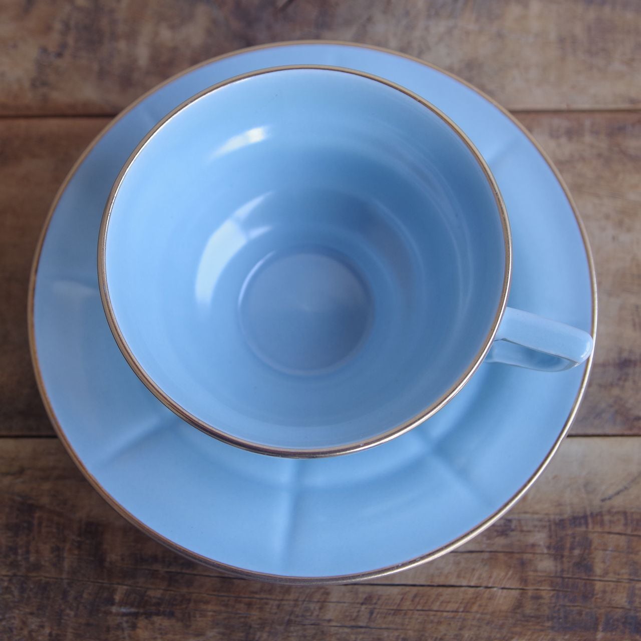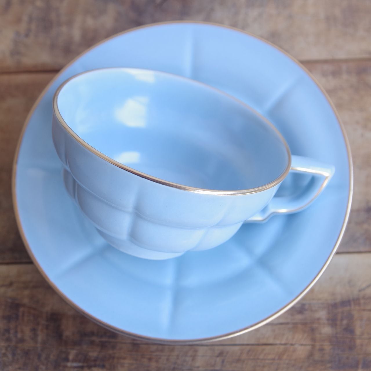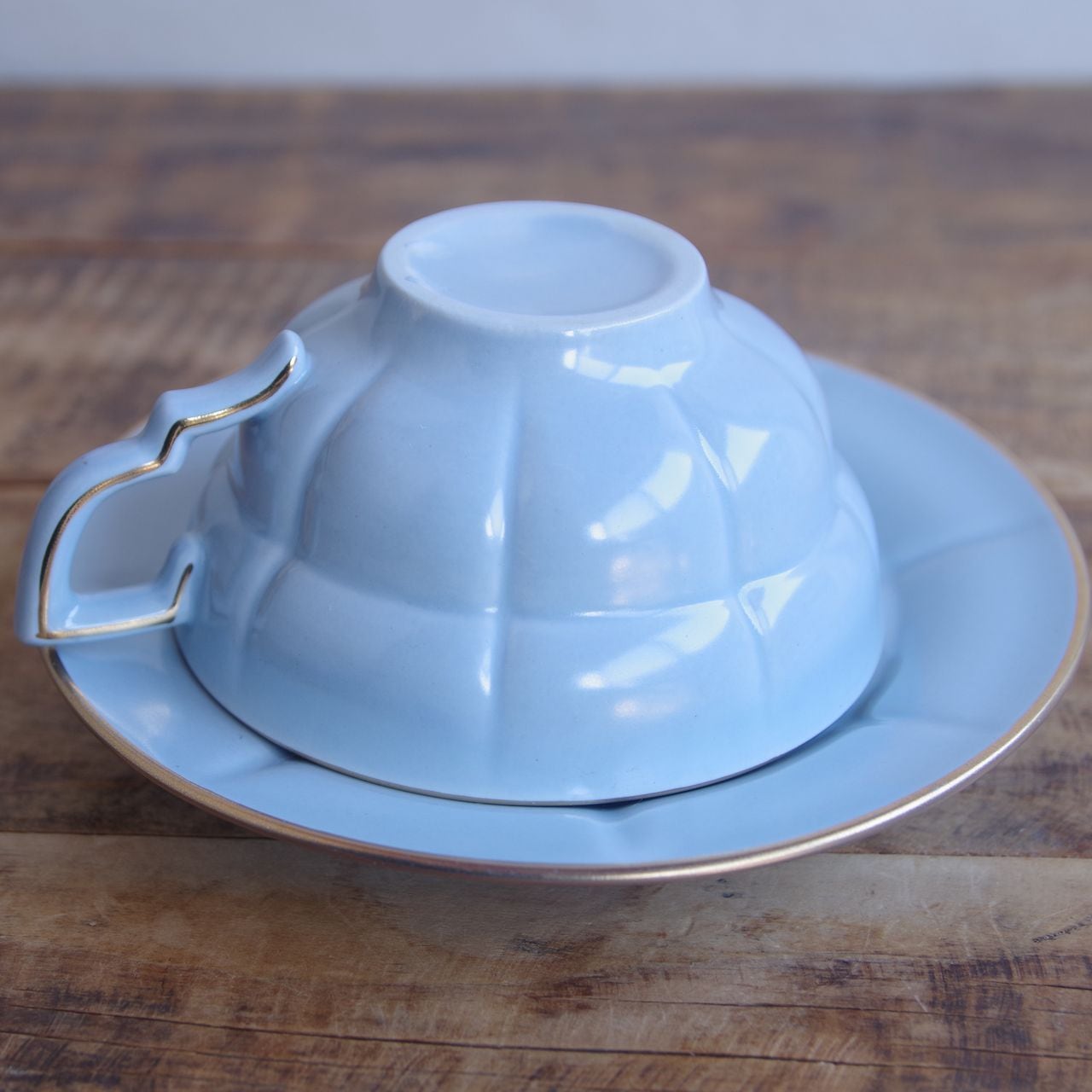 ウプサラエクビー ゲフレ グランド ブルー Upsala Ekeby Gefle Grand Blue ティーカップ&ソーサー #251129-2 北欧 スウェーデン製 ヴィンテージ アンティーク 食器 陶器 ゴールド 水色 コーヒーカップ Arthur Percy アーサー・パーシー アールデコ