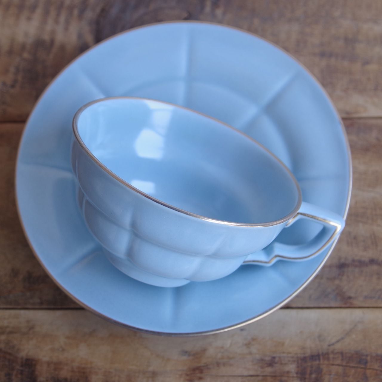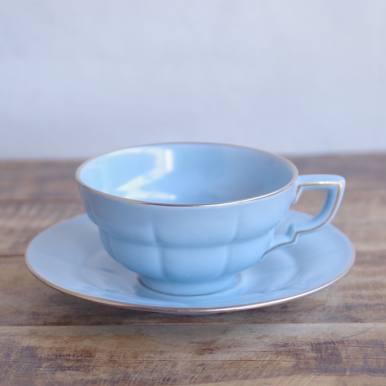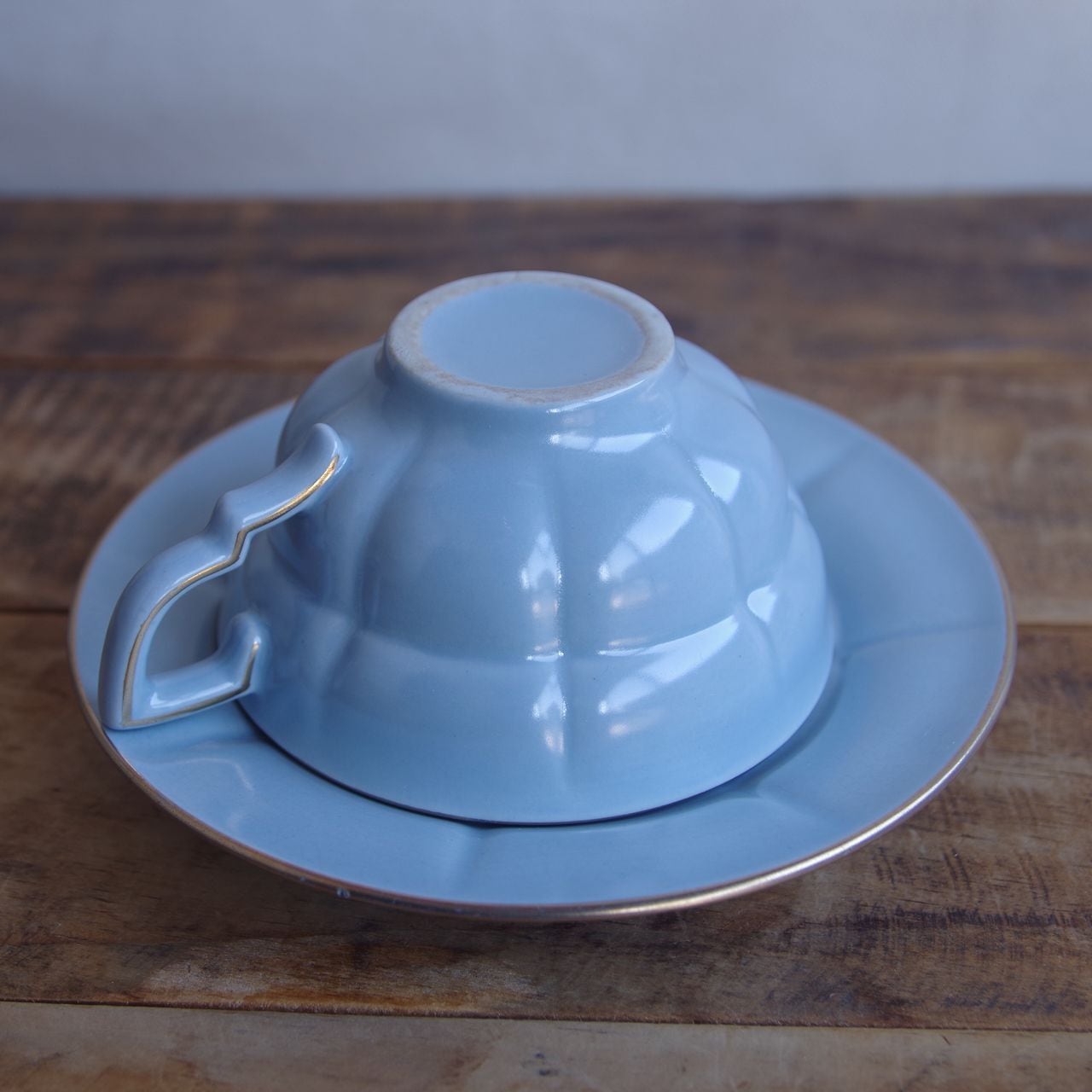 ウプサラエクビー ゲフレ グランド ブルー Upsala Ekeby Gefle Grand Blue ティーカップ&ソーサー #251129-4 北欧 スウェーデン製 ヴィンテージ アンティーク 食器 陶器 ゴールド 水色 コーヒーカップ Arthur Percy アーサー・パーシー アールデコ