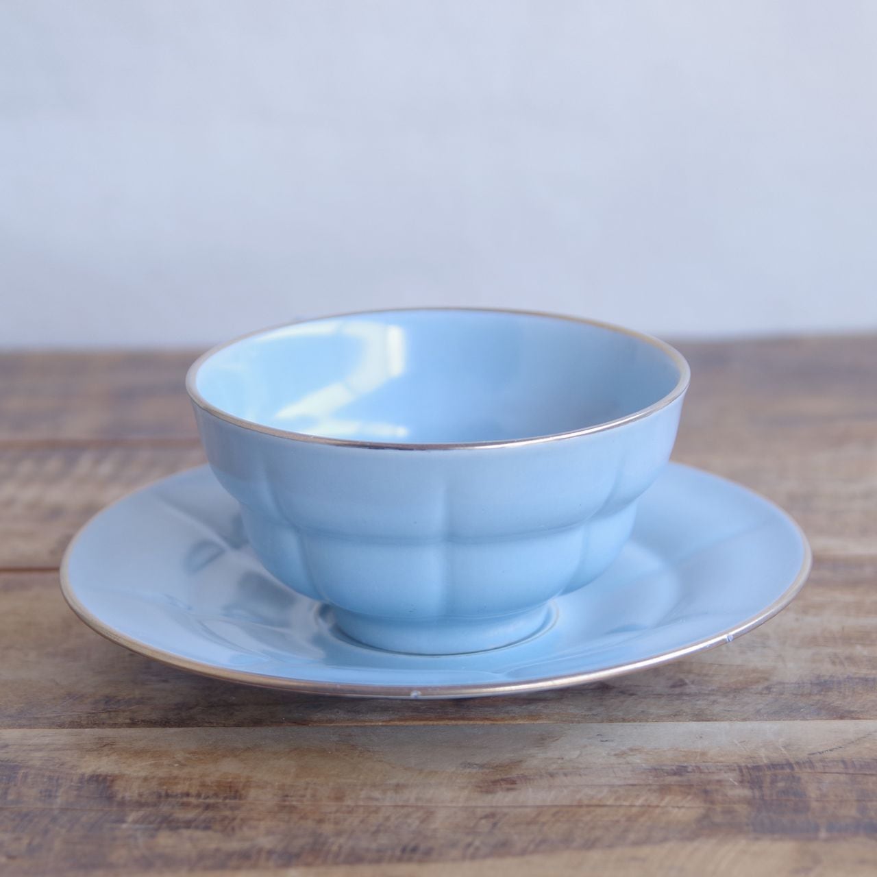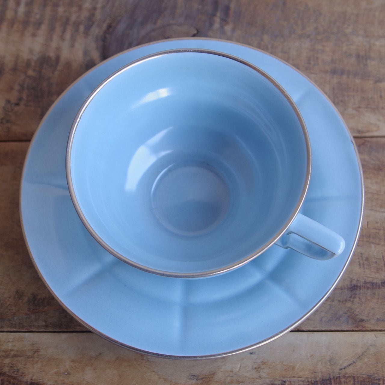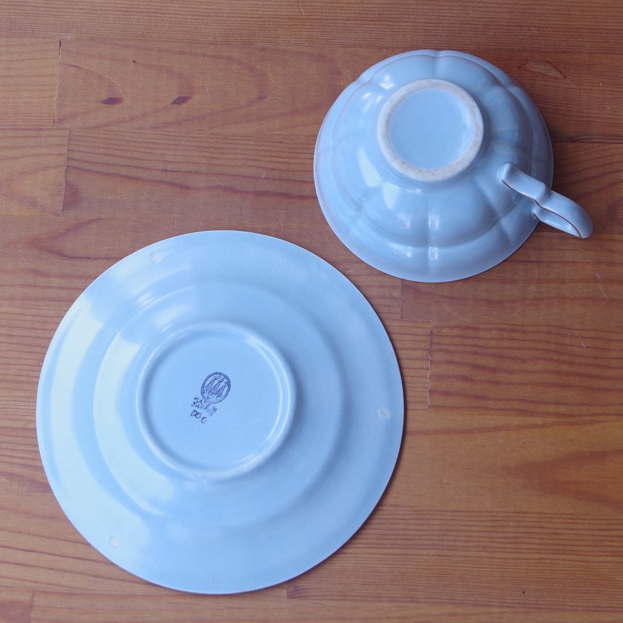 ウプサラエクビー ゲフレ グランド ブルー Upsala Ekeby Gefle Grand Blue ティーカップ&ソーサー #251129-4 北欧 スウェーデン製 ヴィンテージ アンティーク 食器 陶器 ゴールド 水色 コーヒーカップ Arthur Percy アーサー・パーシー アールデコ
