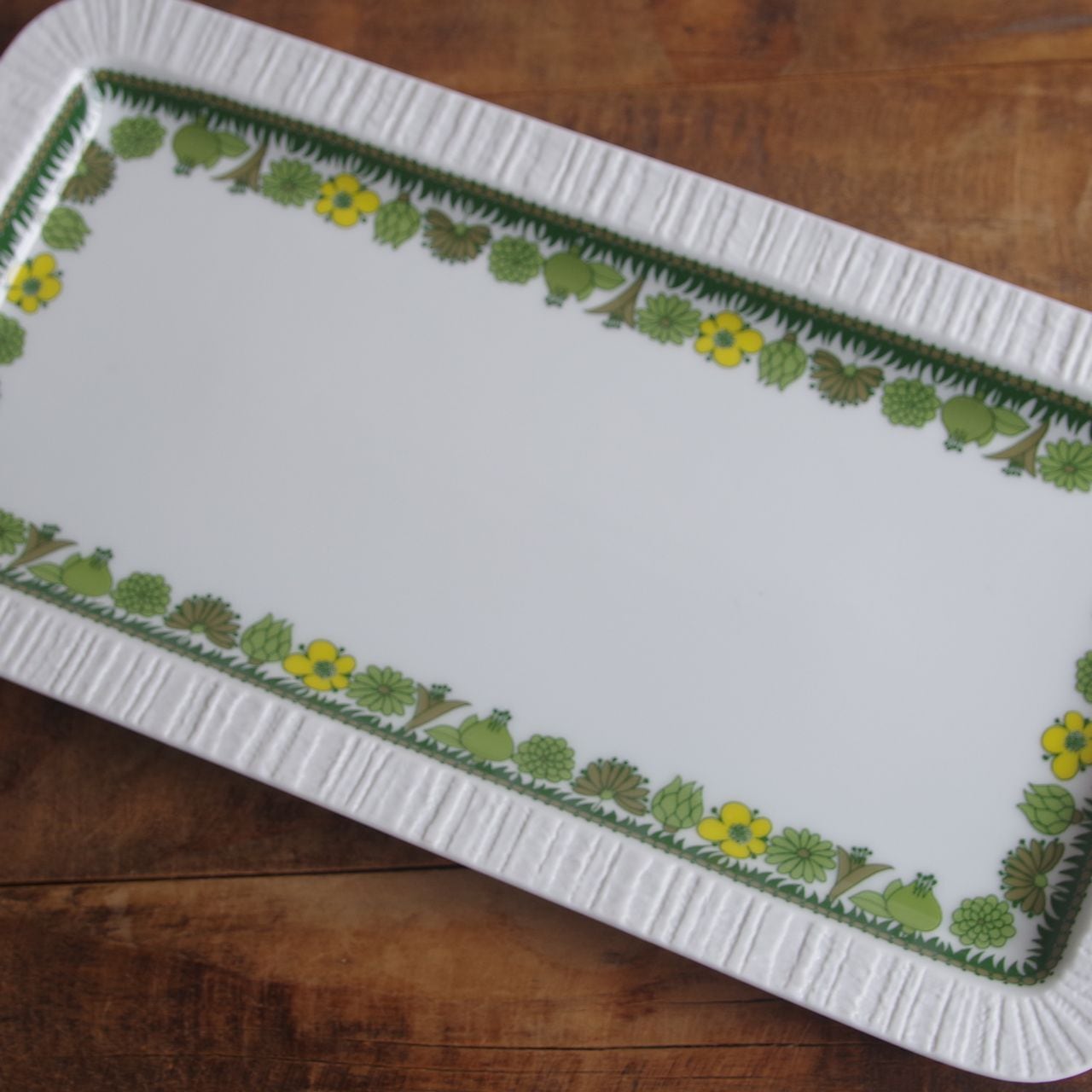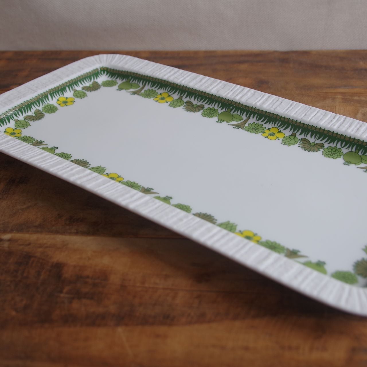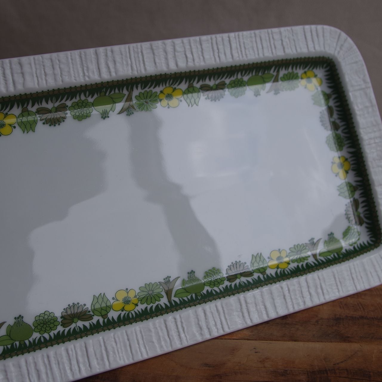 ローゼンタール トーマス Thomas アルクタ きみどり 花柄 横長プレート 34cm 長角皿 #251202 Rosenthal Arcta レトロ ドイツ ヴィンテージ食器 陶磁器 Tapio Wirkkala かわいい シュトレン ロールケーキ オブロングプレート グリーン 黄色