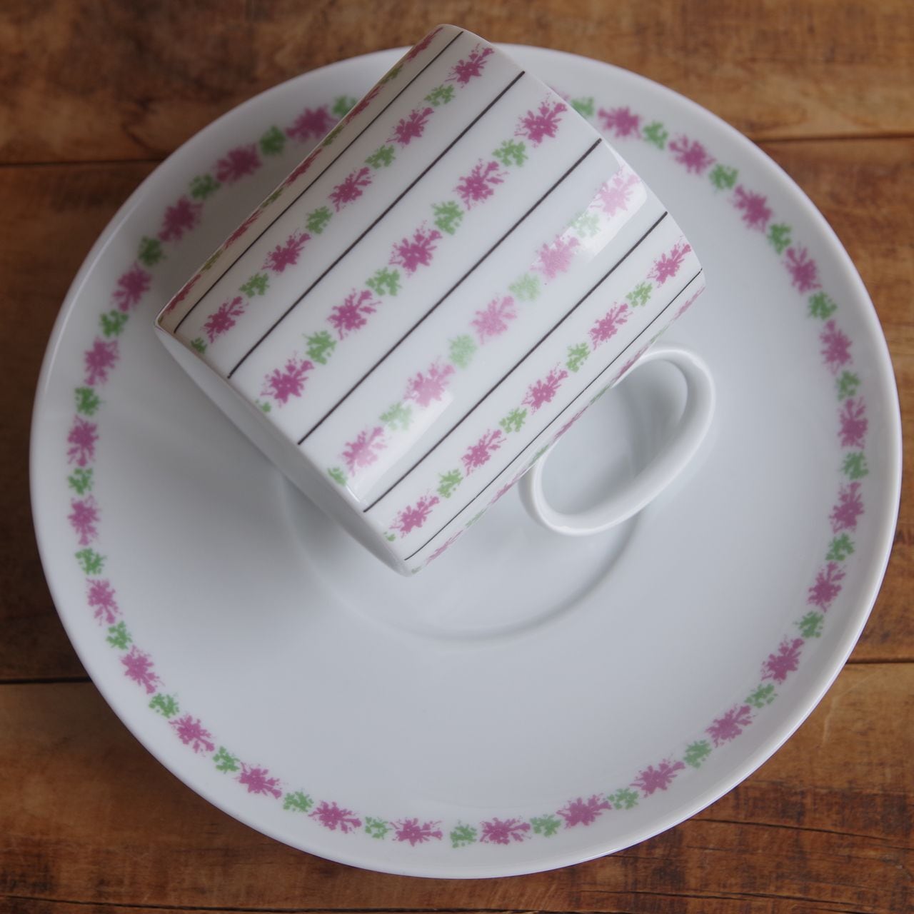 ローゼンタール トーマス メダリオン ピンク 花柄 コーヒーカップ&ソーサー Rosenthal Thomas Medalion #251202-4 ドイツ製 ヴィンテージ食器 アンティーク 陶磁器 レトロ シンプル かわいい