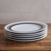 リム部分に、黒とマットシルバーのラインが入ったシンプルなデザインで、クールでモダンな印象のお皿です。