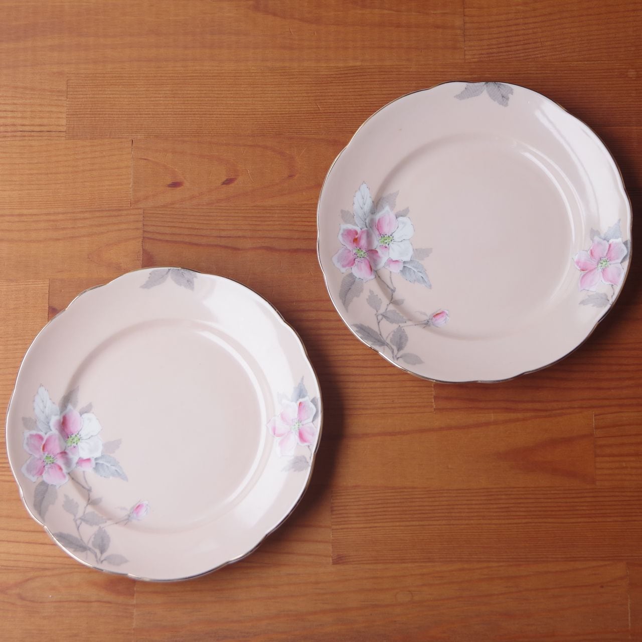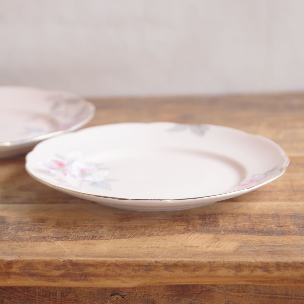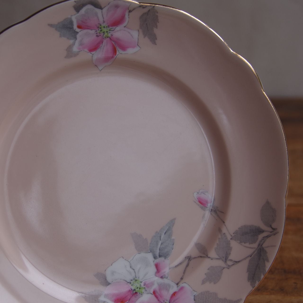 Foley フォーリー ピンク 薔薇 花柄 デザートプレート ケーキ皿 18cm イギリス ヴィンテージ アンティーク食器 ヴィンテージ 陶磁器 #251211-1,2 レトロ 英国 雑貨 手塗り 桃色 パン皿 サラダプレート お皿 かわいい E.Bain & Co. Ltd ペールピンク ピンクベージュ