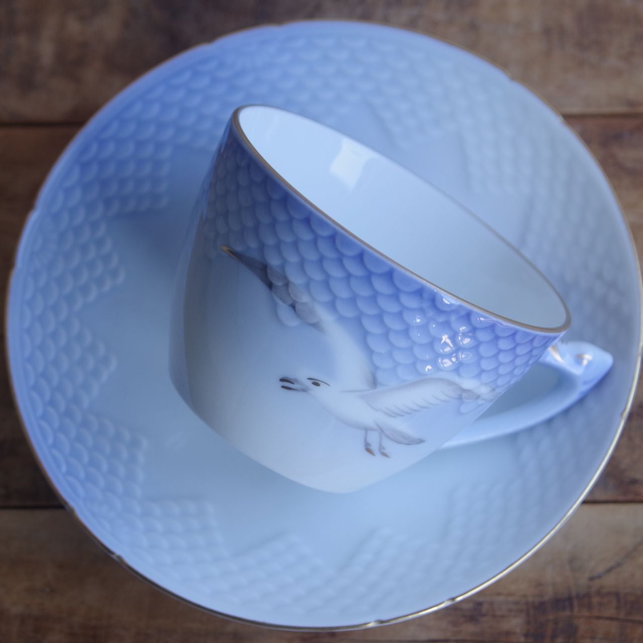 ビングオーグレンダール シーガル かもめ柄 ティーカップ&ソーサー 103 Bing&Grondahl Seagull #251219-9 北欧 デンマーク ヴィンテージ アンティーク 食器 陶磁器 ブルー グラデーション 金彩 鳥 カモメ 青