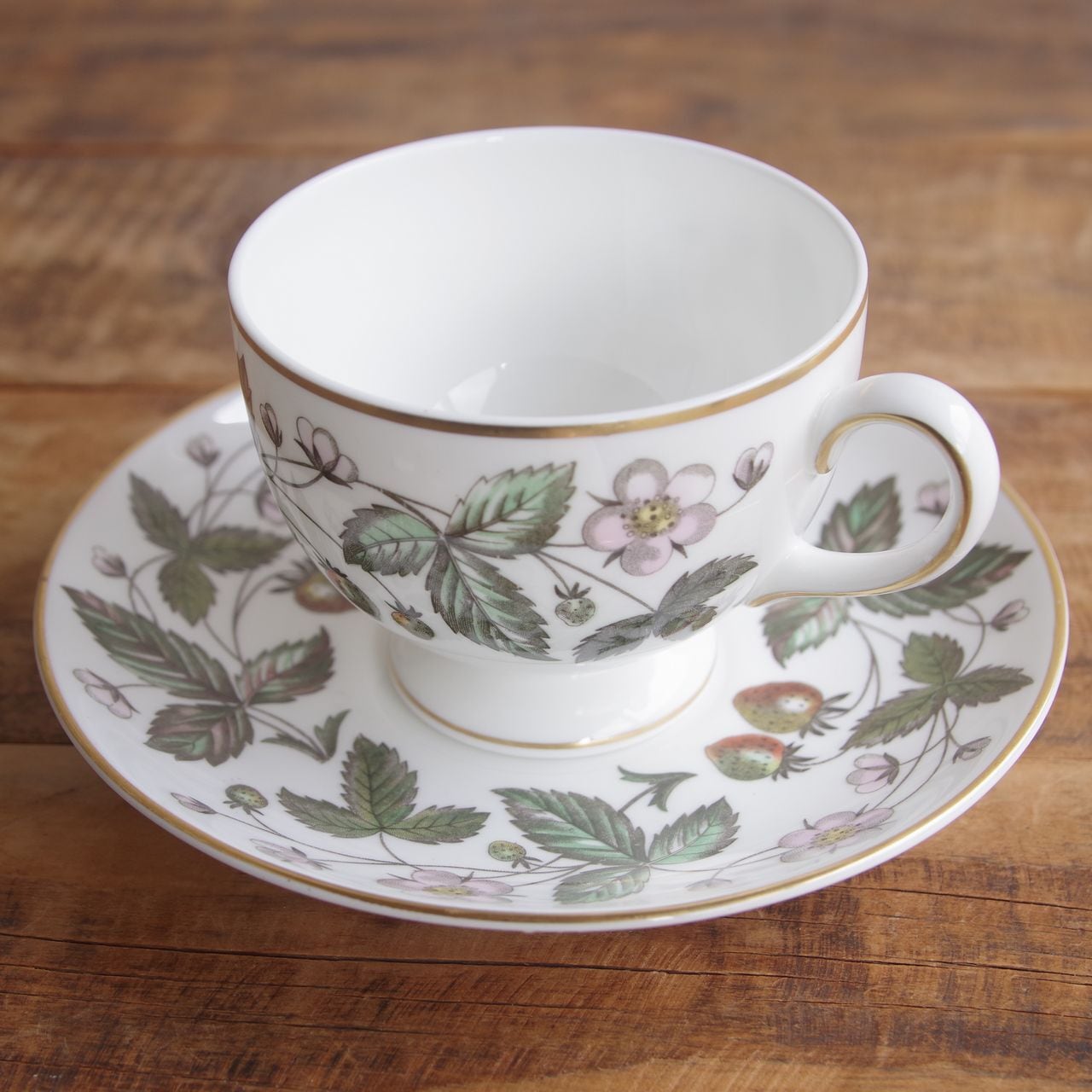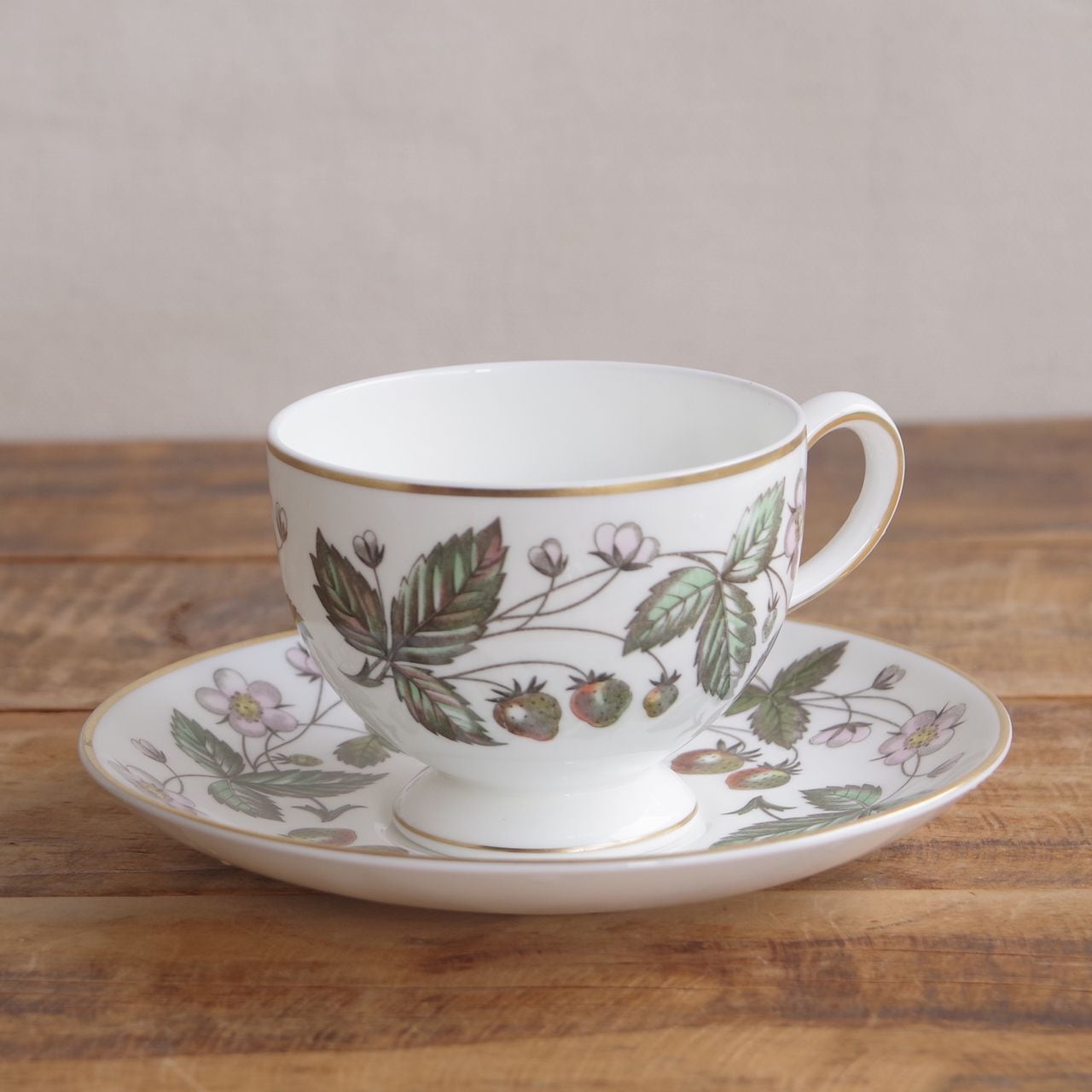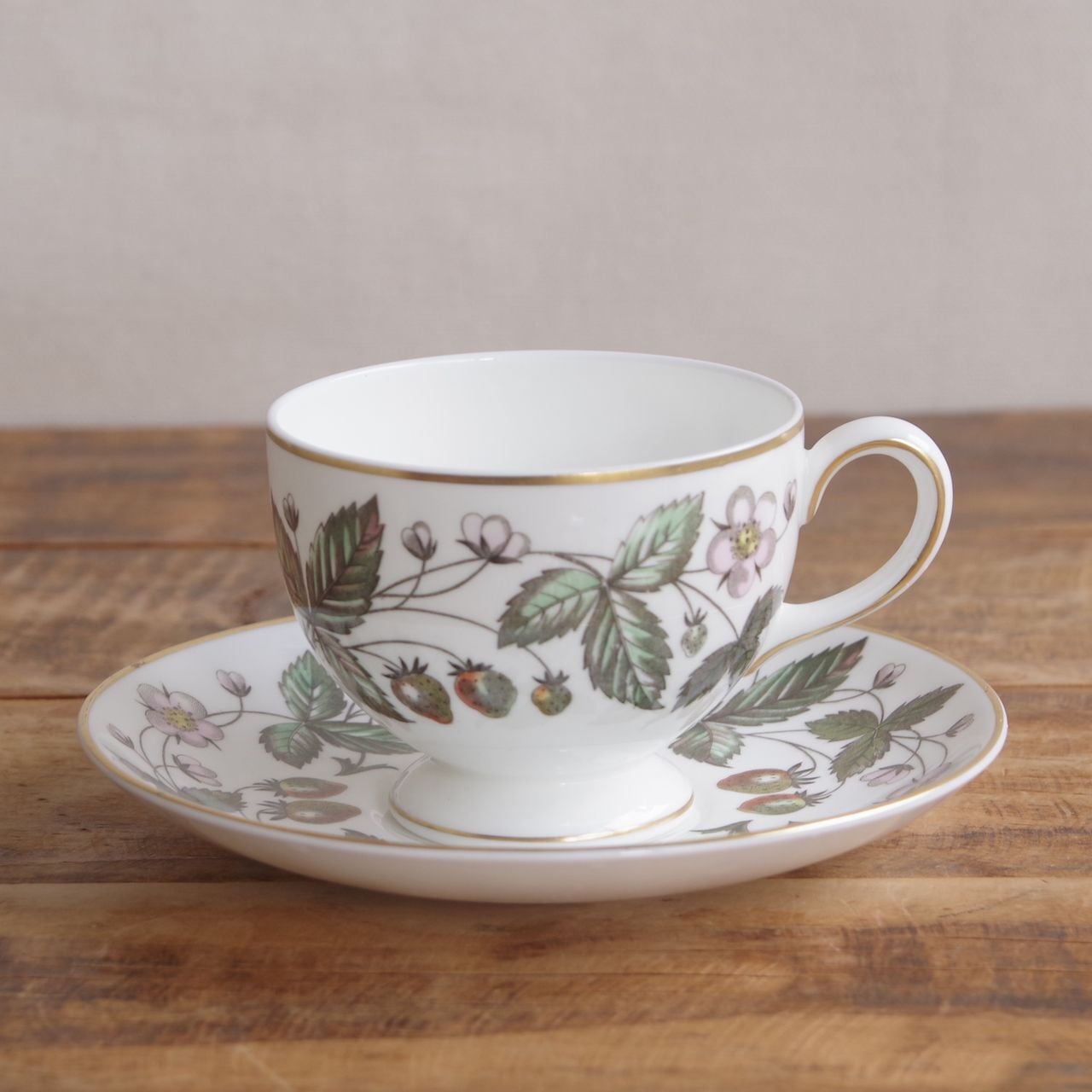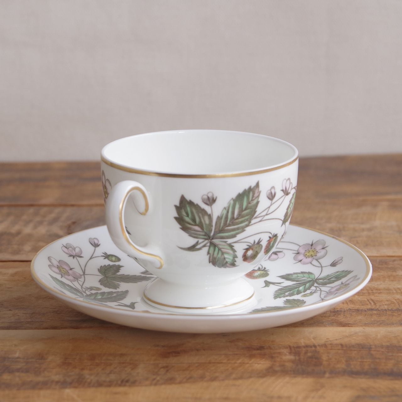 ウェッジウッド ストロベリーヒル いちご柄 コーヒーカップ ソーサー ヴィンテージ 食器 Strawberry Hill Wedgwood #251229-1~11 フルーツ柄 レトロ ゴールド ボタニカル カップ&ソーサー ティーカップ 苺