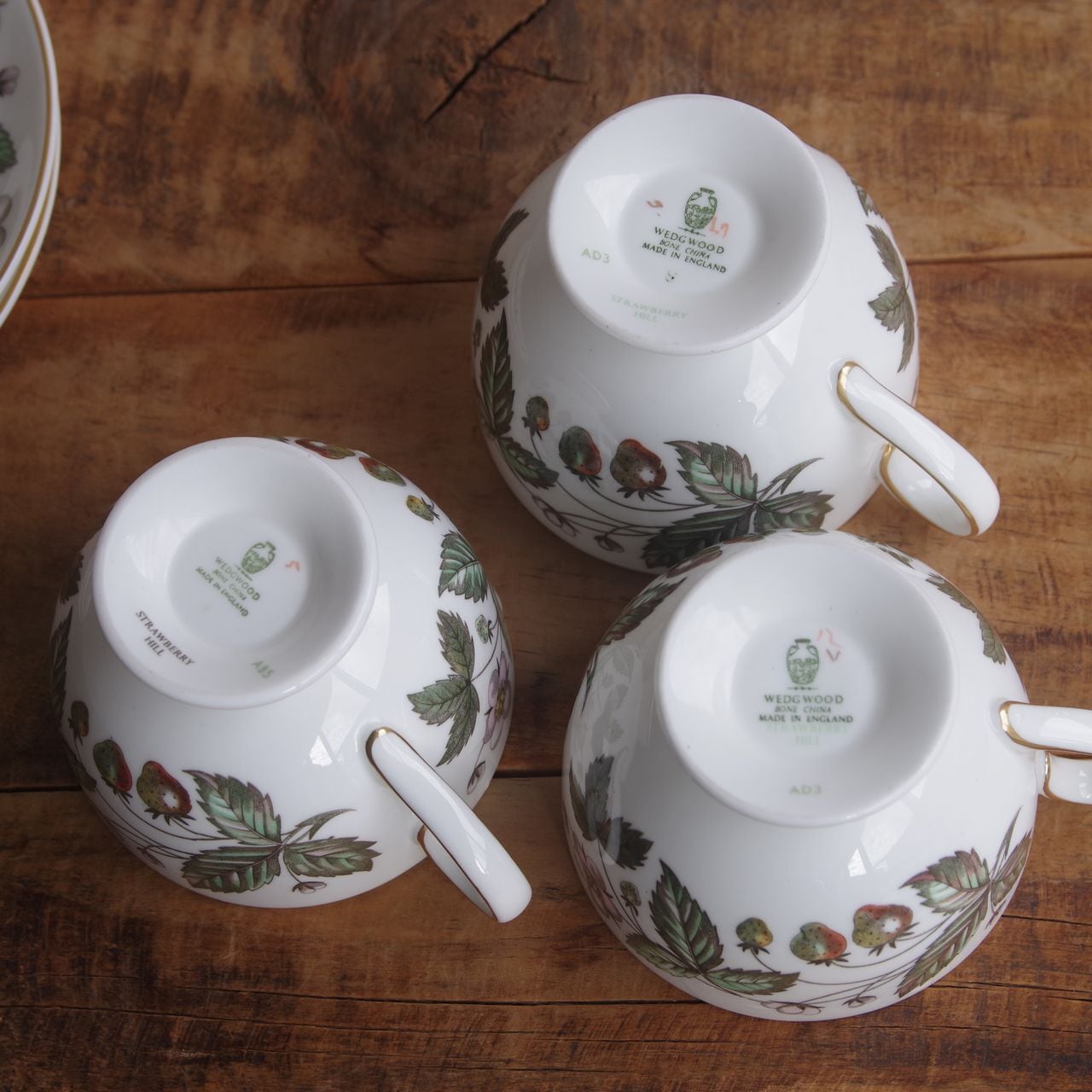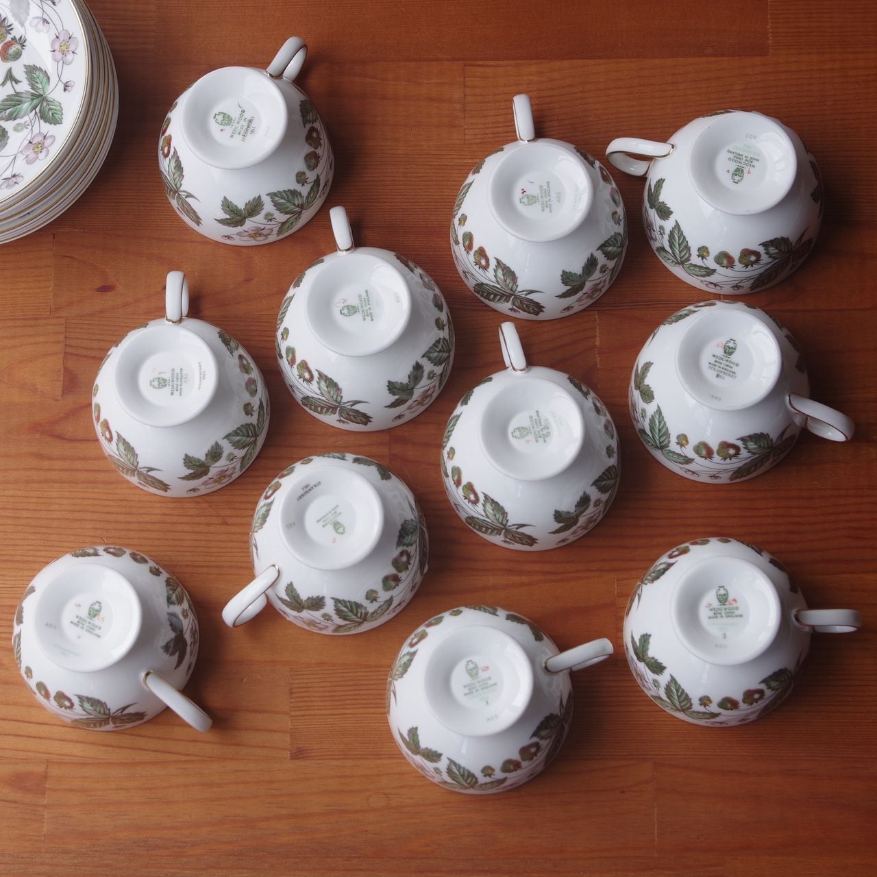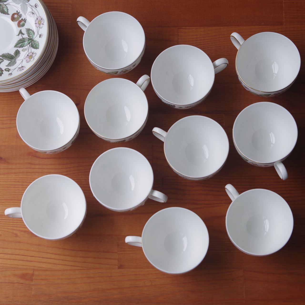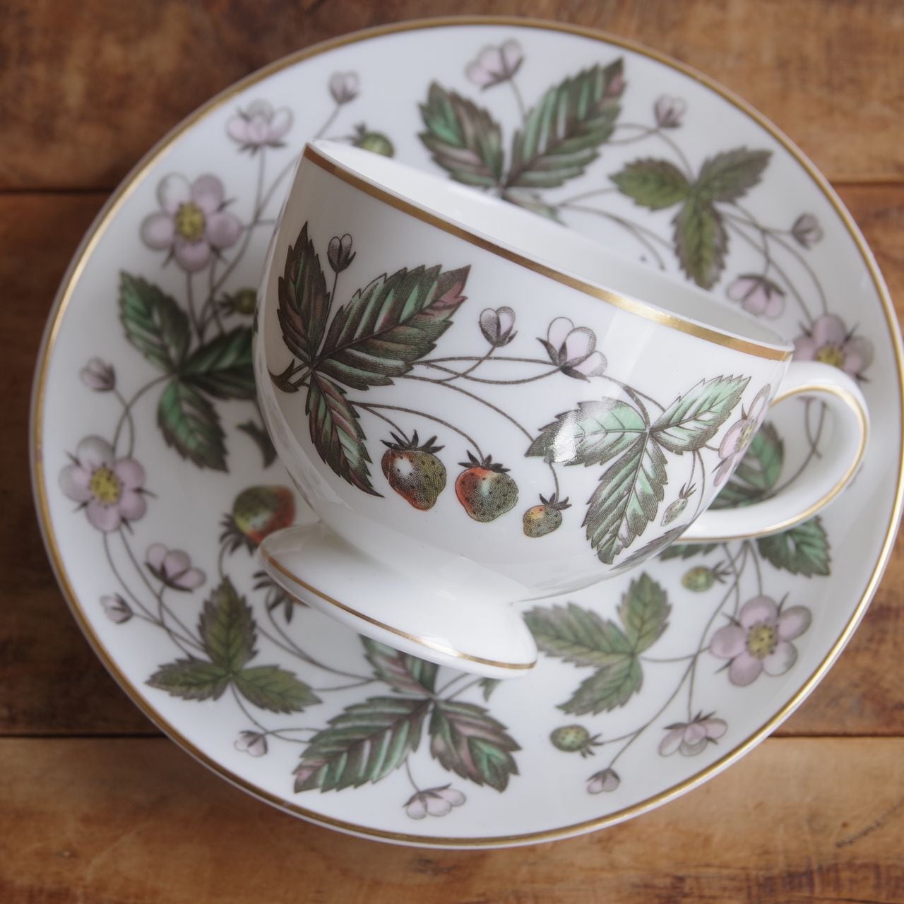 ウェッジウッド ストロベリーヒル いちご柄 コーヒーカップ ソーサー ヴィンテージ 食器 Strawberry Hill Wedgwood #251229-1~11 フルーツ柄 レトロ ゴールド ボタニカル カップ&ソーサー ティーカップ 苺