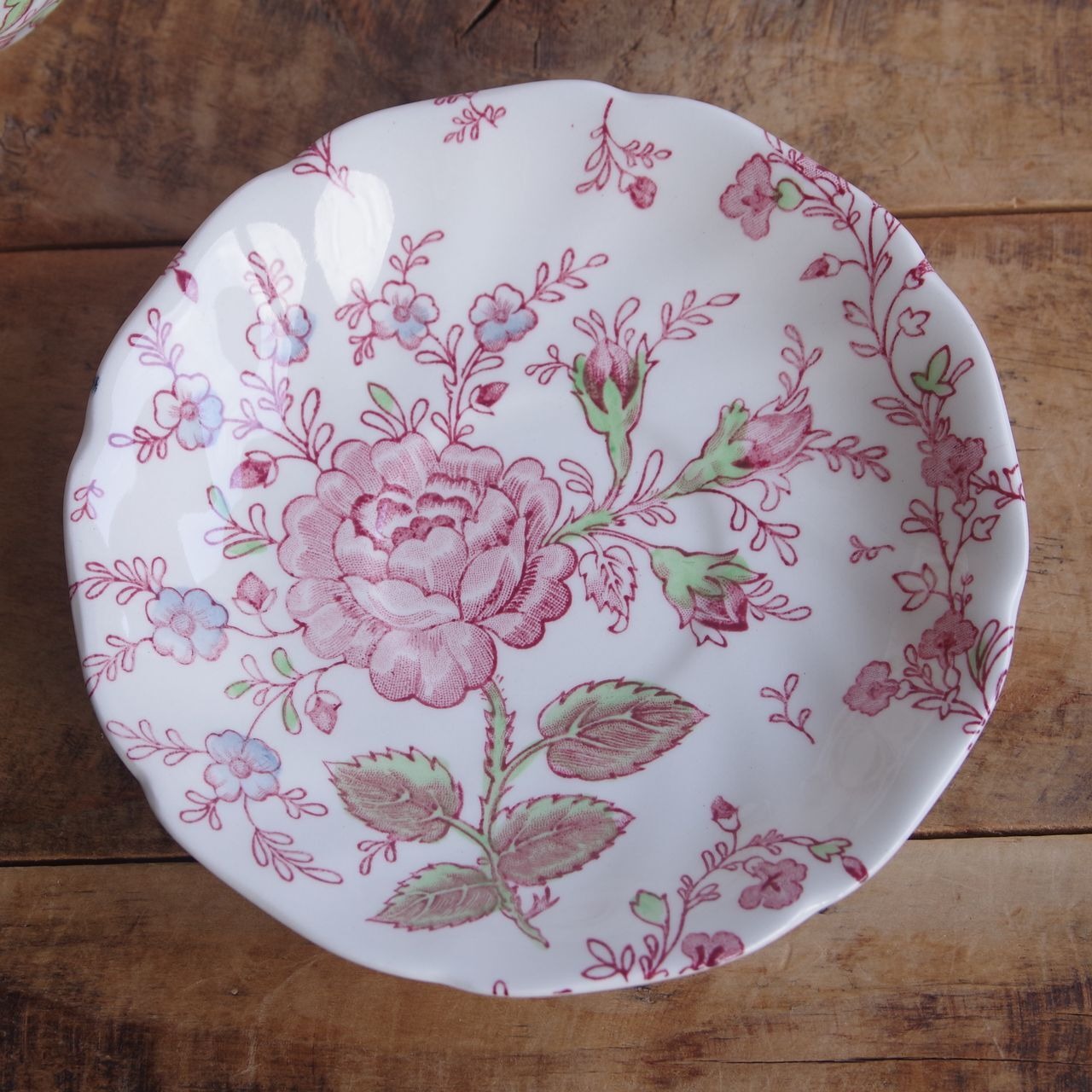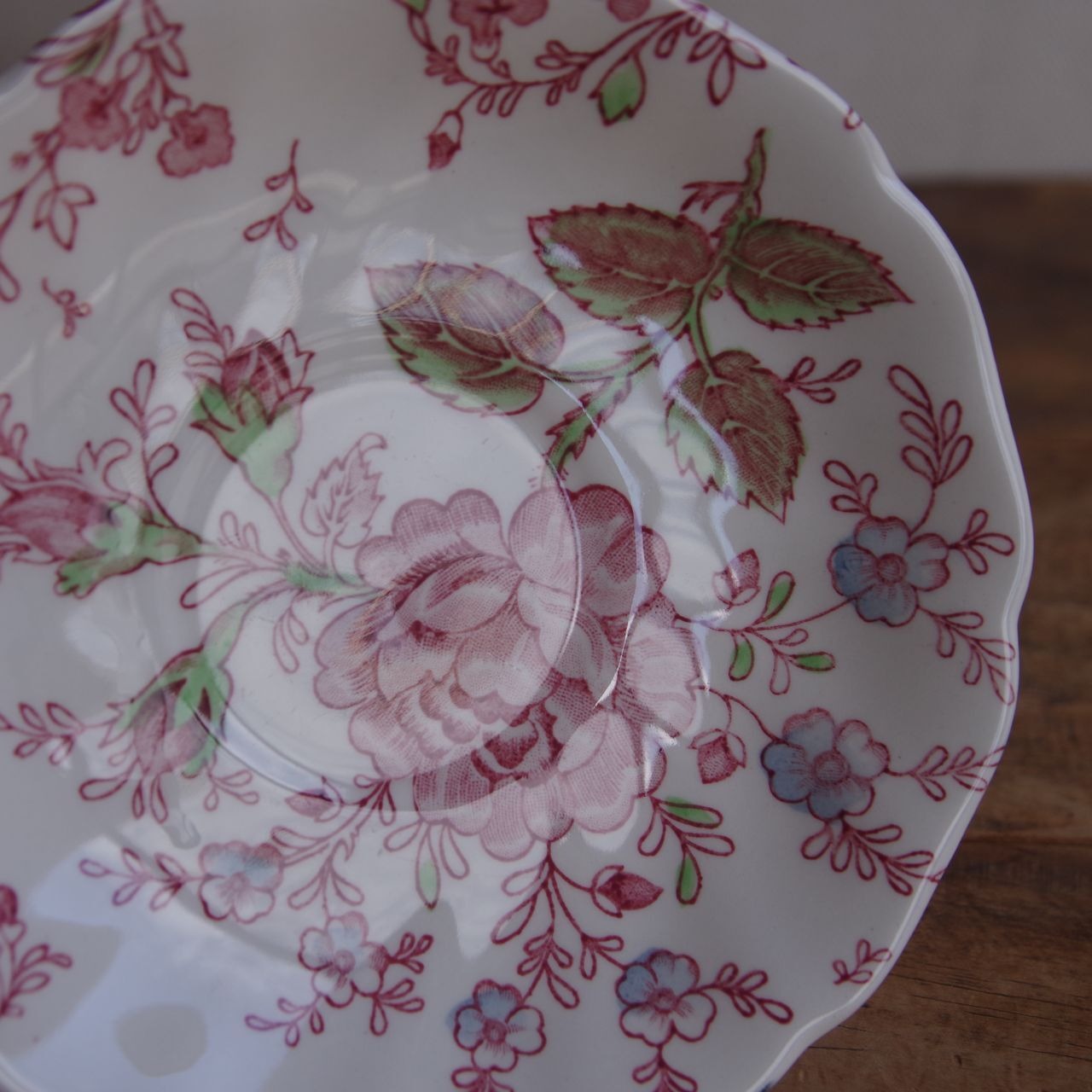 ジョンソンブラザーズ ローズチンツ ティーカップ&ソーサー ヴィンテージ 食器 陶器 ばら 花柄 ピンク #251229-4 イギリス Johnson Brothers Rose Chintz レトロ かわいい コーヒーカップ