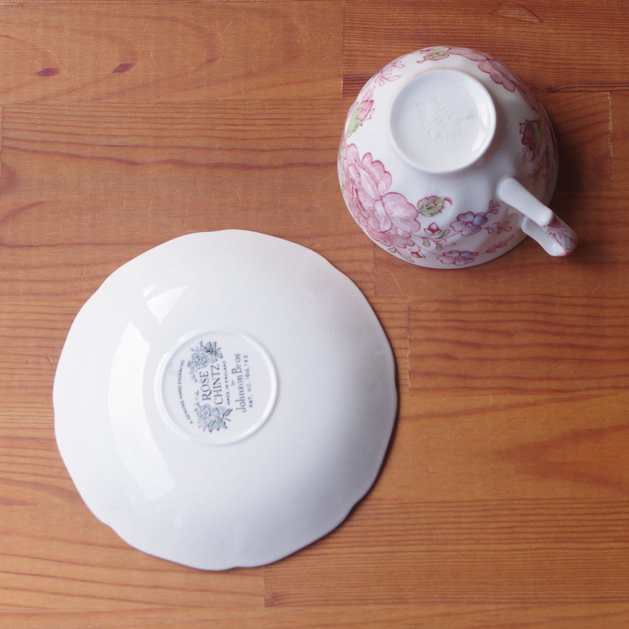 ジョンソンブラザーズ ローズチンツ ティーカップ&ソーサー ヴィンテージ 食器 陶器 ばら 花柄 ピンク #251229-5 イギリス Johnson Brothers Rose Chintz レトロ かわいい コーヒーカップ