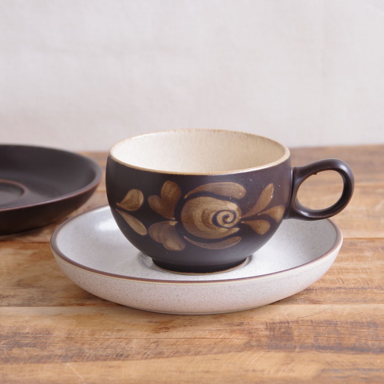 【訳あり】 デンビー ベイクウェル カップ&ソーサー DENBY Bakewell ダークブラウン ベージュ 薔薇 花柄 おまけ付き #260114 イギリス製 ビンテージ 食器 陶器 アンティーク レトロ ティーカップ コーヒーカップ Cup Saucer こげ茶色