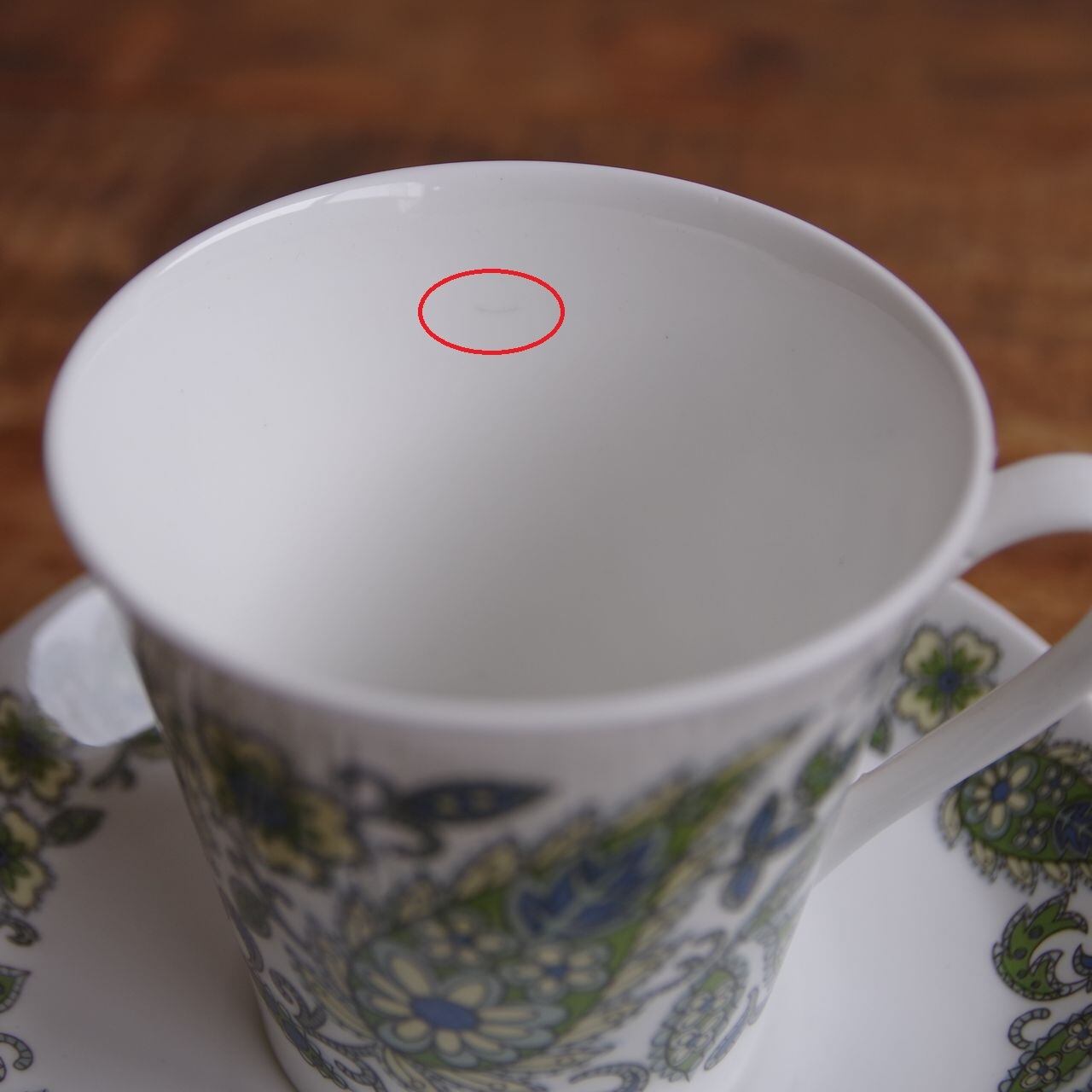カップ内側に小さくひっかき傷のような短い線状の痕があります。