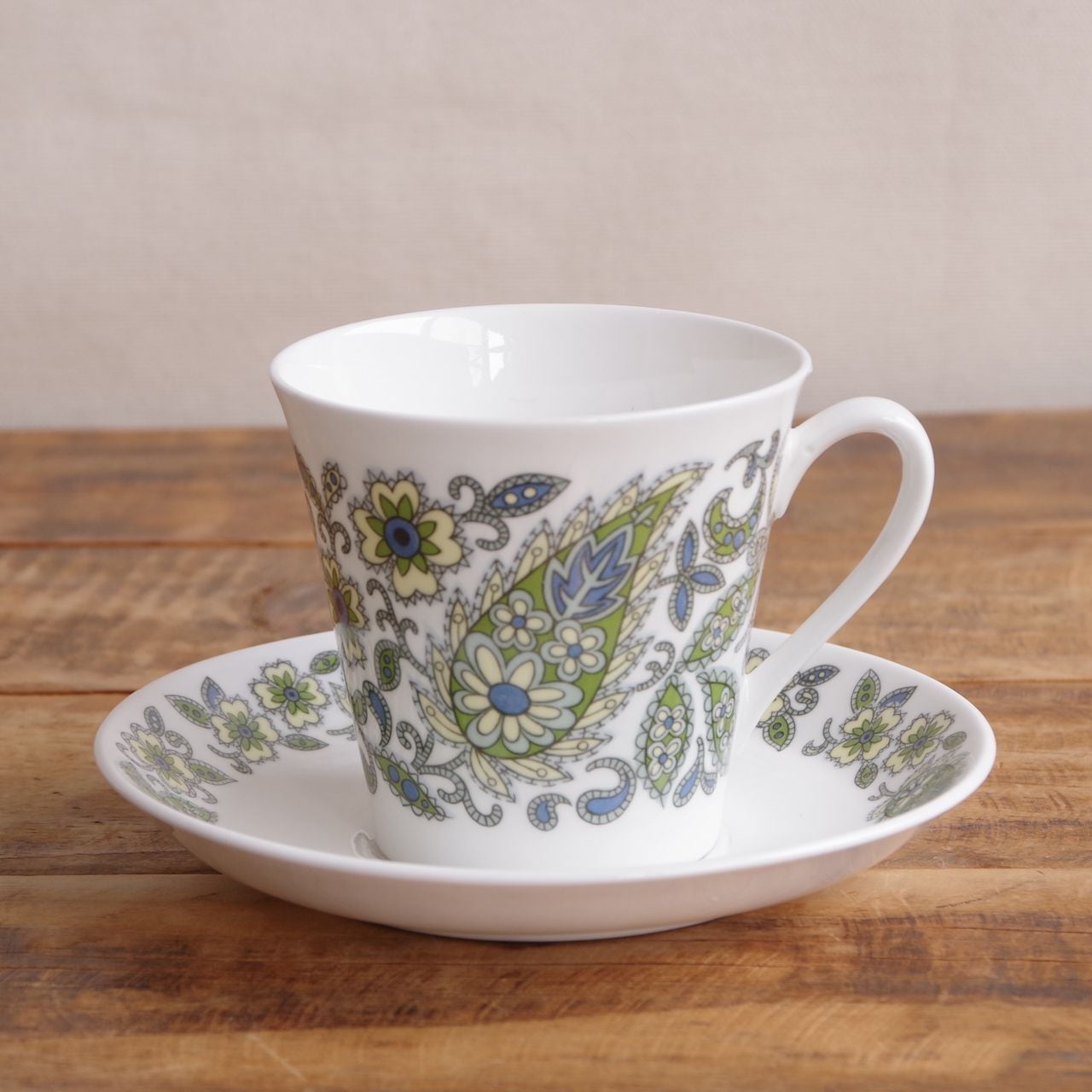 ウィンザー ベルベデーレ グリーン ペイズリー 花柄 コーヒーカップ&ソーサー Windsor China England Belvedere #260121-5 イギリス ヴィンテージ食器 陶磁器 レトロ ティーカップ CS