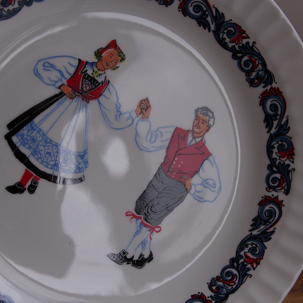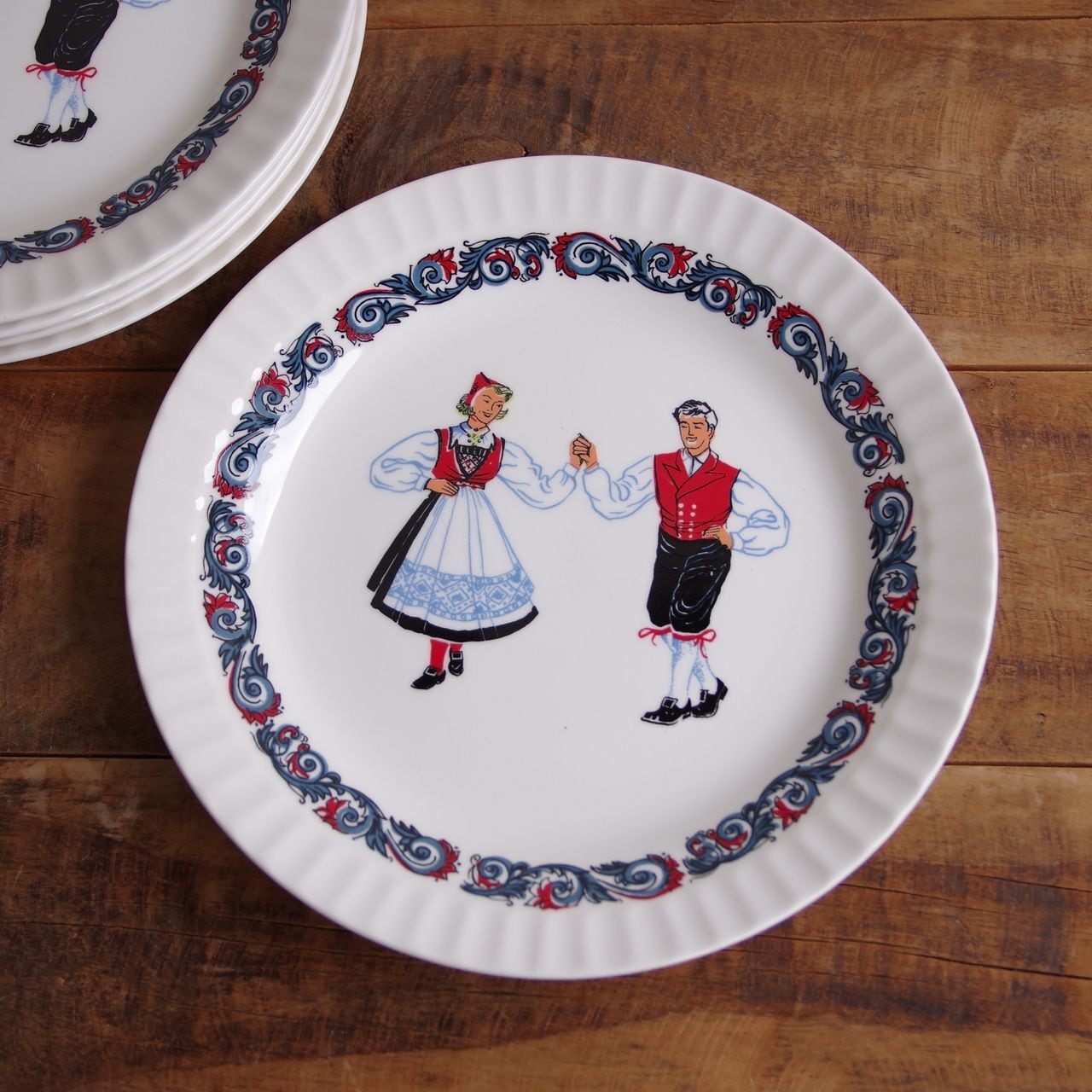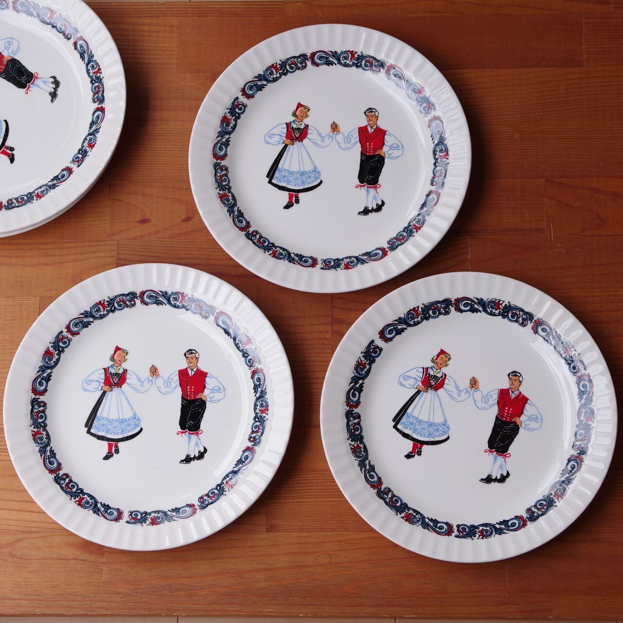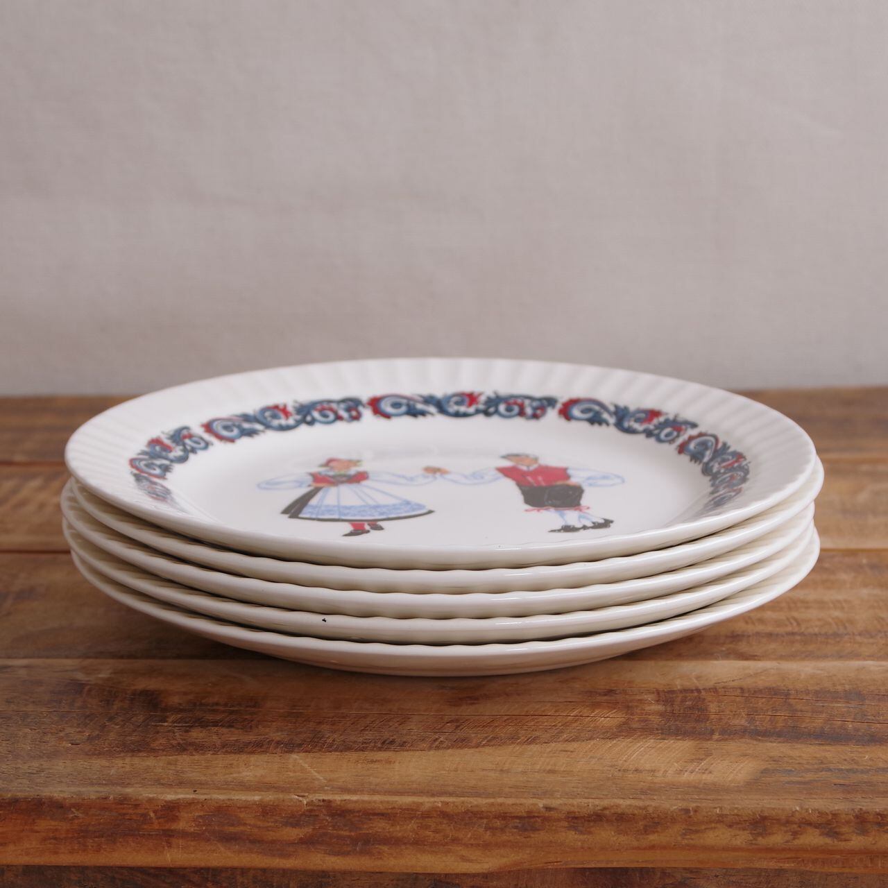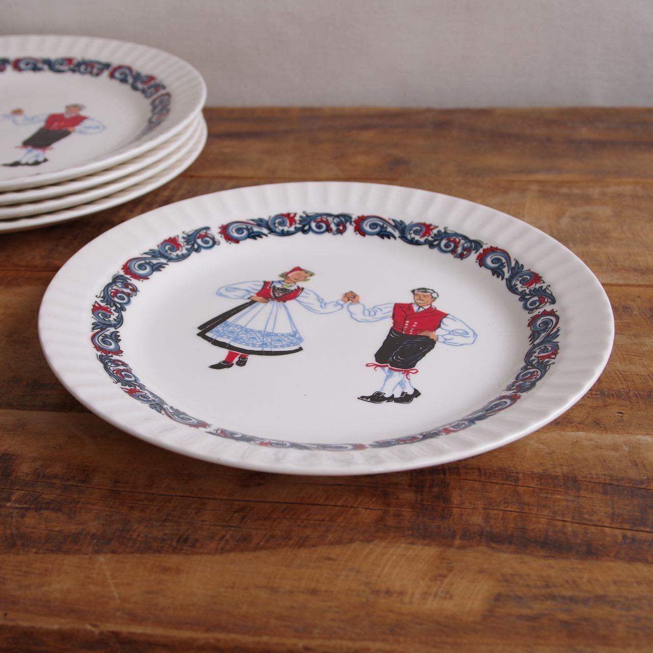 フィッギオフリント ブーナード デザートプレート ケーキ皿 20cm Figgjo Flint Bunad フォークダンス ダンサー #260128-1~5 レトロ かわいい お皿 丸皿 トースト サラダ パン皿 民族衣装 北欧 ヴィンテージ食器 陶器 ノルウェー