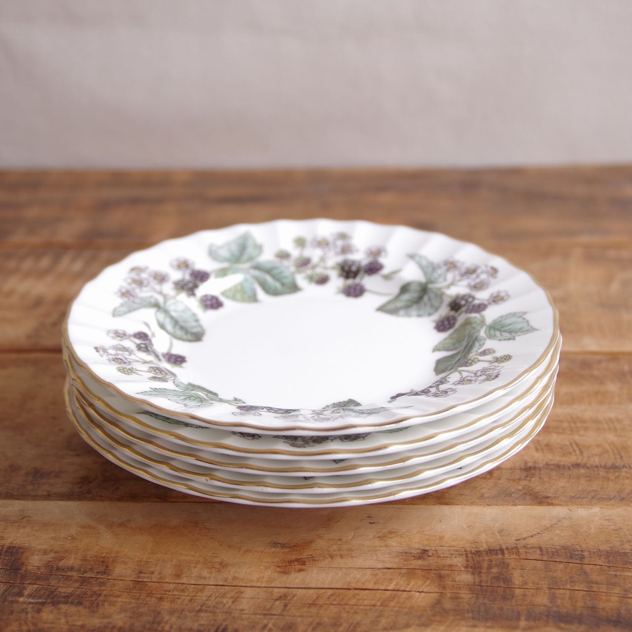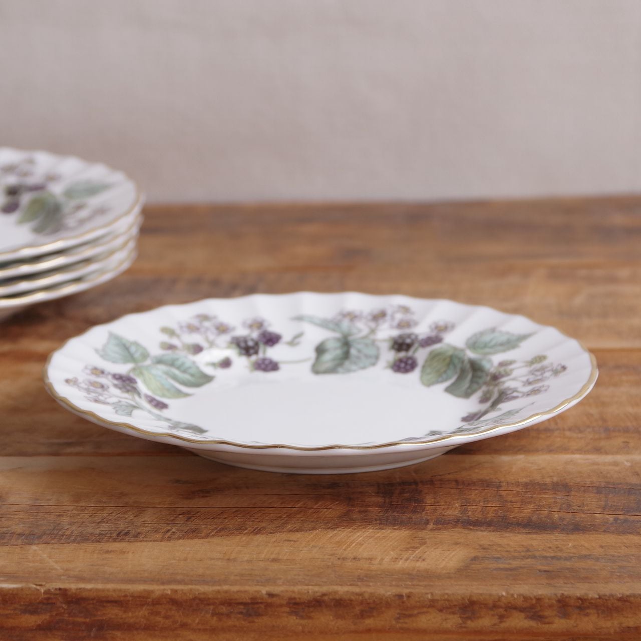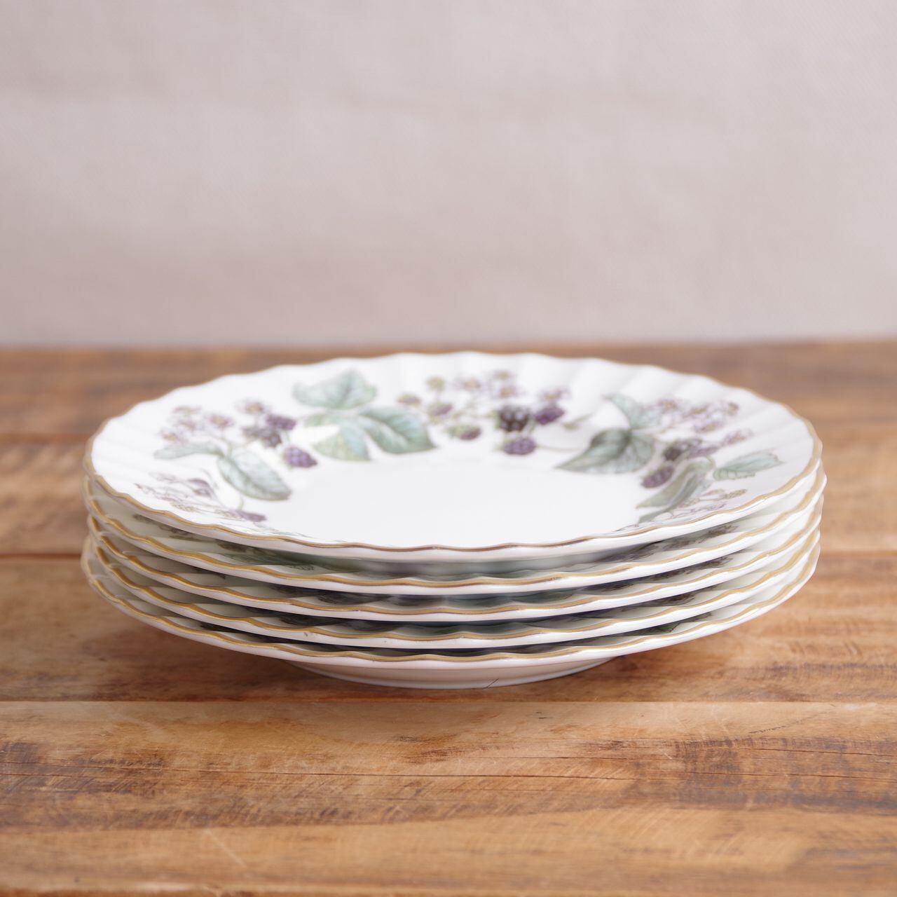 ロイヤルウースター ラビニア デザートプレート ケーキ皿 16cm Royal Worcester Lavinia ボタニカル柄 #260130-1~5 ヴィンテージ 食器 陶器 イギリス ブラックベリー フルーツ柄 レトロ
