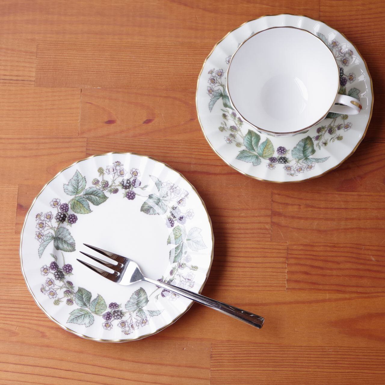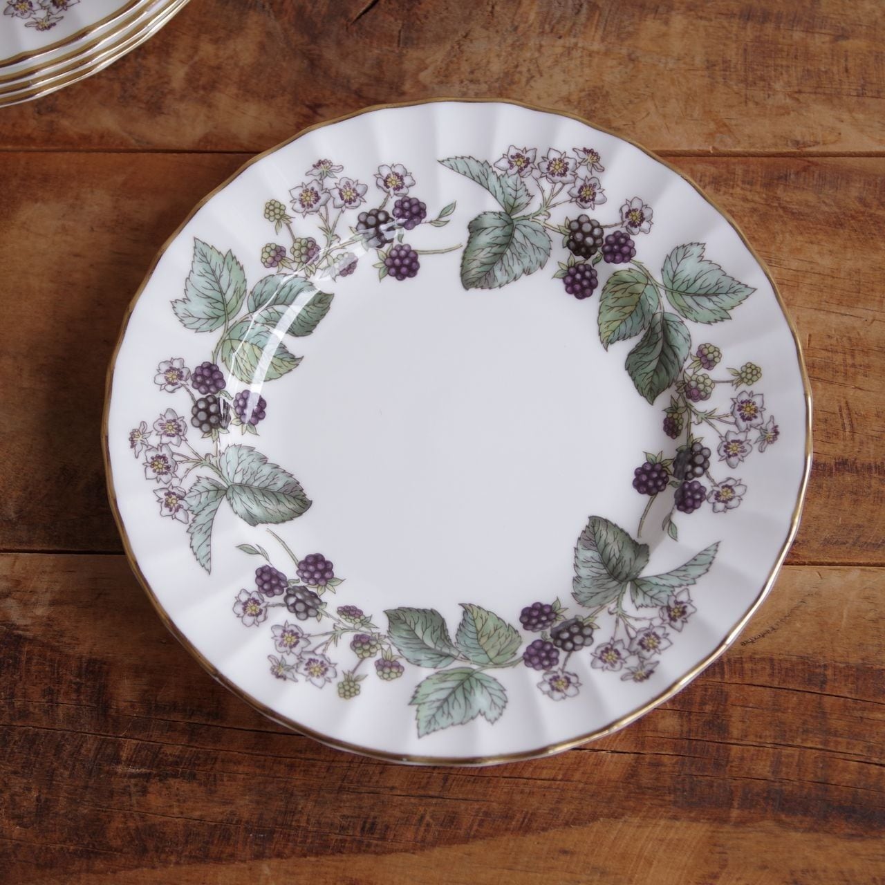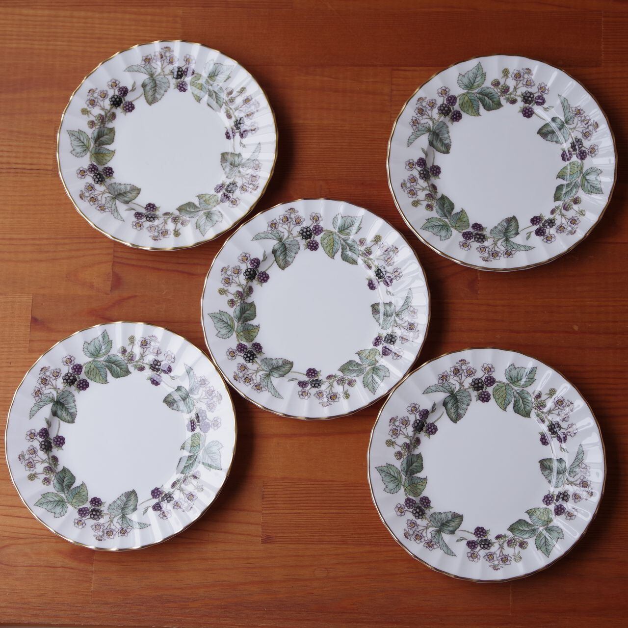 ロイヤルウースター ラビニア デザートプレート ケーキ皿 16cm Royal Worcester Lavinia ボタニカル柄 #260130-1~5 ヴィンテージ 食器 陶器 イギリス ブラックベリー フルーツ柄 レトロ