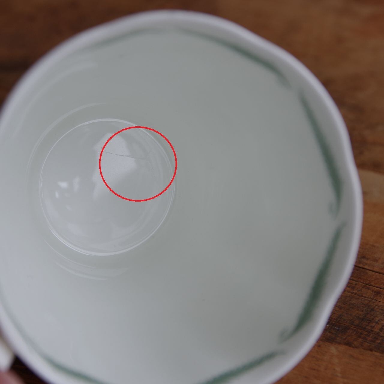 使用によるダメージではありませんが、カップ内側の底面に、ヒビのように見える箇所があります。