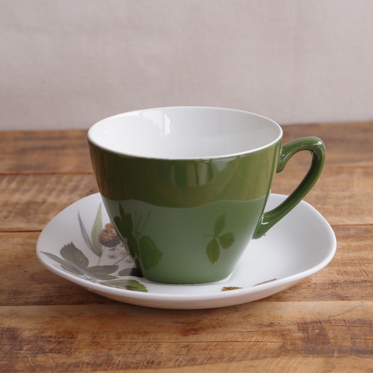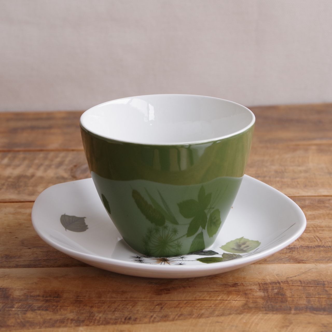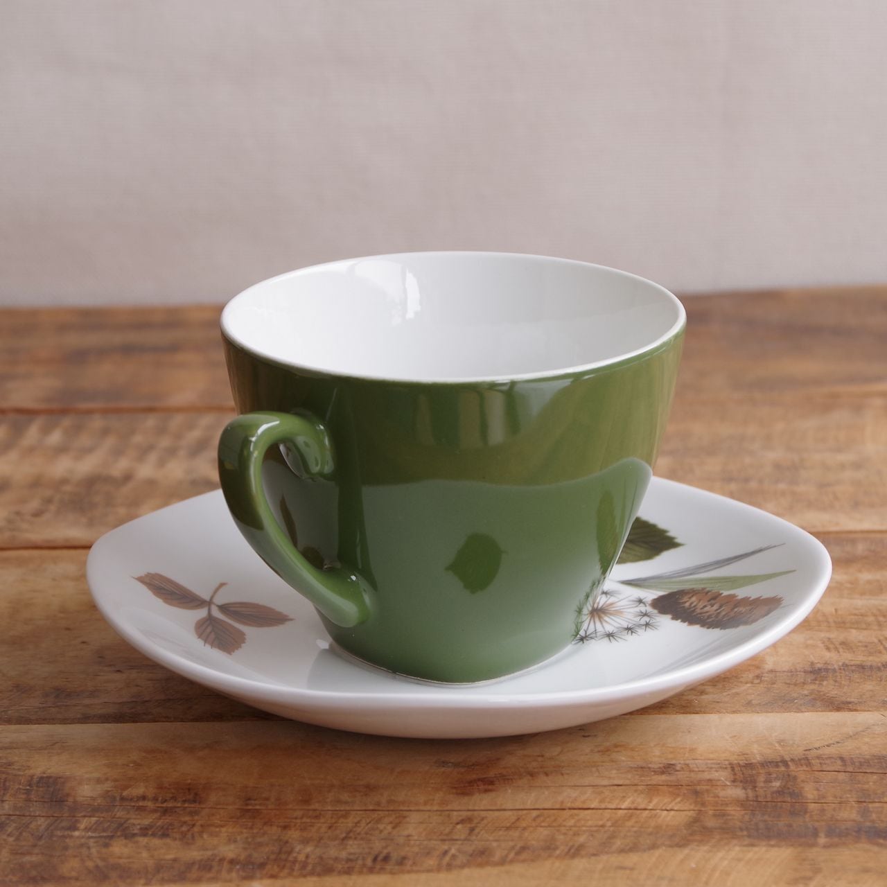 ミッドウィンター リバーサイド 蒲 植物 コーヒーカップ&ソーサー ミッドセンチュリー レトロ グリーン ボタニカル柄 #260204-15 イギリス ヴィンテージ アンティーク 食器 陶器 Midwinter Riverside Fashion Shape モダン 四角い
