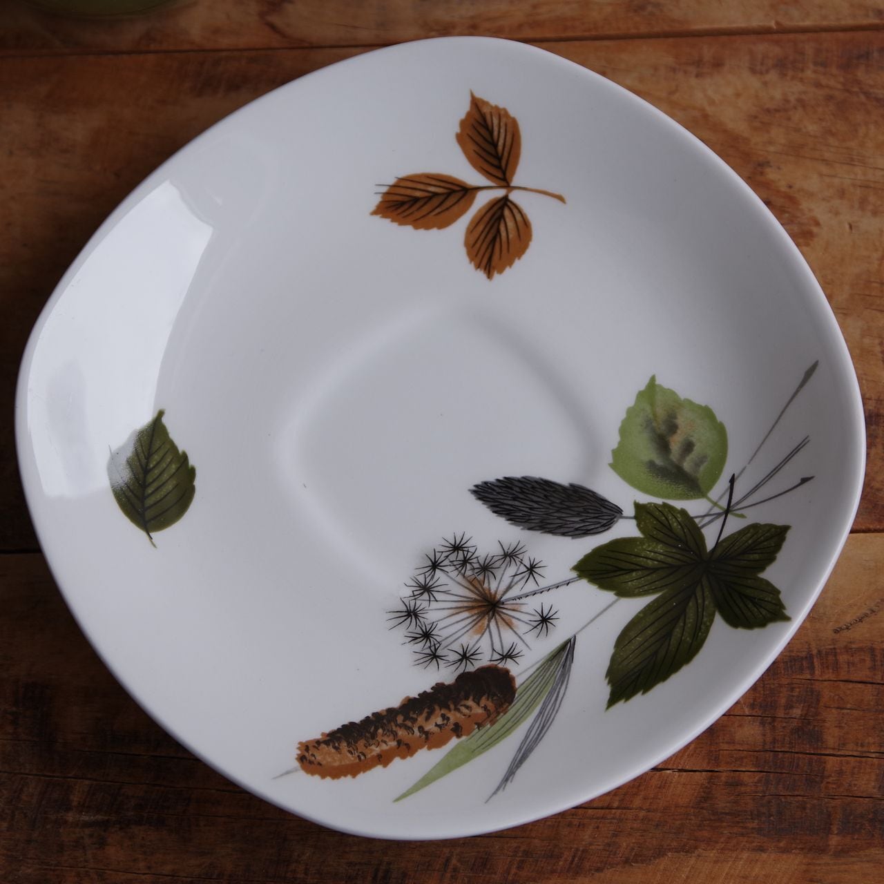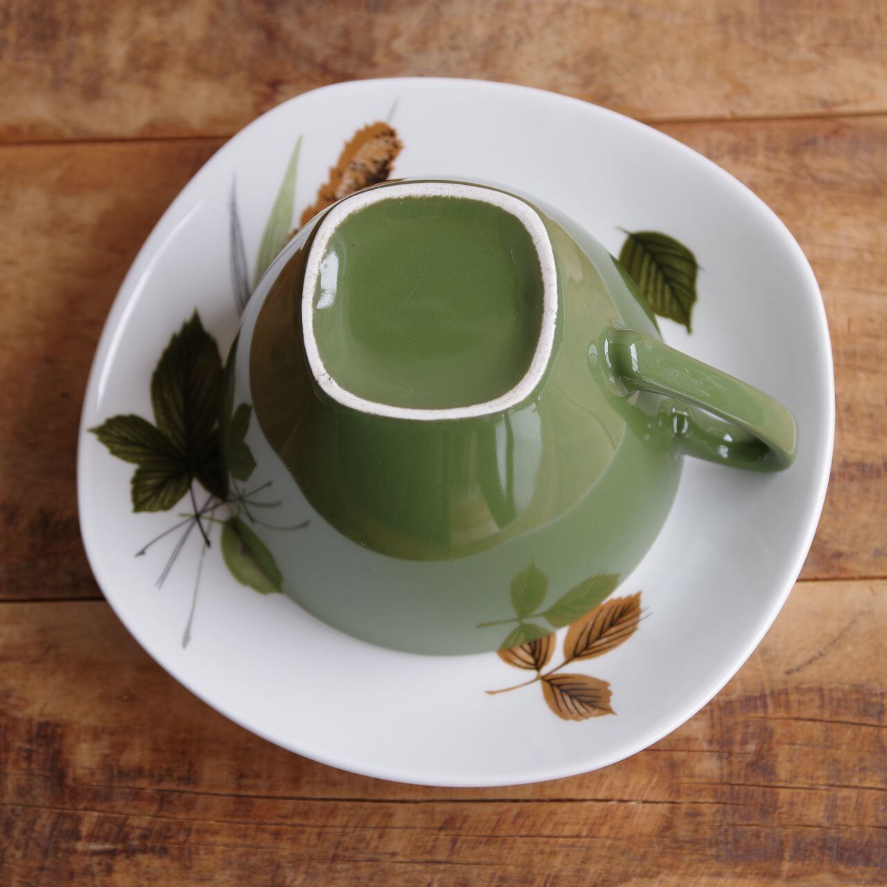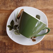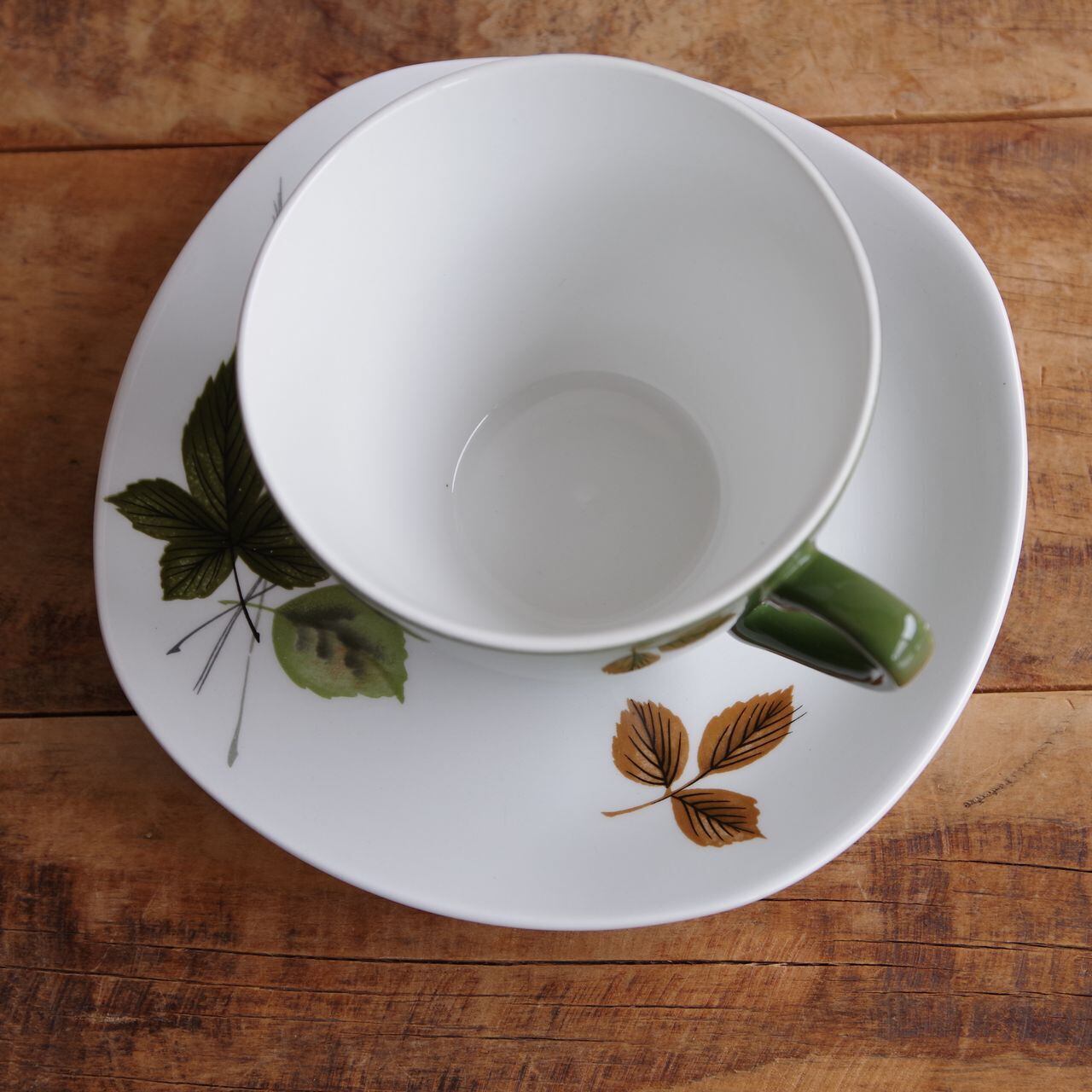 ミッドウィンター リバーサイド 蒲 植物 コーヒーカップ&ソーサー ミッドセンチュリー レトロ グリーン ボタニカル柄 #260204-15 イギリス ヴィンテージ アンティーク 食器 陶器 Midwinter Riverside Fashion Shape モダン 四角い