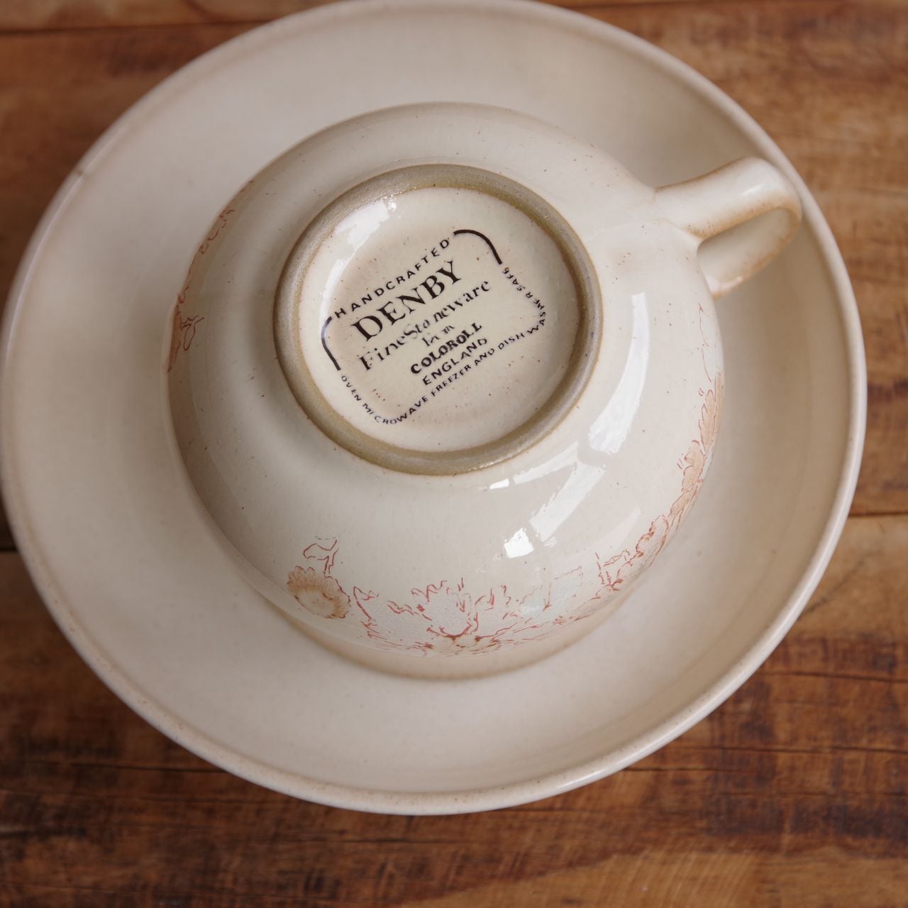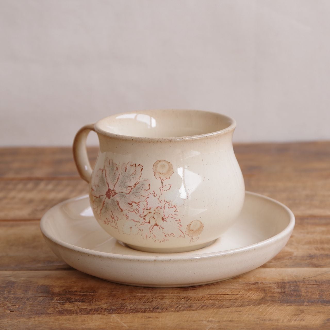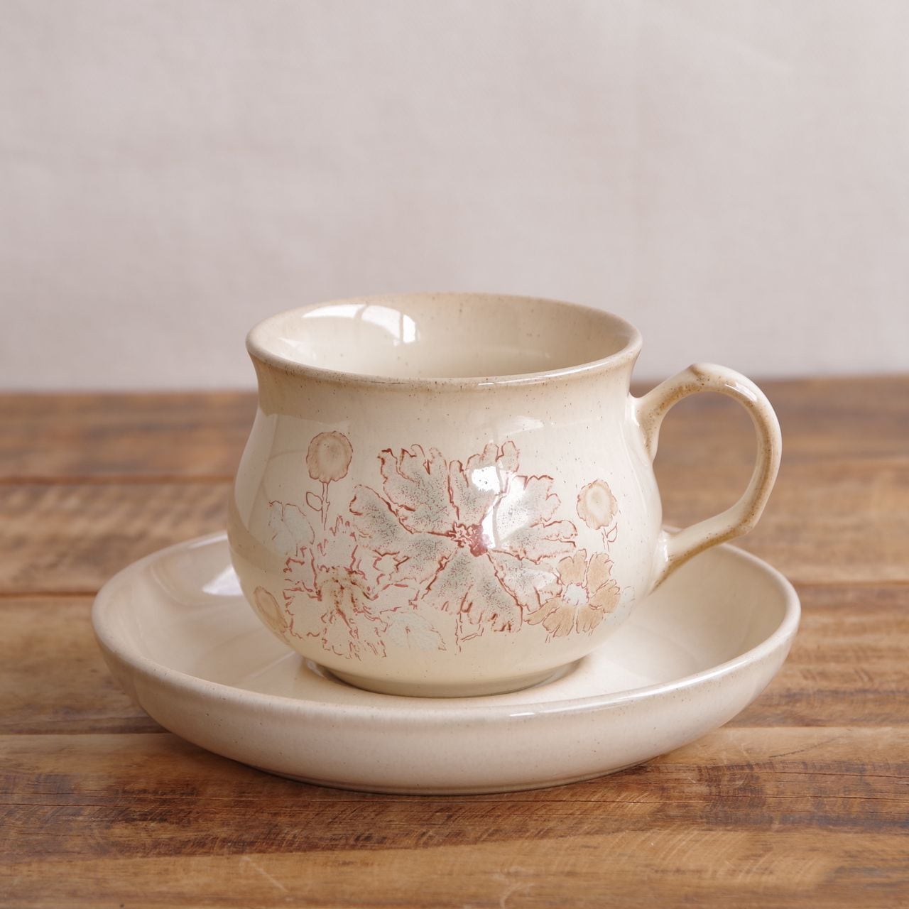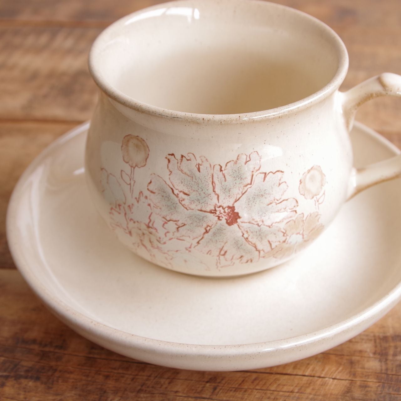 デンビー メープルウッド コーヒーカップ&ソーサー ベージュ ブラウン 花柄 DENBY Maplewood #260205-1,2 イギリス ビンテージ 食器 アンティーク レトロ 陶器 Coloroll ティーカップ
