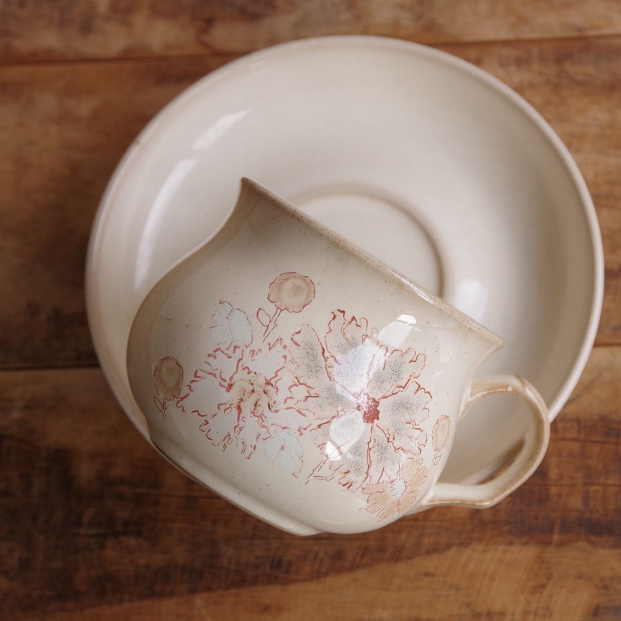 柔らかい色合いと花柄が上品な印象のカップです。