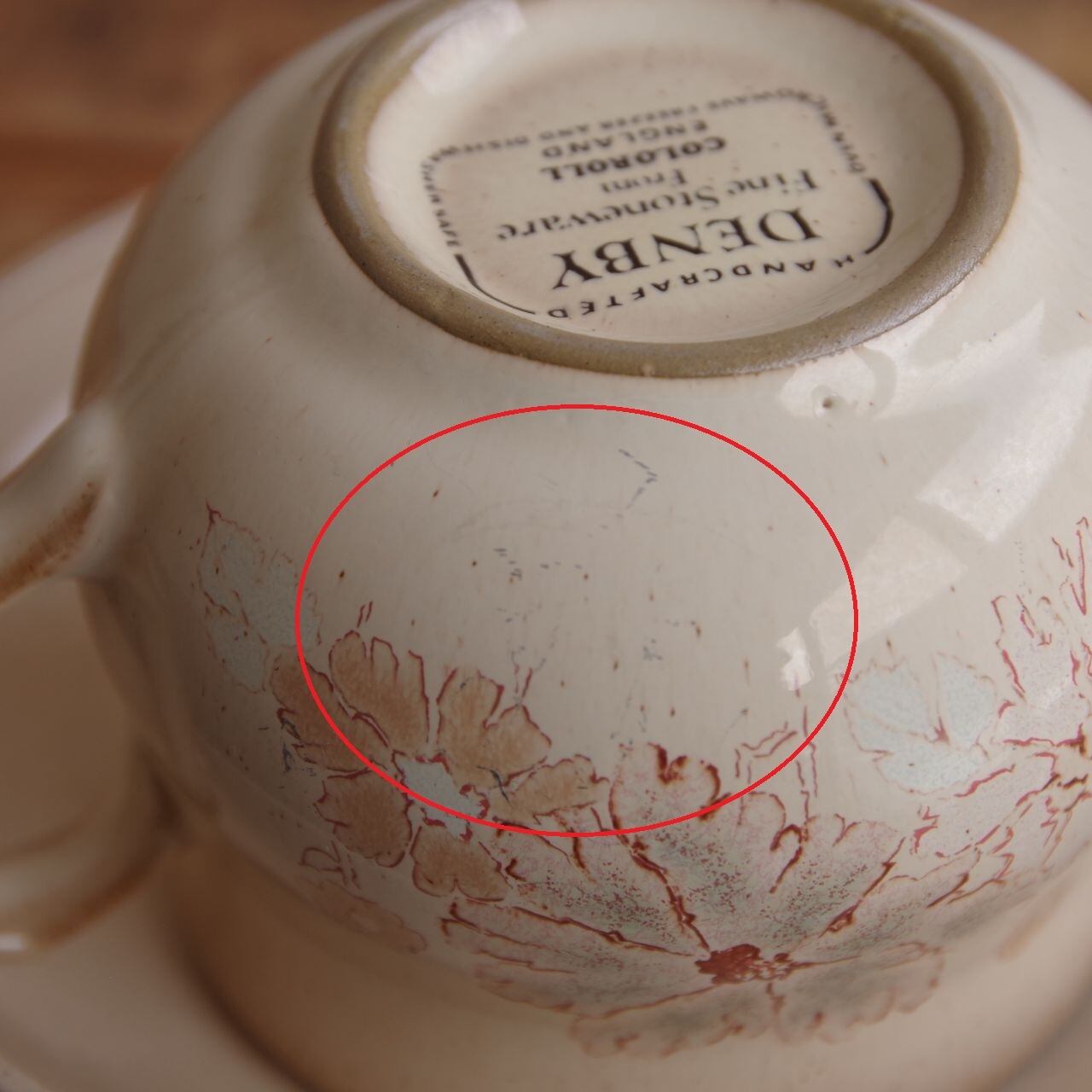 そのほか、ソーサー中央付近など、細かな擦り傷はあるかと思いますが、全体として傷は少なくツヤがあり、ヴィンテージ品としてはきれいな状態です。