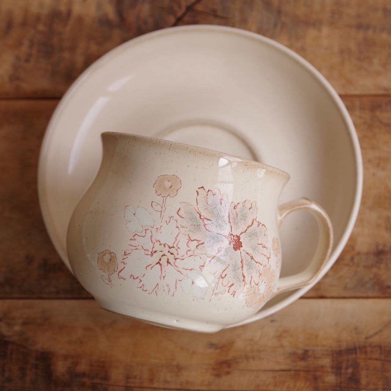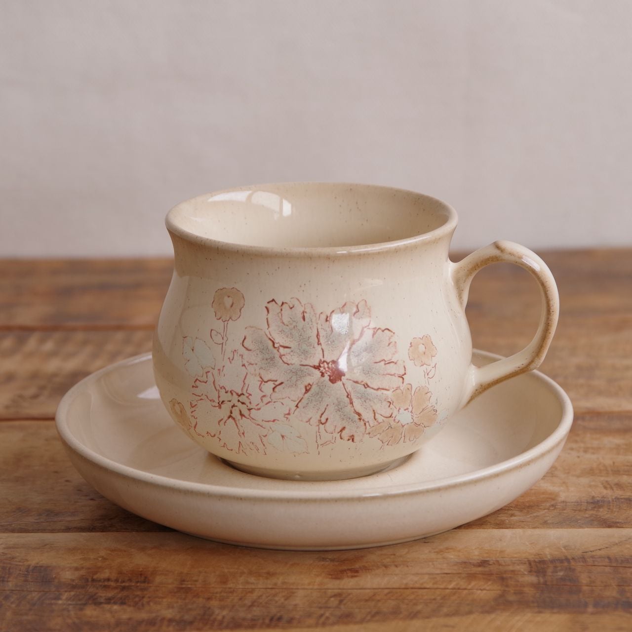 デンビー メープルウッド コーヒーカップ&ソーサー ベージュ ブラウン 花柄 DENBY Maplewood #260205-5 イギリス ビンテージ 食器 アンティーク レトロ 陶器 Coloroll ティーカップ