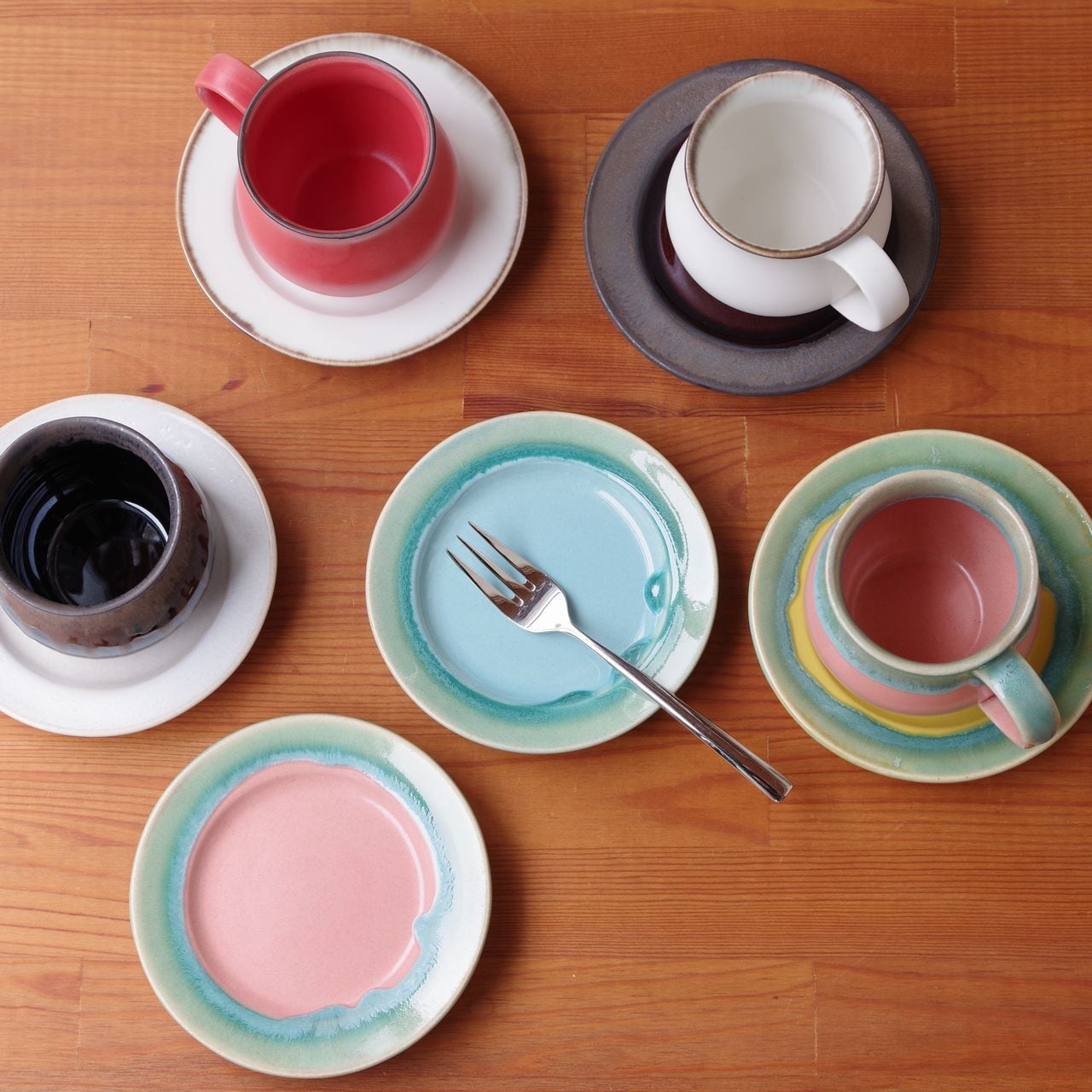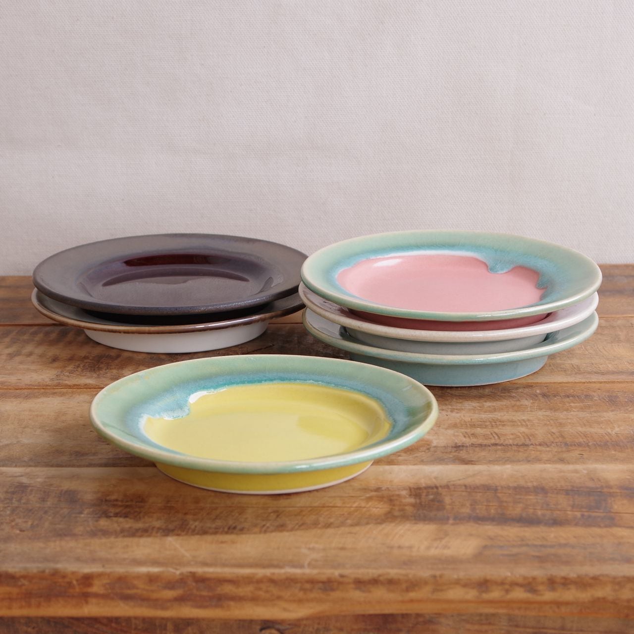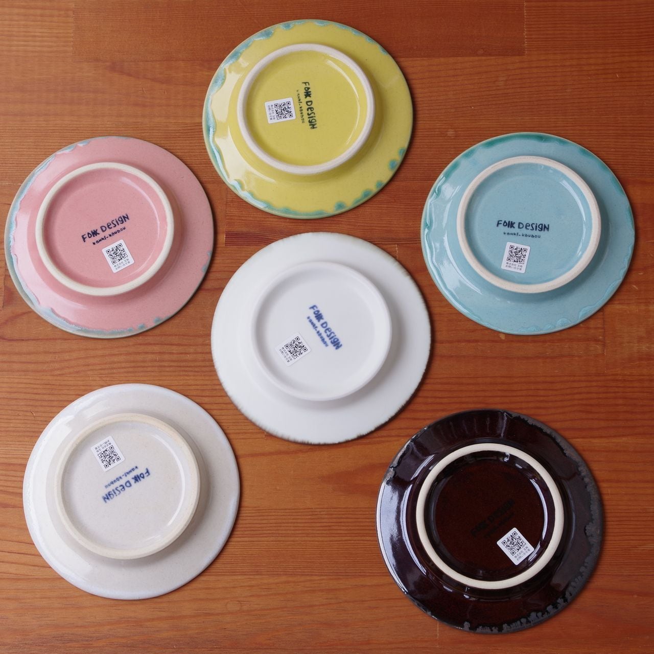 【新品】 波佐見焼 Folk Design プレート 13.5cm アロママグ ソーサー 取り皿 白釉流しピンク 黄地渕釉流し 白釉流しブルー 白釉白唐津流し 渕錆白マット 飴釉金泥流し 黄色 水色 アイボリー ホワイト ブラウン 白 青 あめ色 茶色