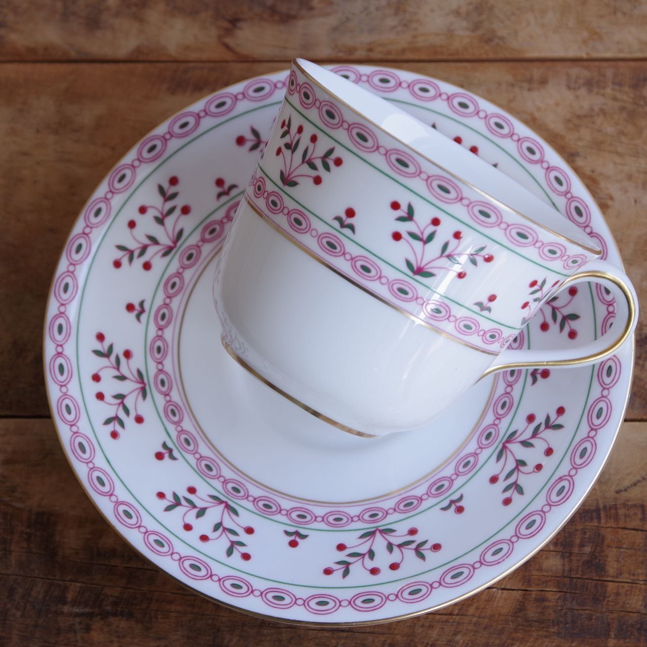 ロイヤルクラウンダービー ブリタニー カップ&ソーサー 赤い木の実 花柄 ボタニカル柄 Royal Crown Derby Brittany #260212-1 コーヒーカップ ティーカップ イギリス アンティーク ヴィンテージ 食器 陶磁器 レトロ かわいい