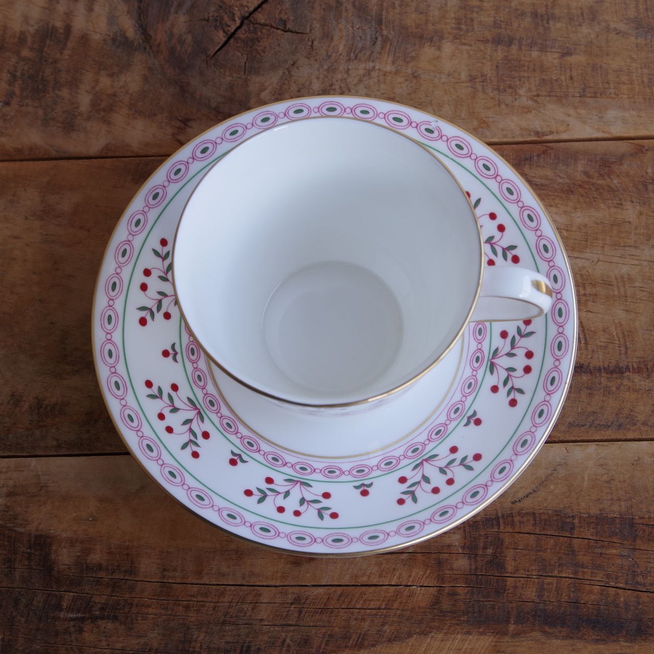 ロイヤルクラウンダービー ブリタニー カップ&ソーサー 赤い木の実 花柄 ボタニカル柄 Royal Crown Derby Brittany #260212-2 コーヒーカップ ティーカップ イギリス アンティーク ヴィンテージ 食器 陶磁器 レトロ かわいい