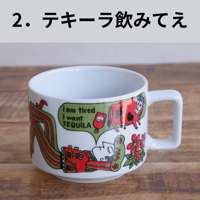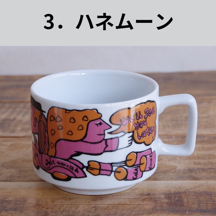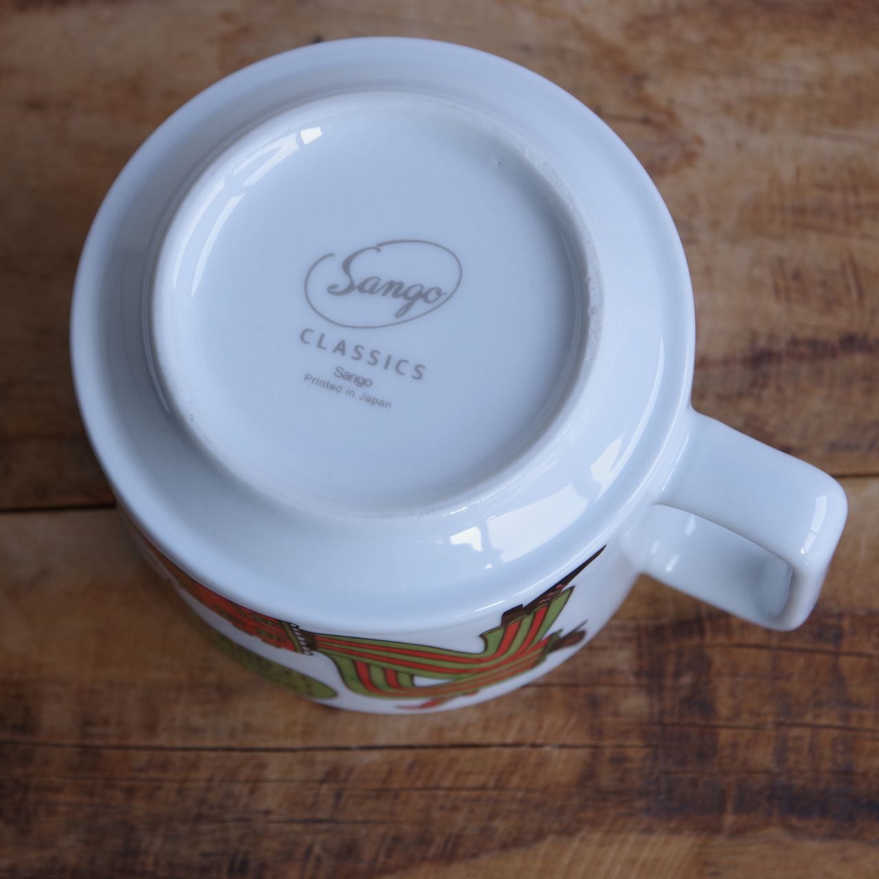 1960~70年代にかけて製造されていたデザインの復刻版となっており、レトロな絵柄や色使いのマグカップです。