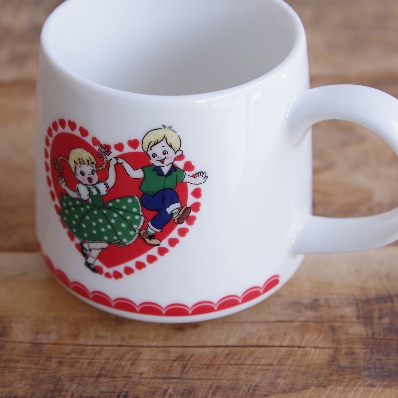 【新品】 三郷陶器 スイマー ハートマグ ダンシングガール マグカップ 男の子 女の子 赤 昭和レトロ コーヒーカップ Sango キッチュ SWIMMER