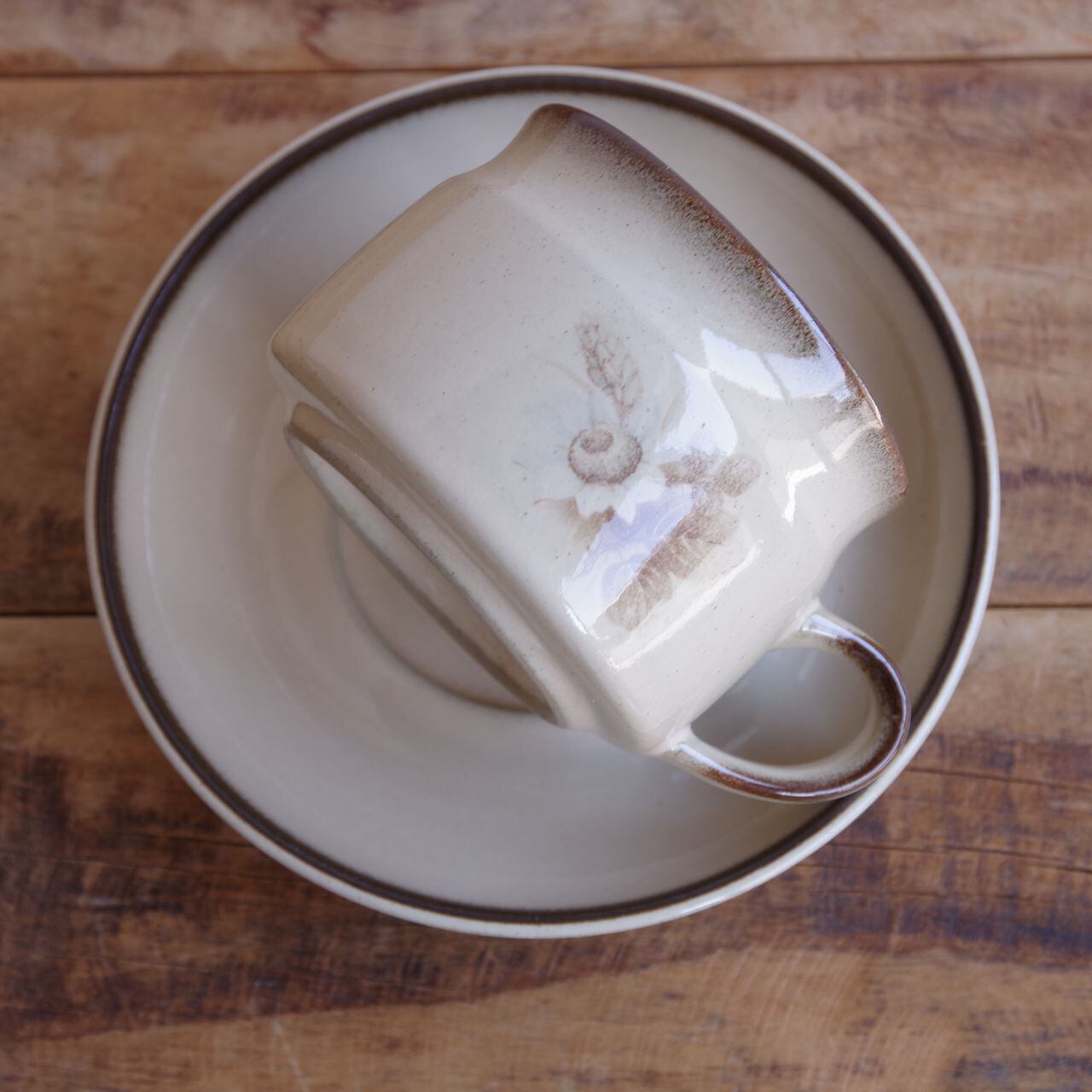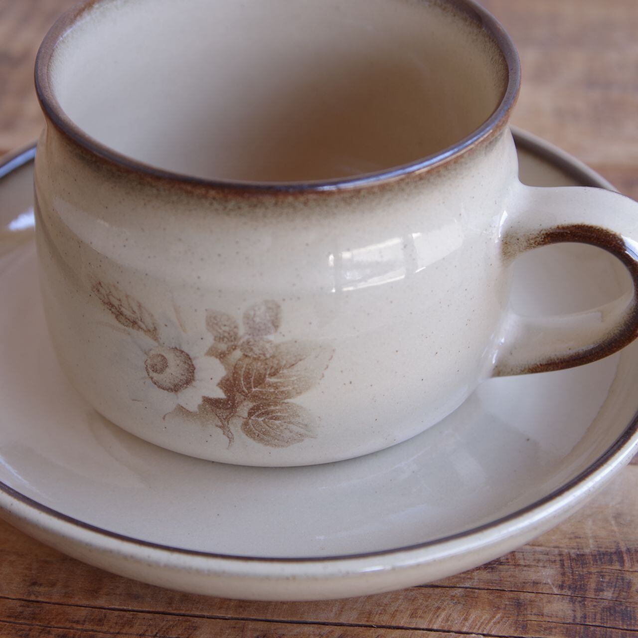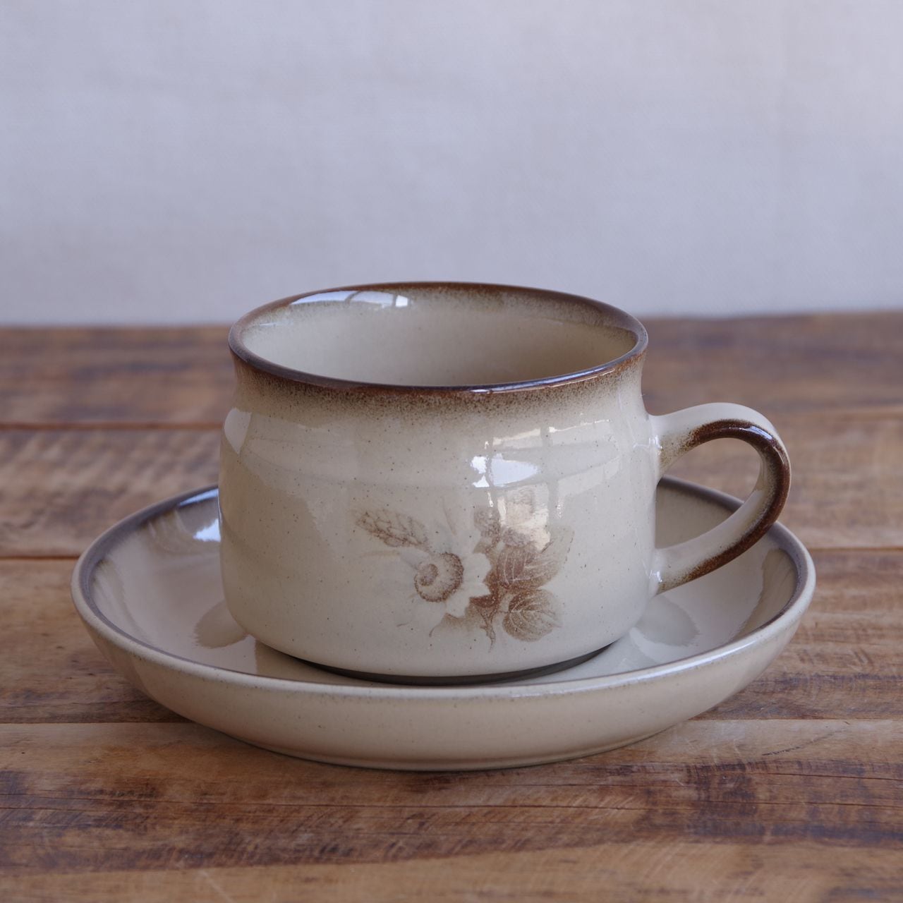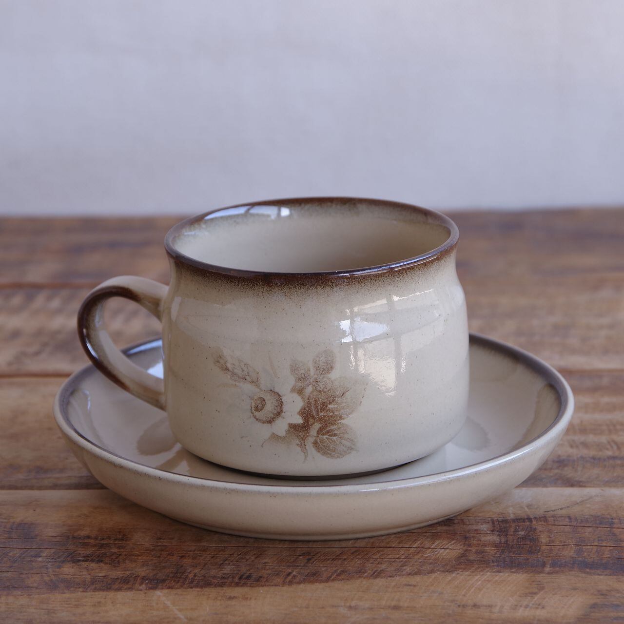 デンビー メモリーズ ブラウン 花柄 コーヒーカップ ティーカップ ソーサー レトロ 食器 ベージュ DENBY Memories #260219-14 ヴィンテージ アンティーク イギリス 陶器 麦 セピア モダン CS デュオ カップ&ソーサー