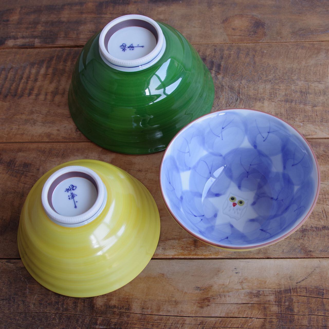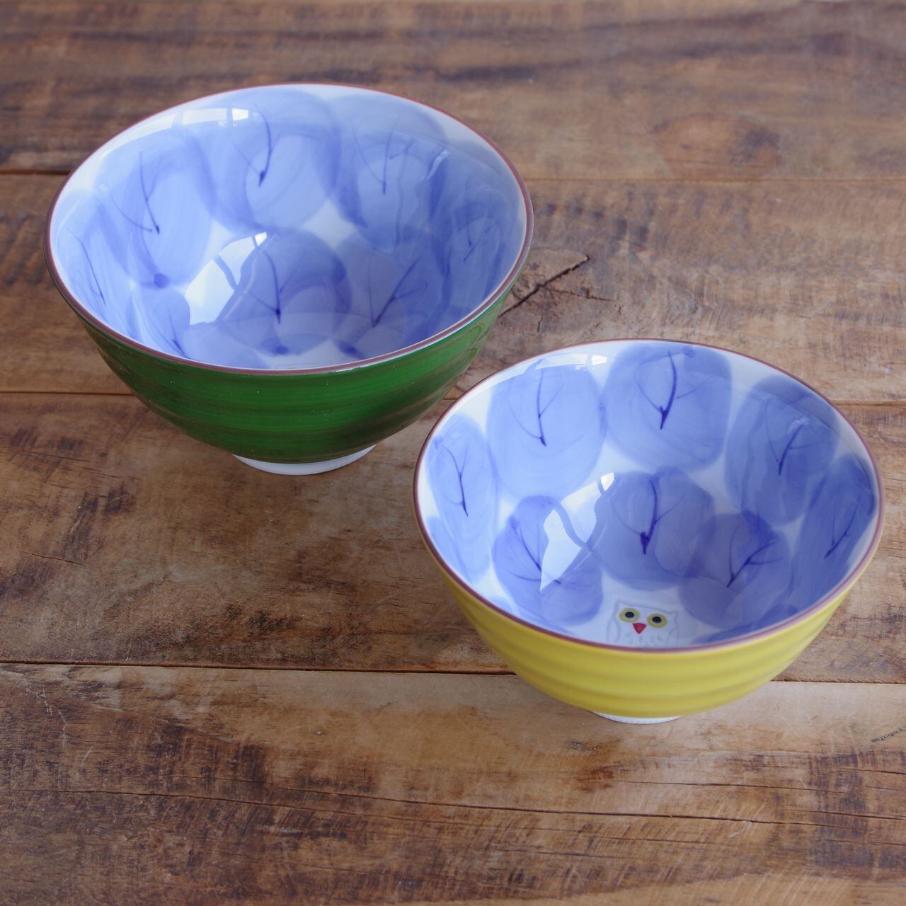 【新品】 波佐見焼 飯碗 木の葉ふくろう 大 小 2サイズ イエロー グリーン 鳥 ご飯茶碗 ライスボウル お茶碗 かわいい