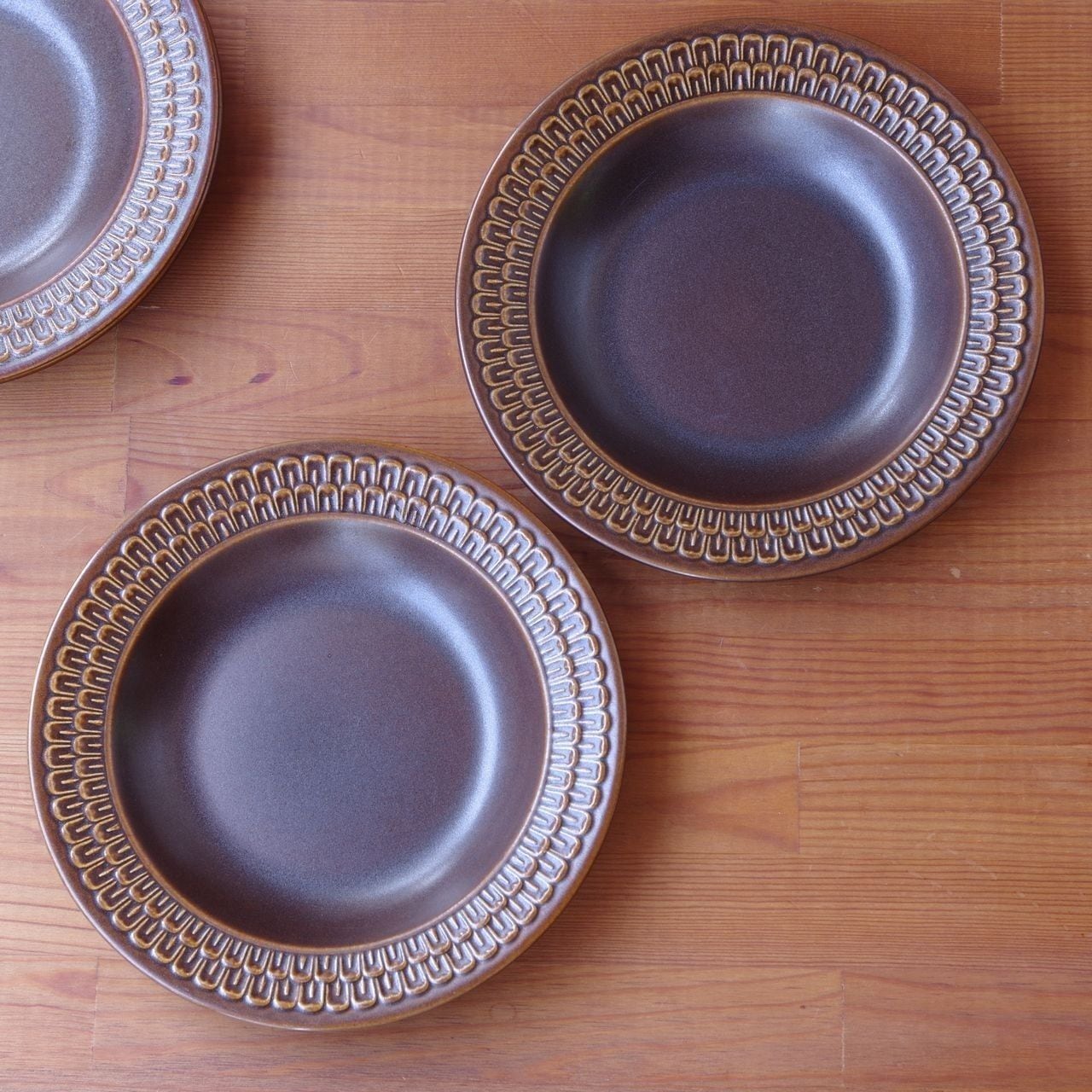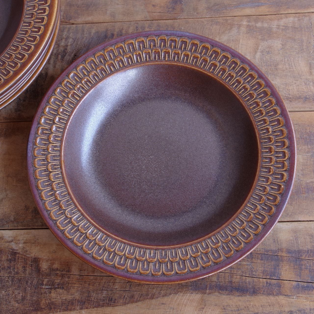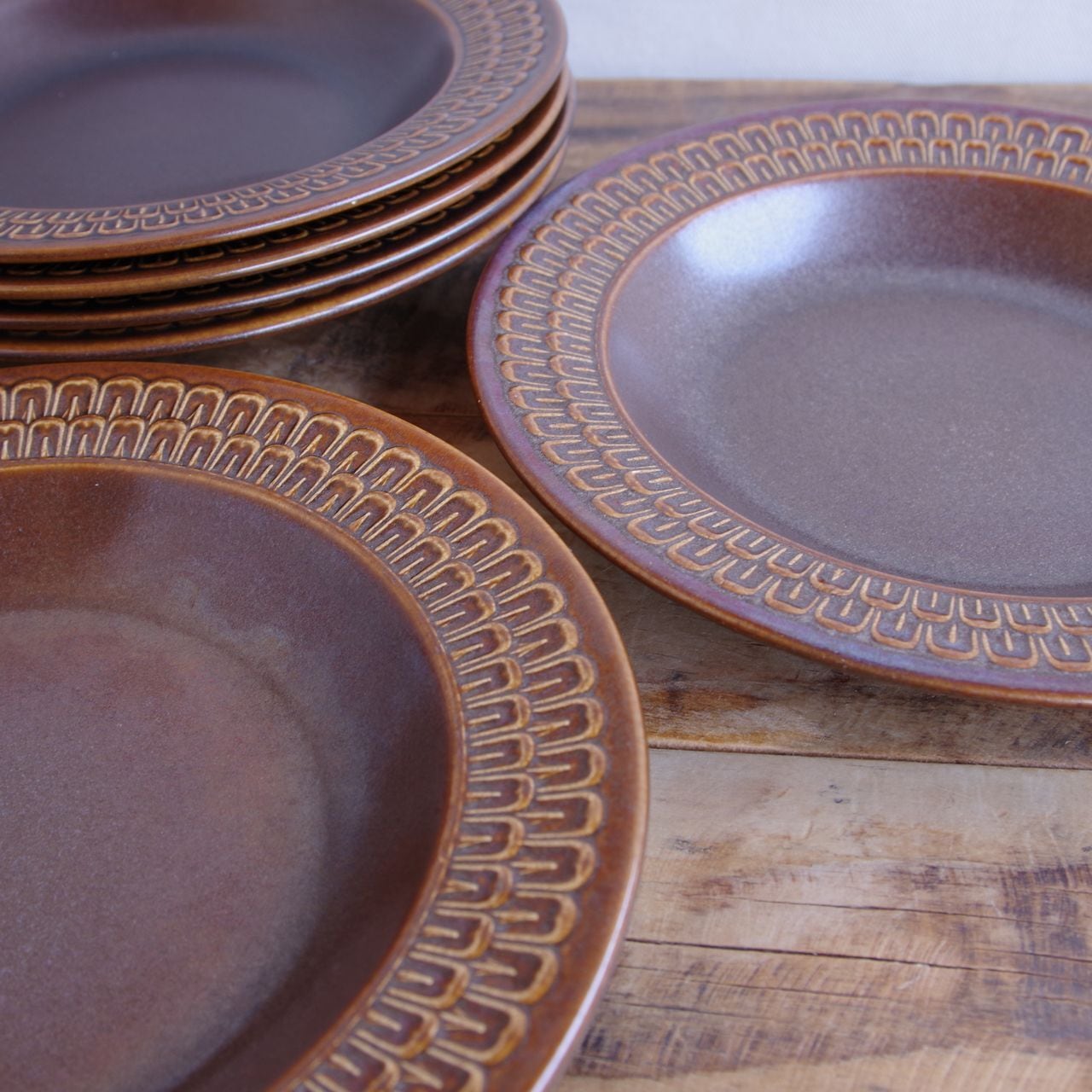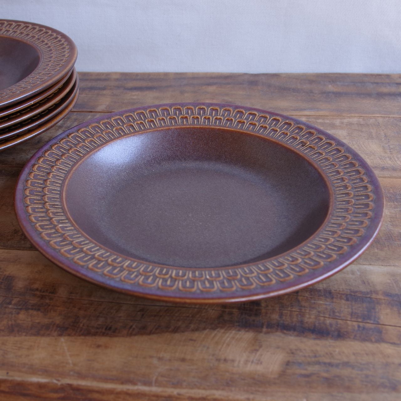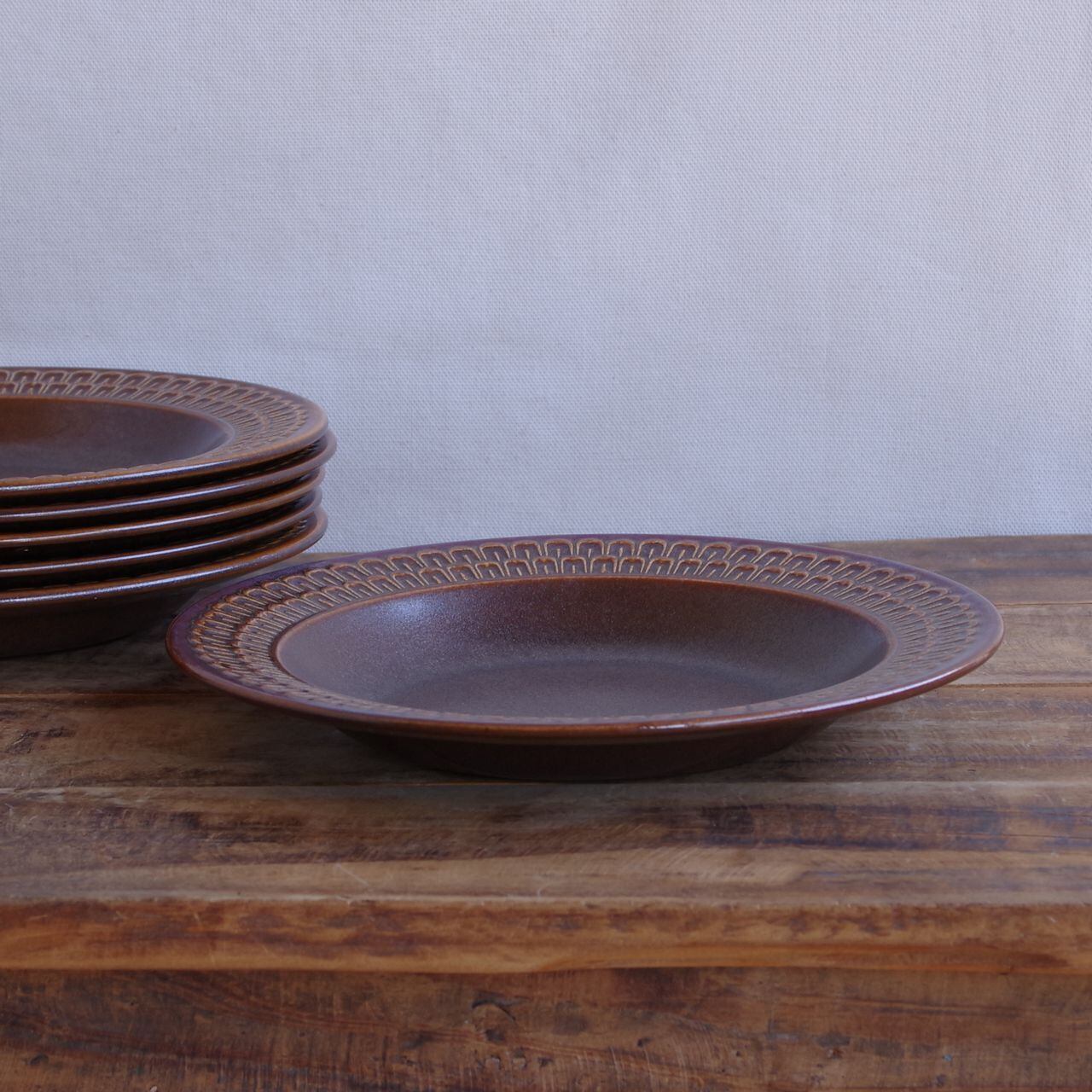 ウェッジウッド ペナイン スーププレート 22cm ペンニン レトロモダン ブラウン 深皿 ヴィンテージ 食器 Wedgwood Pennine #260221-1~6 イギリス 英国 陶器 アンティーク 渋め おしゃれ レリーフ リムボウル お皿 大きめ