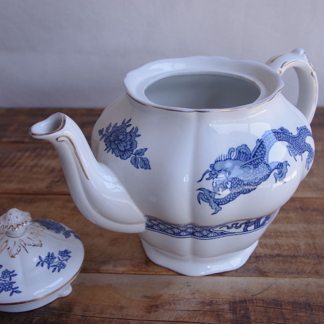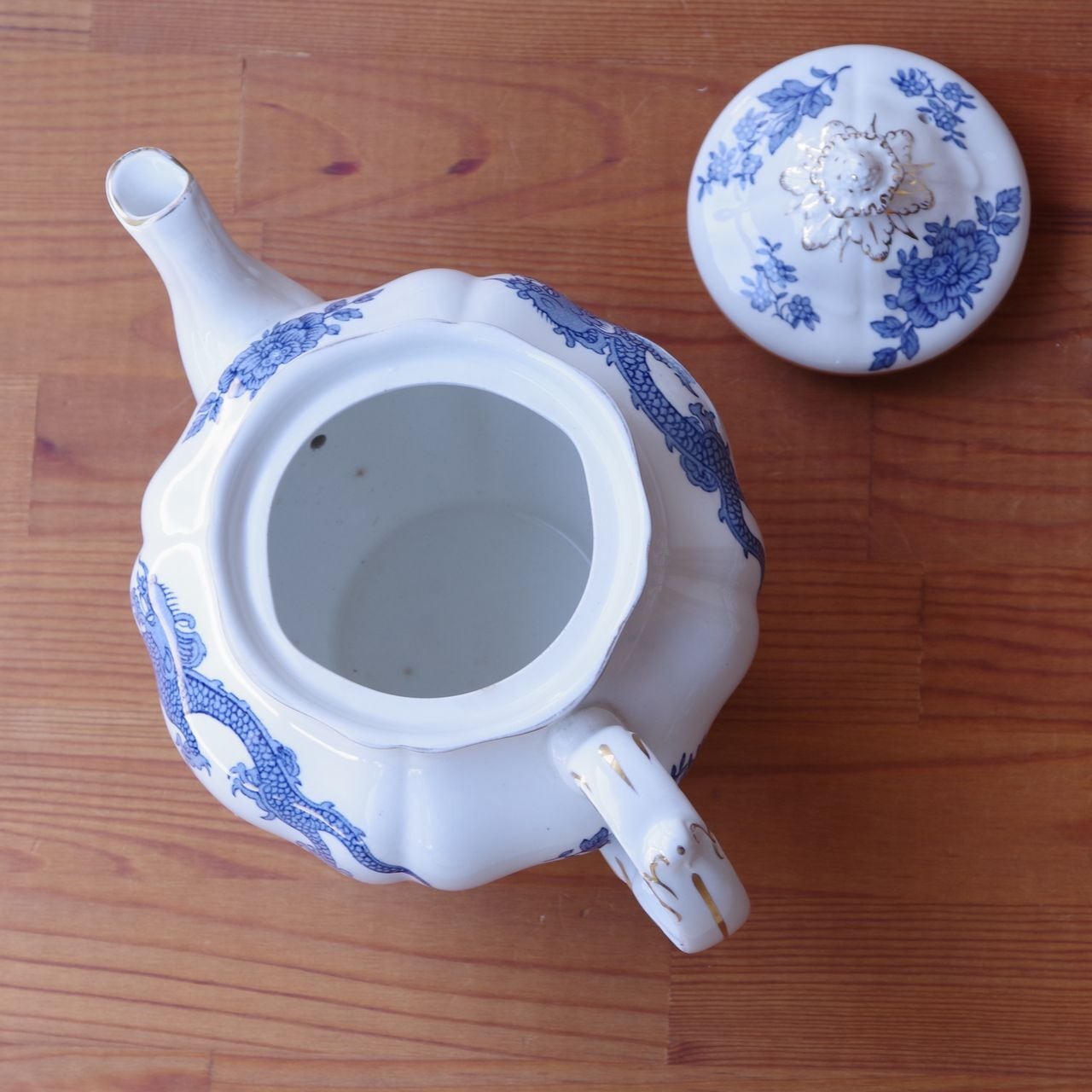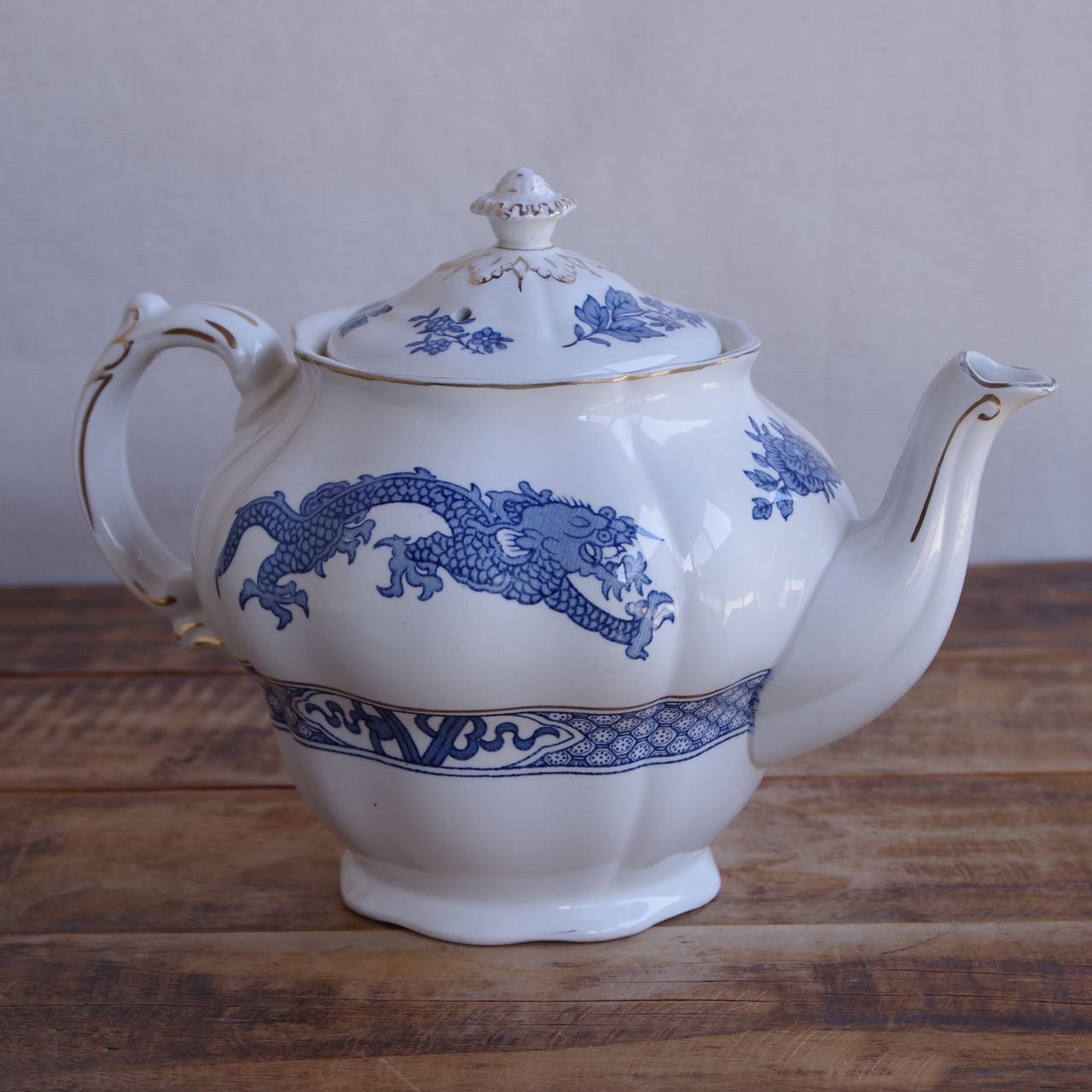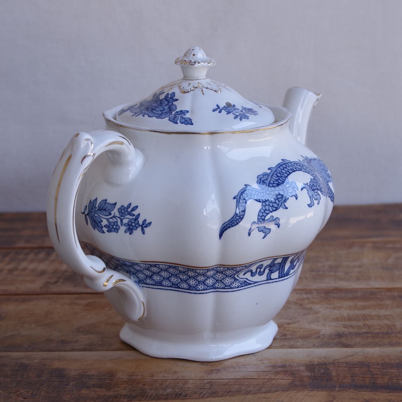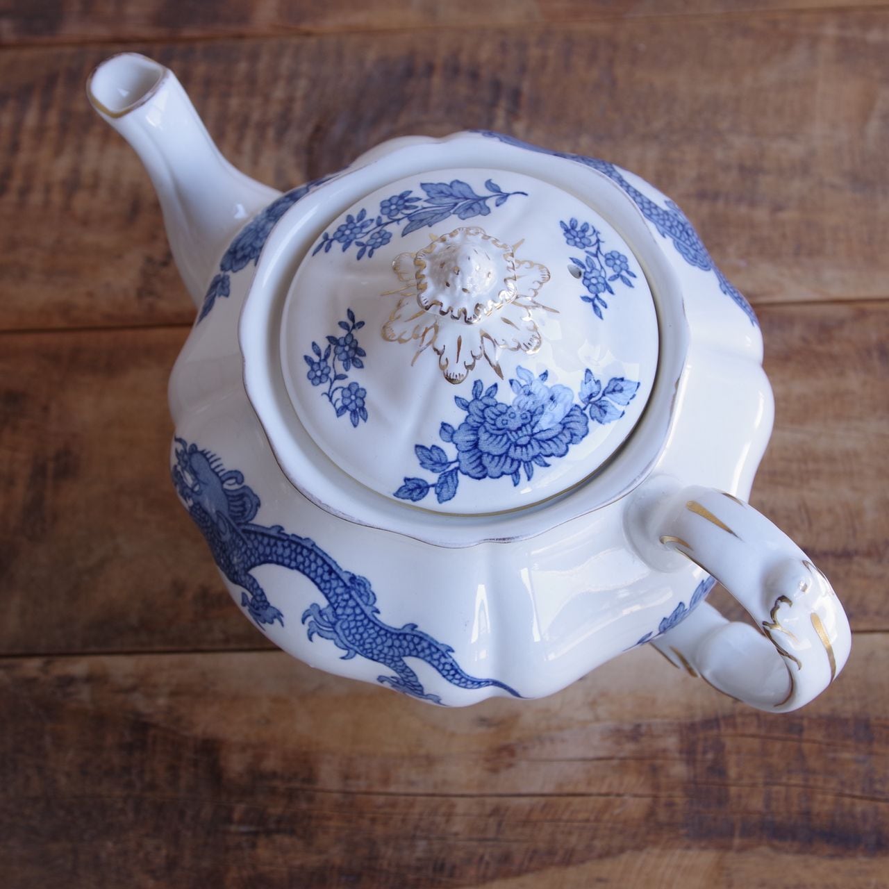 【アウトレット・小難あり】 Booths ブース ドラゴン ティーポット コーヒーポット イギリス ヴィンテージ 食器 #260219 レトロ Dragon オリエンタル 陶器 茶器 ネイビー ゴールド