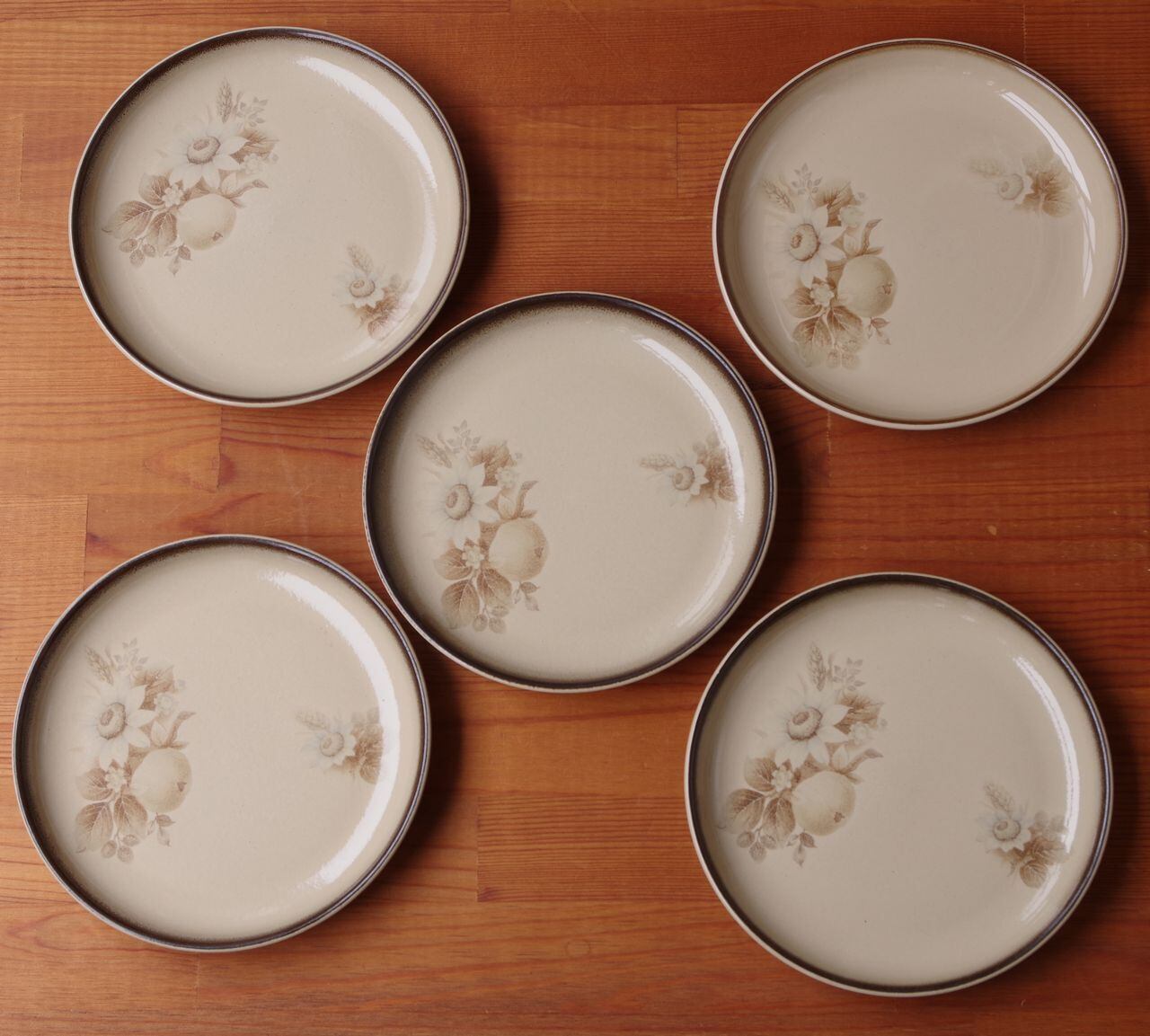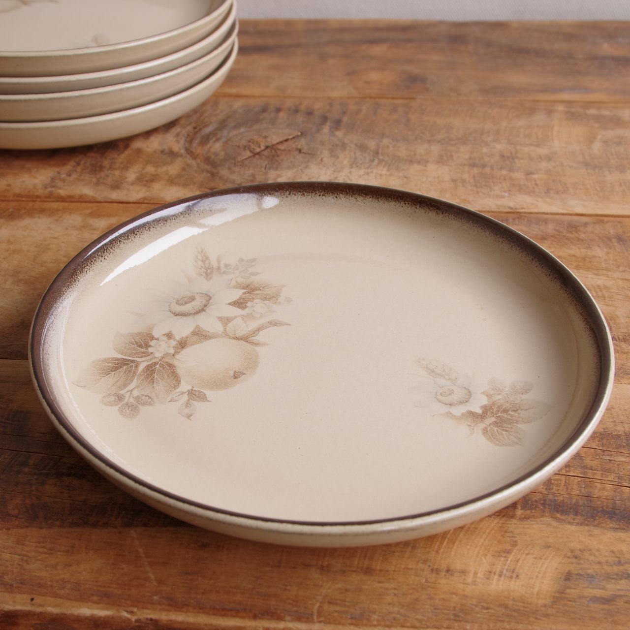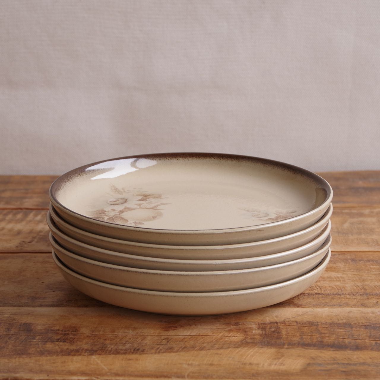 デンビー メモリーズ ブラウン 花柄 デザートプレート ケーキ皿 17cm レトロ 食器 ベージュ DENBY Memories #260227-1~5 ヴィンテージ アンティーク イギリス 陶器 麦 セピア モダン 取り皿 丸皿 中皿 英国 キッチン 雑貨