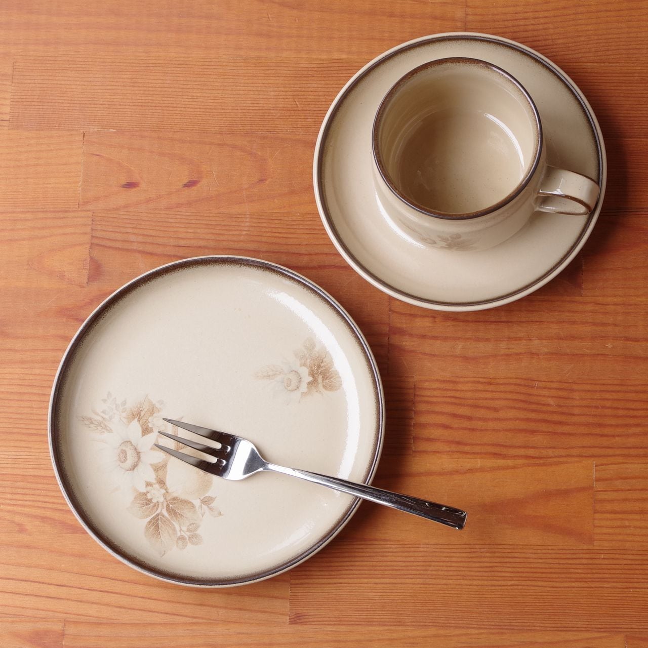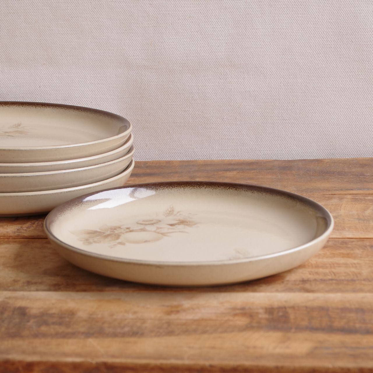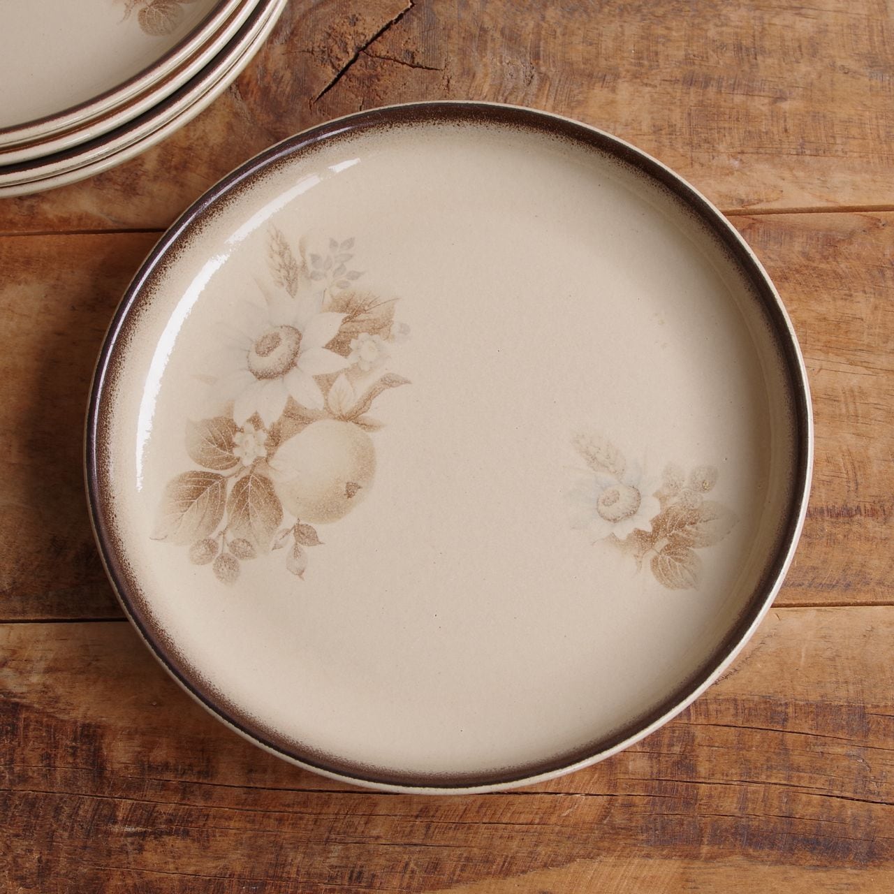 デンビー メモリーズ ブラウン 花柄 デザートプレート ケーキ皿 17cm レトロ 食器 ベージュ DENBY Memories #260227-1~5 ヴィンテージ アンティーク イギリス 陶器 麦 セピア モダン 取り皿 丸皿 中皿 英国 キッチン 雑貨
