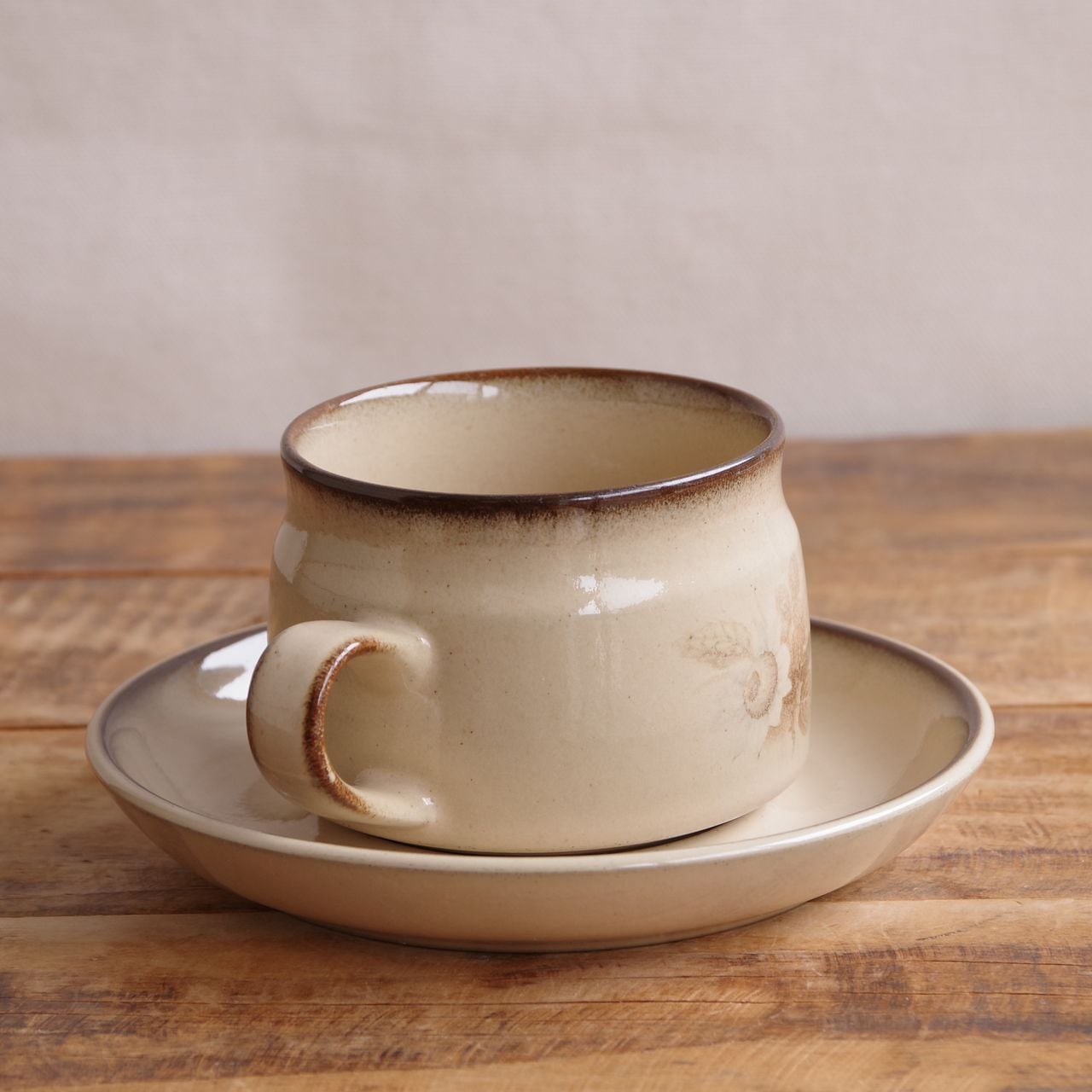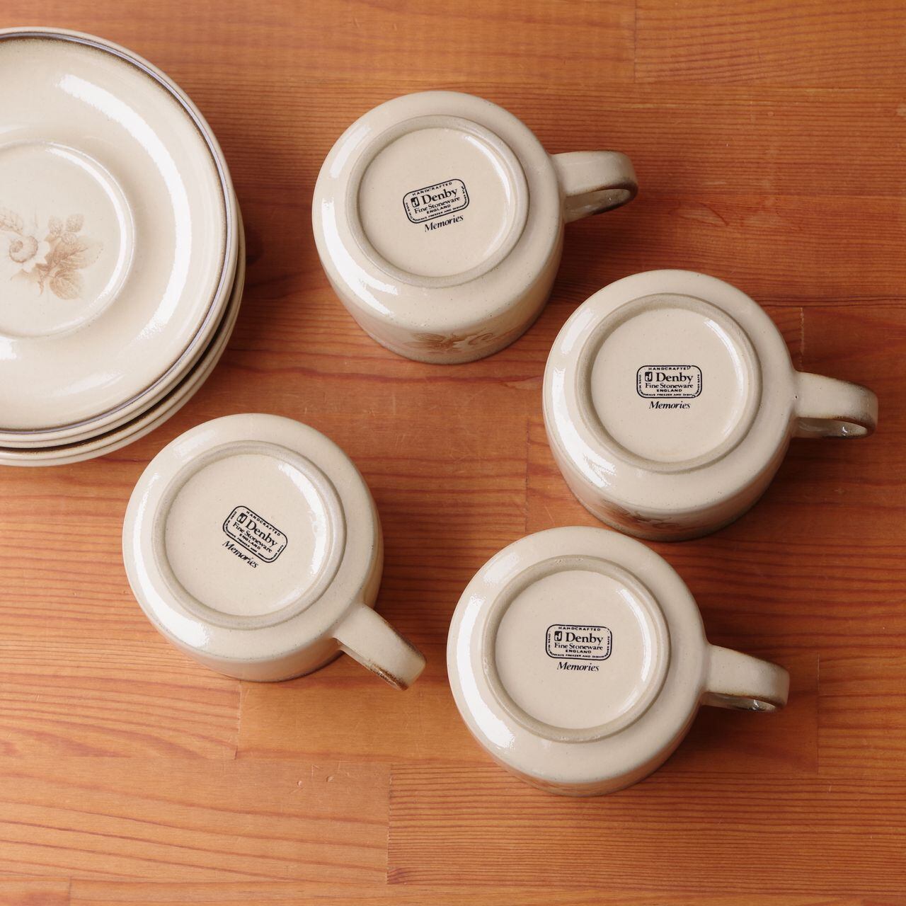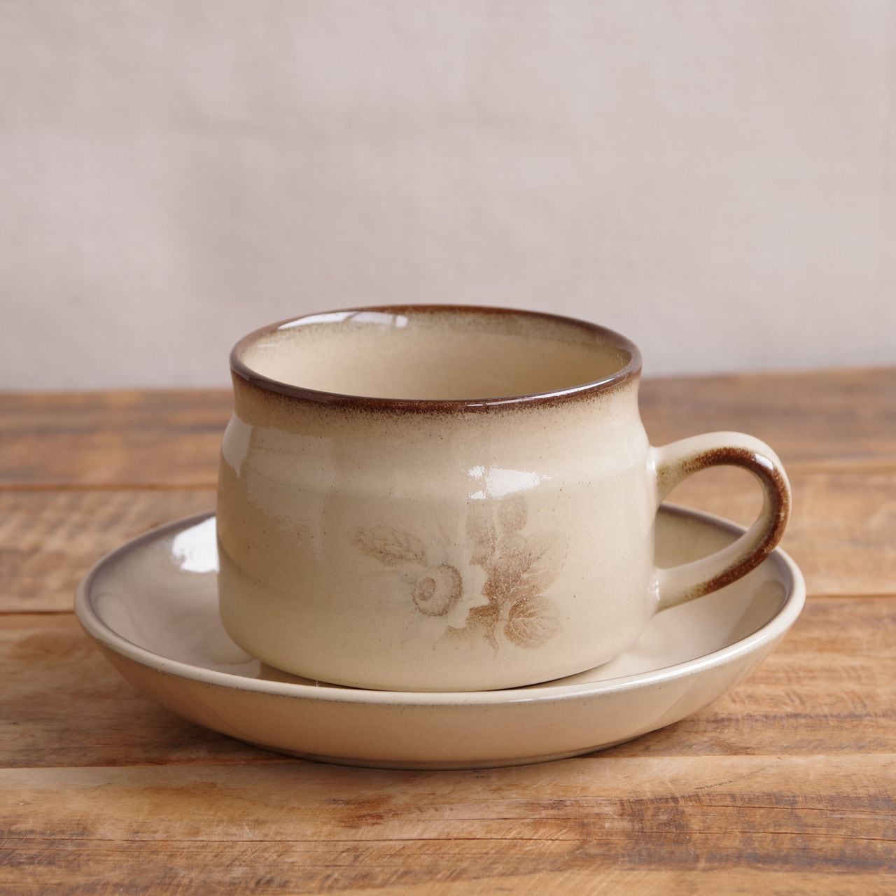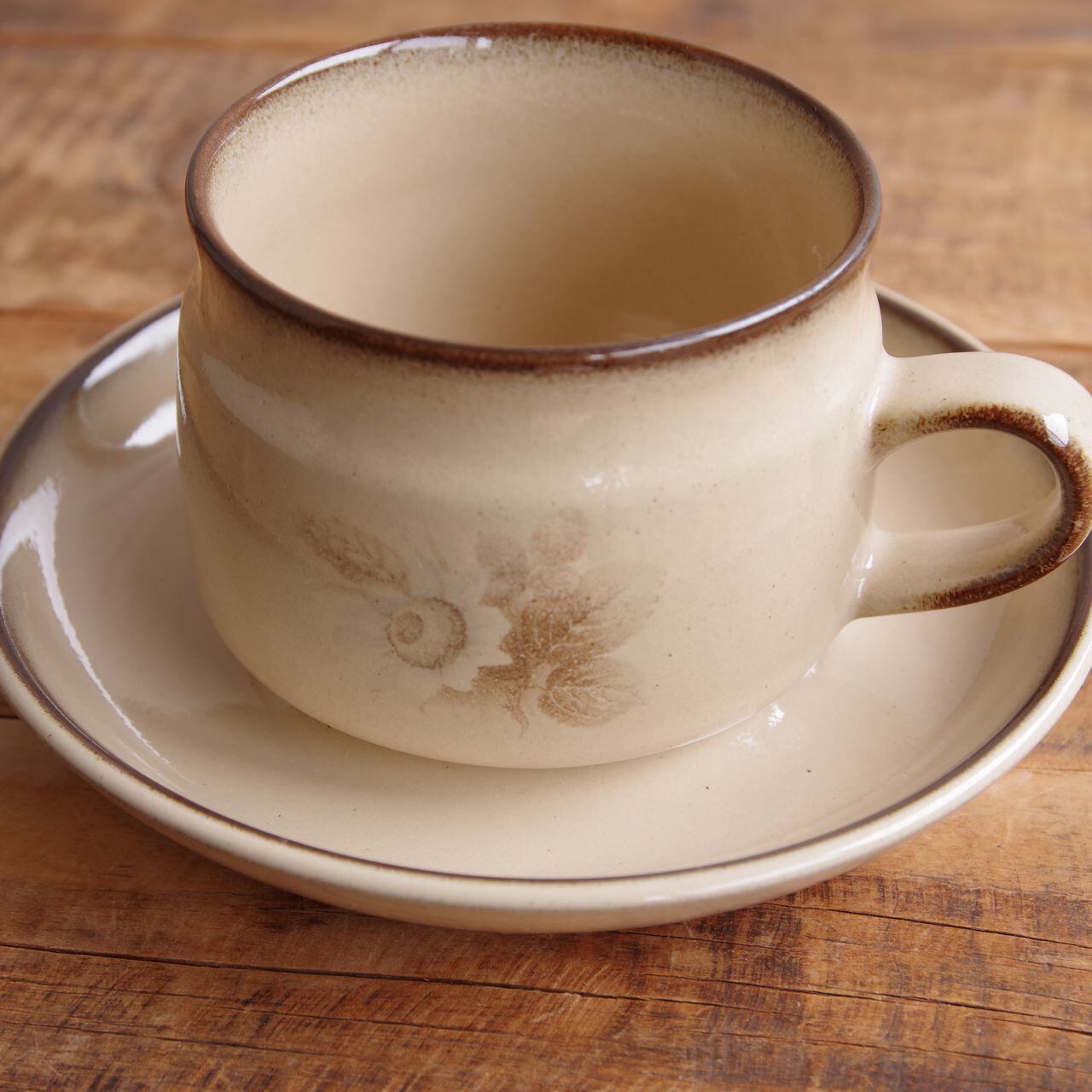 デンビー メモリーズ ブラウン 花柄 コーヒーカップ ティーカップ ソーサー レトロ 食器 ベージュ DENBY Memories #260227-6~10 ヴィンテージ アンティーク イギリス 陶器 麦 セピア モダン CS デュオ カップ&ソーサー