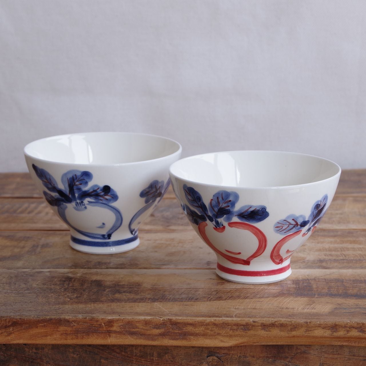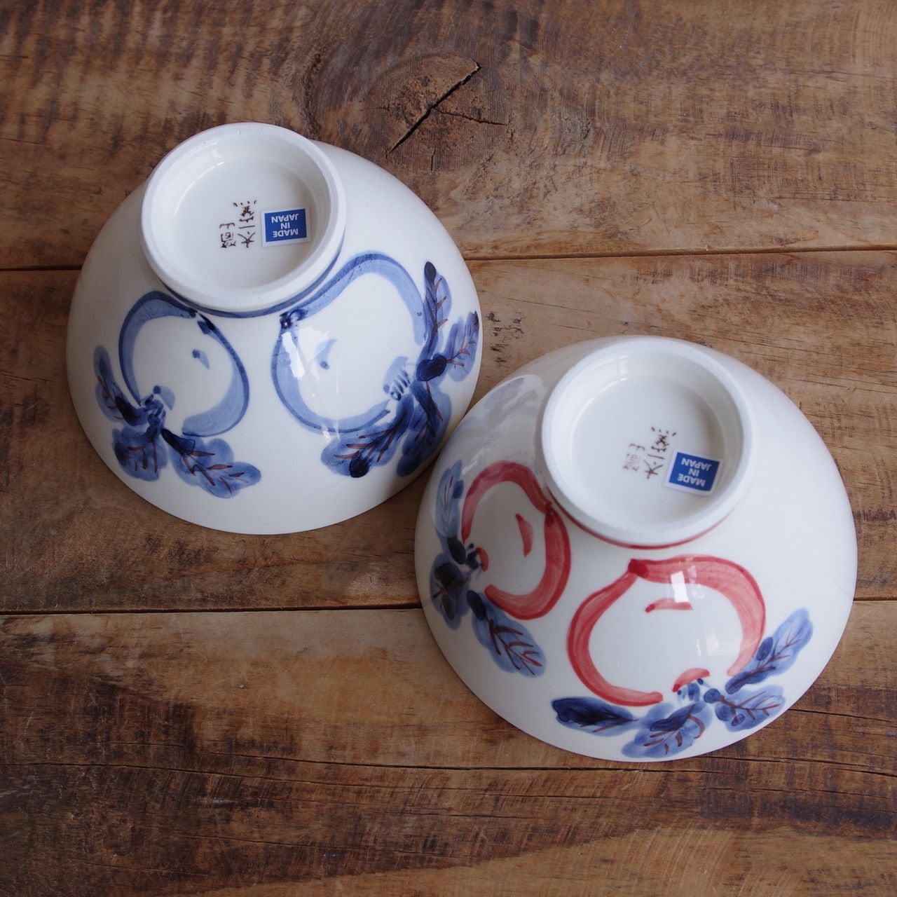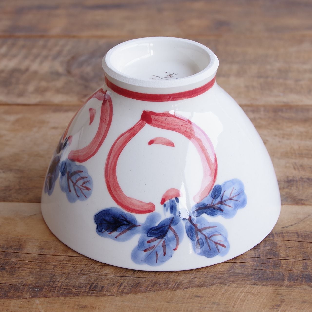 【新品】 波佐見焼 筒山太一窯 手描 かぶら 飯碗 ご飯茶碗 赤 青 2色 昭和レトロ 和食器 日本製 ライスボウル ちゃわん 陶器